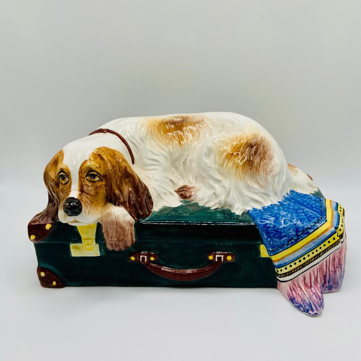 LOT 17: Nove Italia Ceramic Dog on a Case Porcelain Figurine Made Exclusive for Tiffany & Co