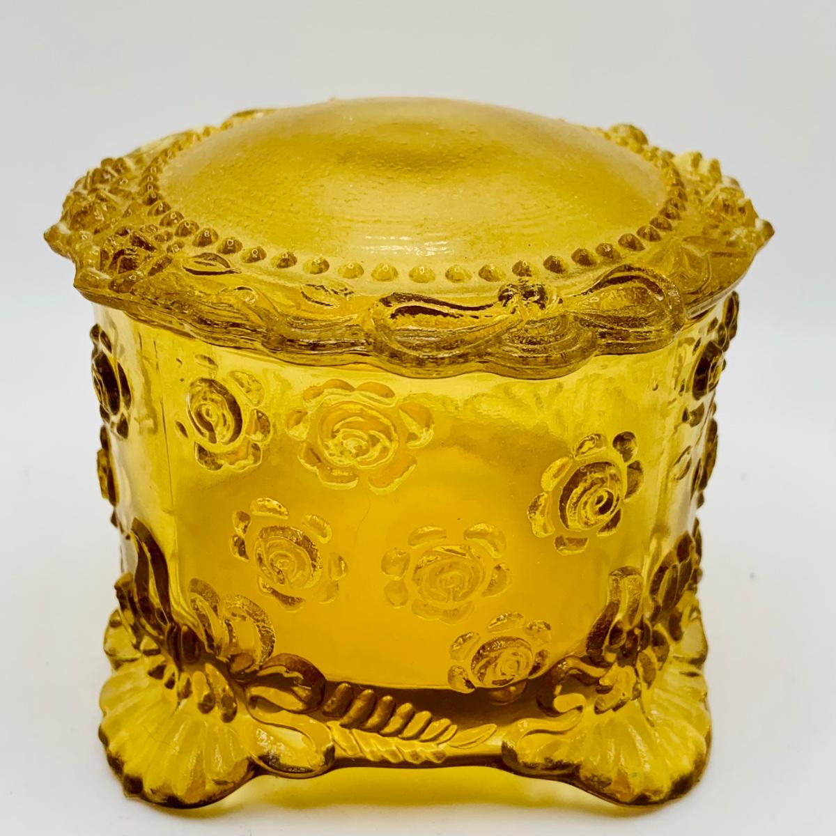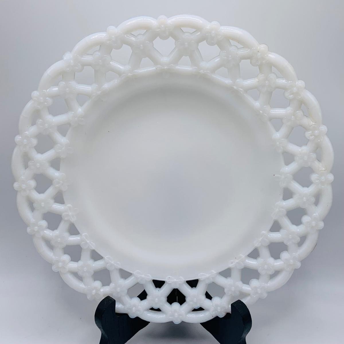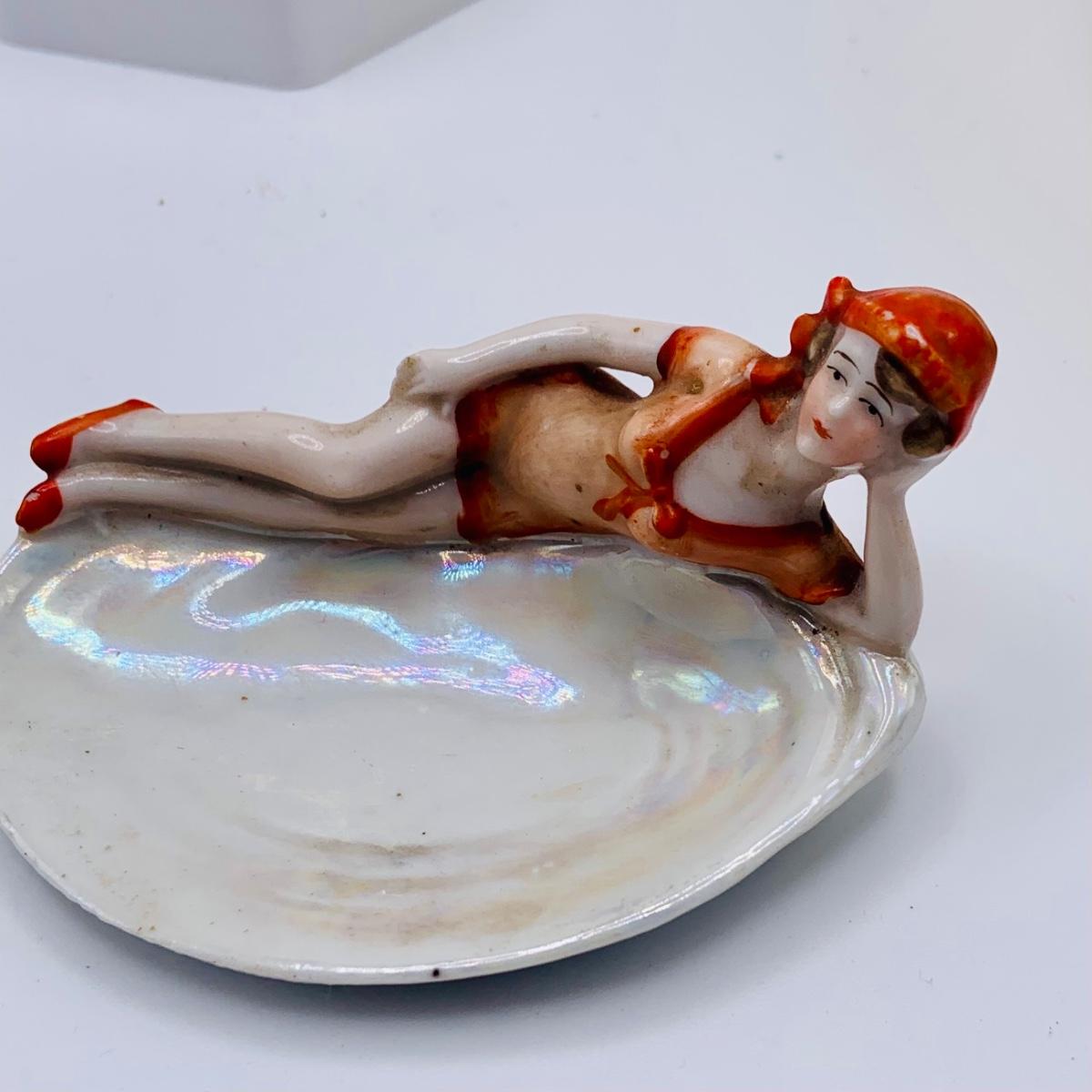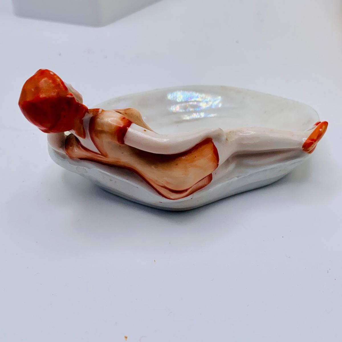 LOT 25: Kemble-Wheaton Glass Floral Glass Trinket Box, Westmorland Milk Glass Plate and Vintage Porcelain Ring Tray with a Bathing Beauty