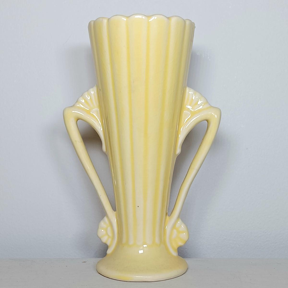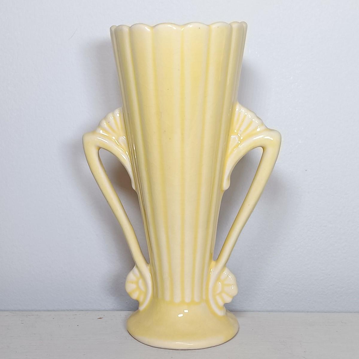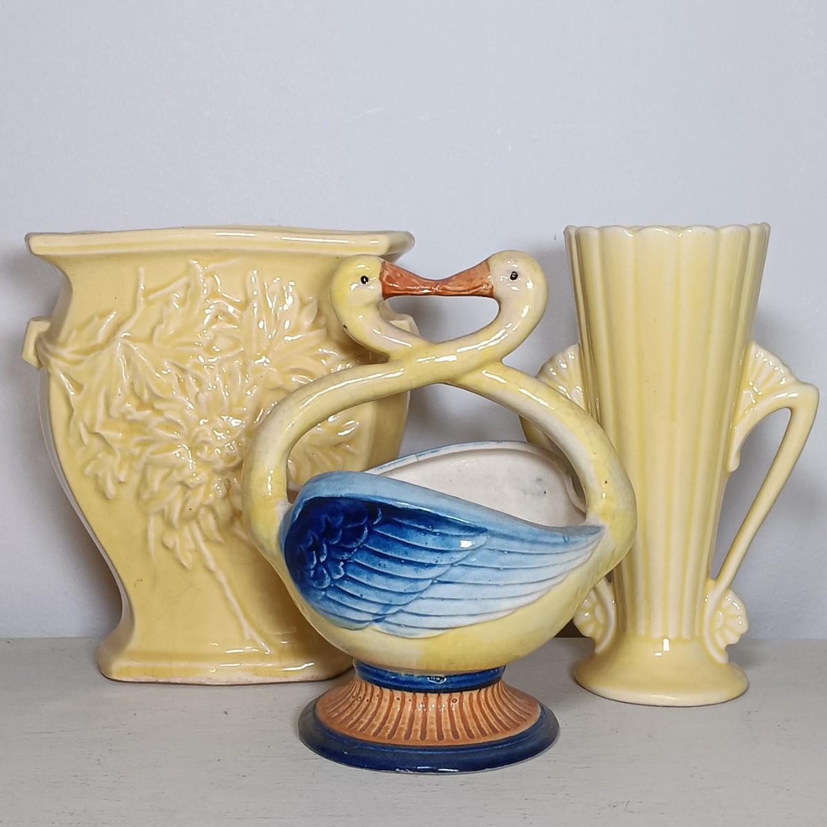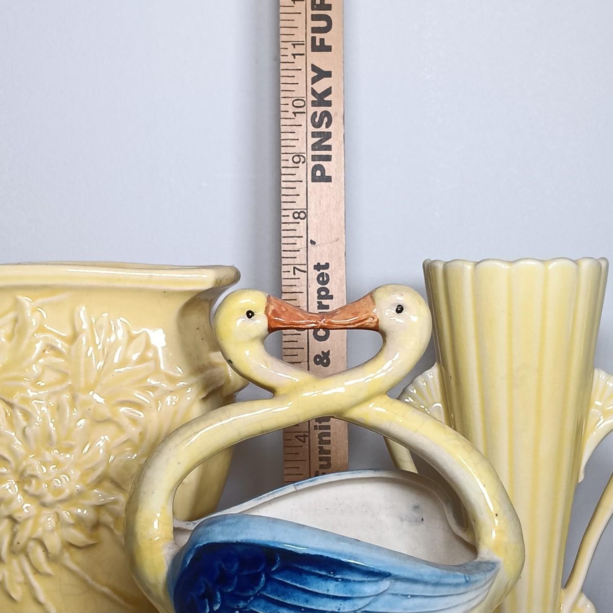 LOT 34: McCoy Pottery Yellow Floral Vase, Maruhon Ware Kissing Swan Vase & McCoy Brush Yellow Vase