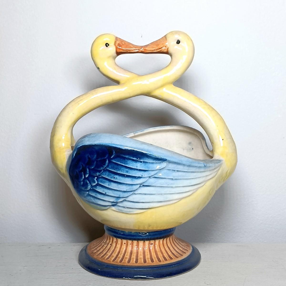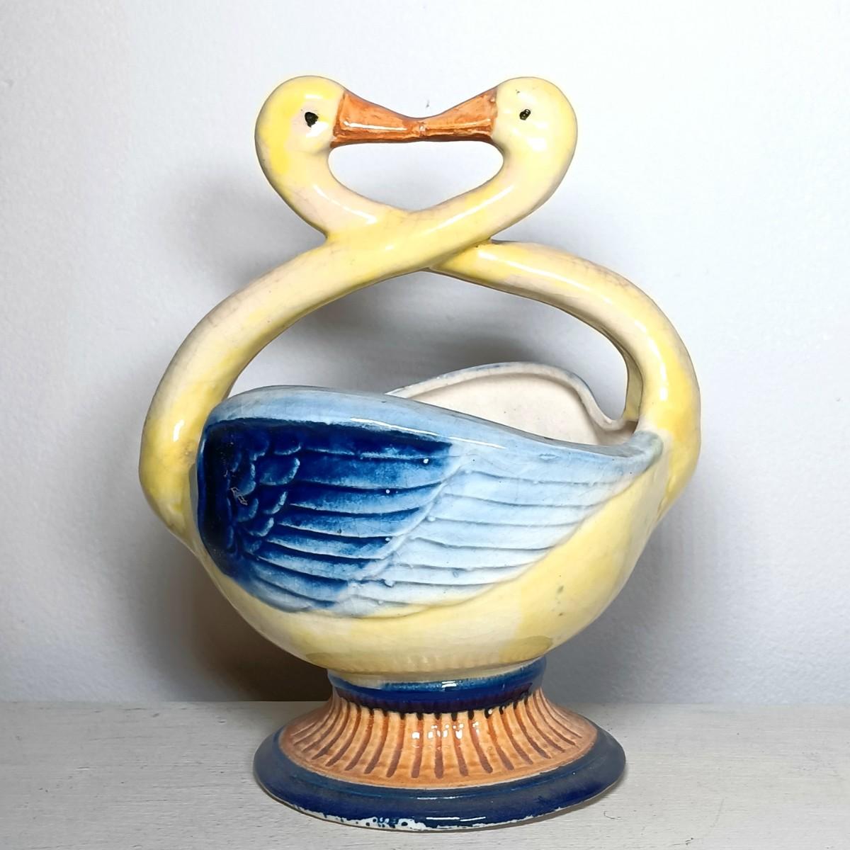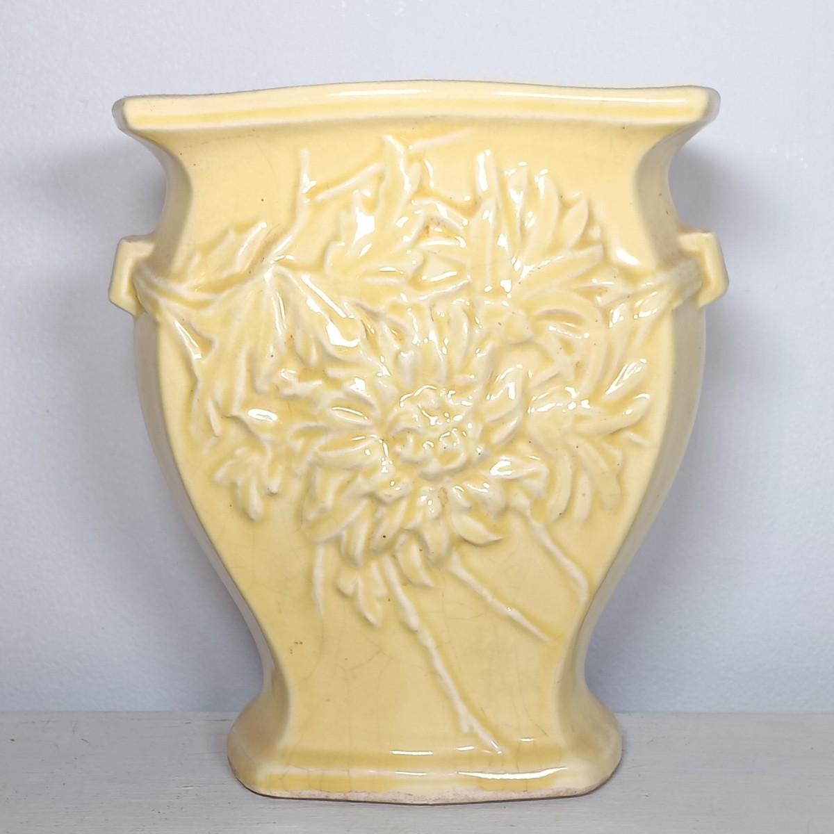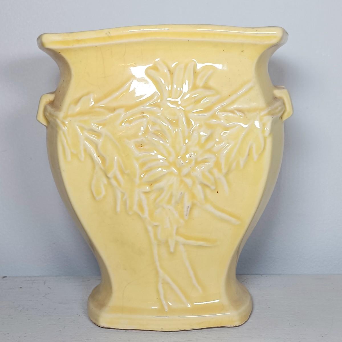 LOT 34: McCoy Pottery Yellow Floral Vase, Maruhon Ware Kissing Swan Vase & McCoy Brush Yellow Vase