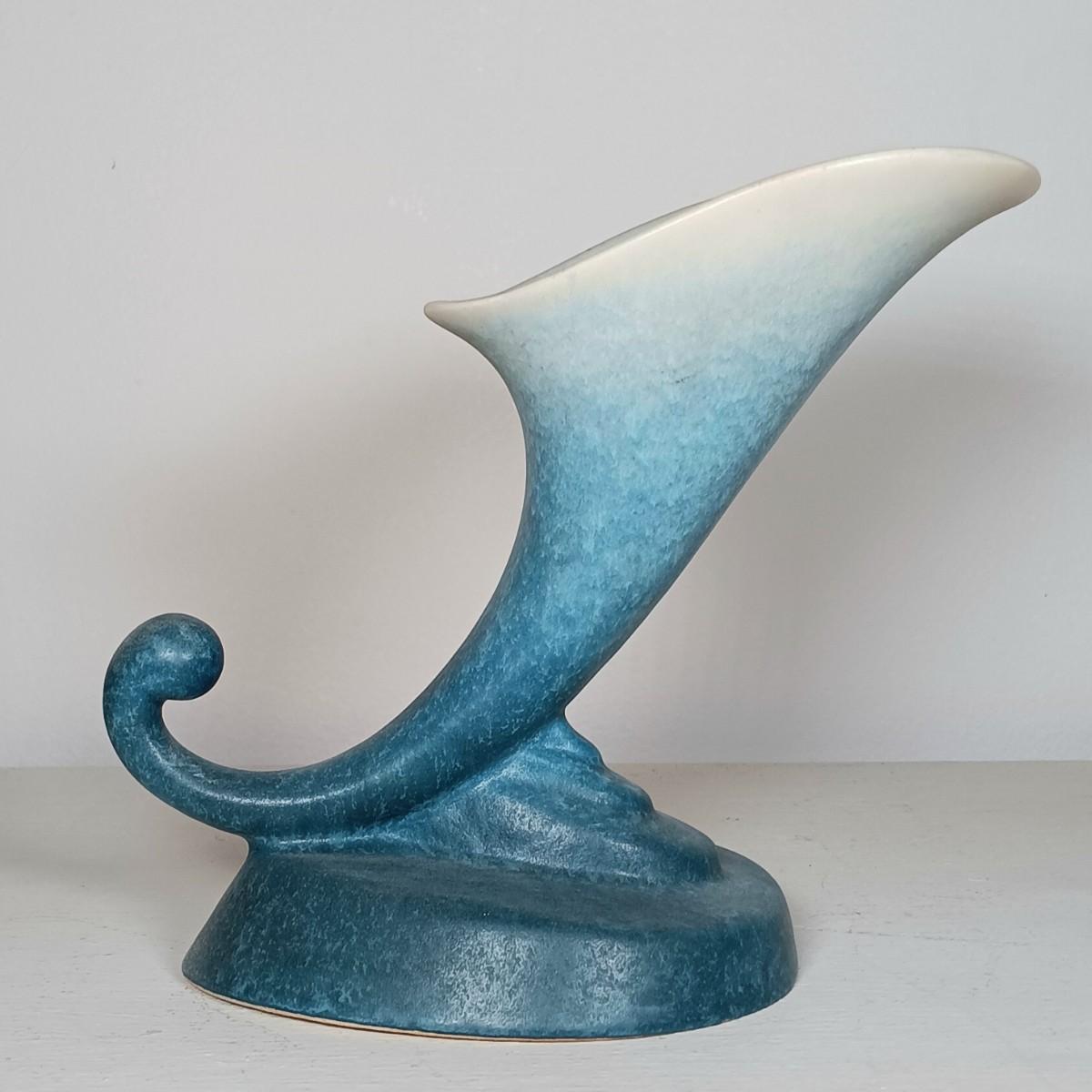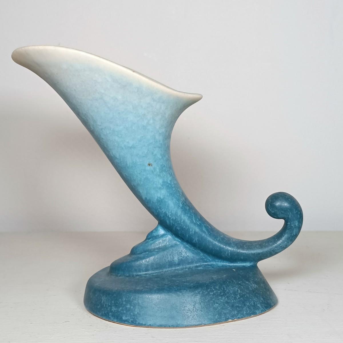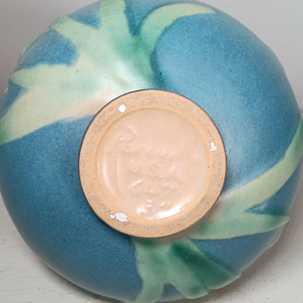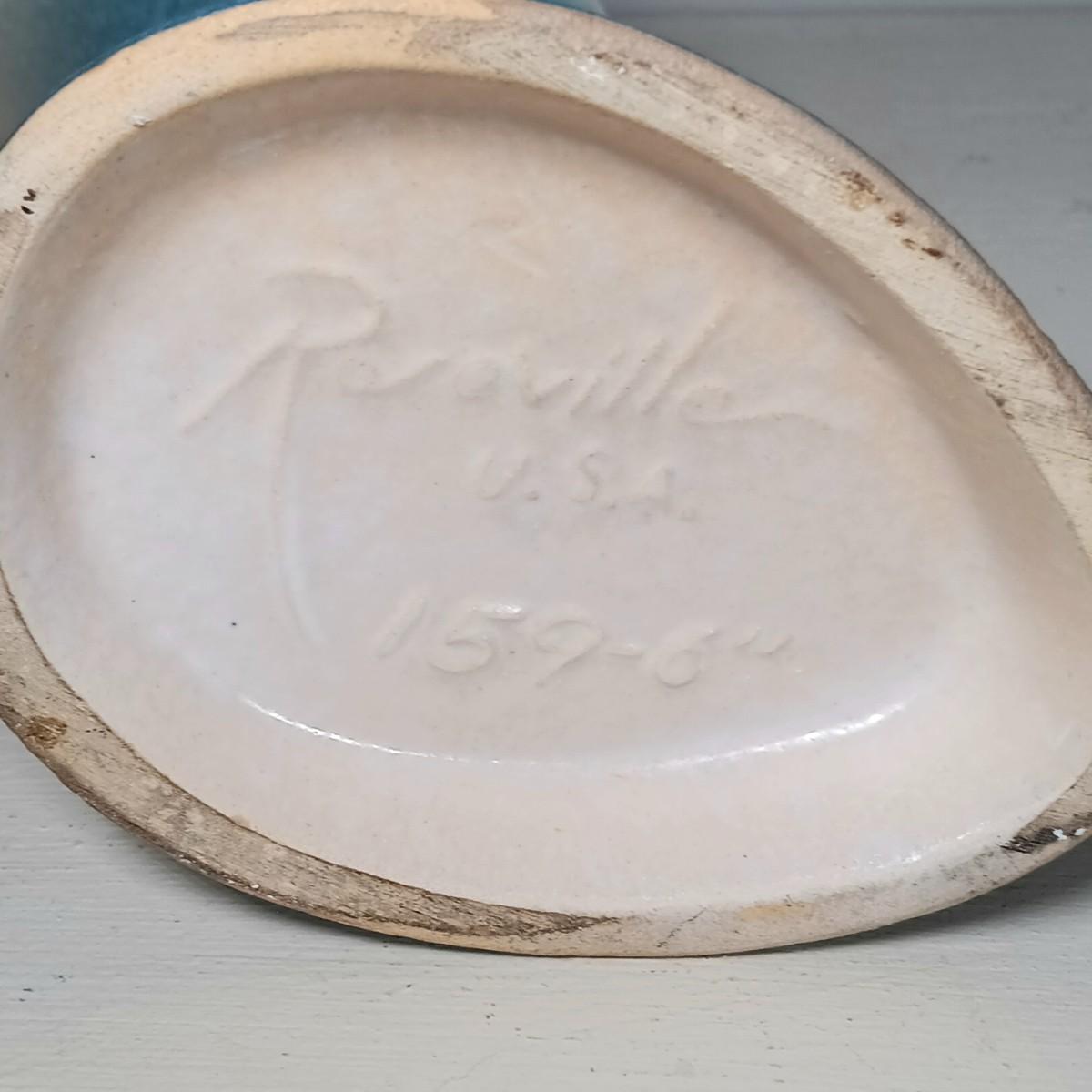 LOT 51: Roseville Pottery Iris Blue Two-Handled Vase and Rozane Pattern Cornucopia Vase