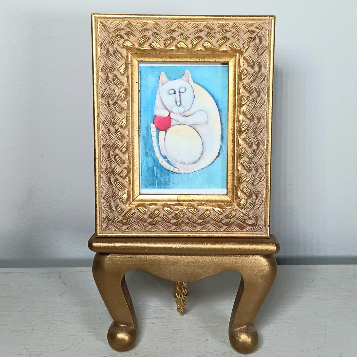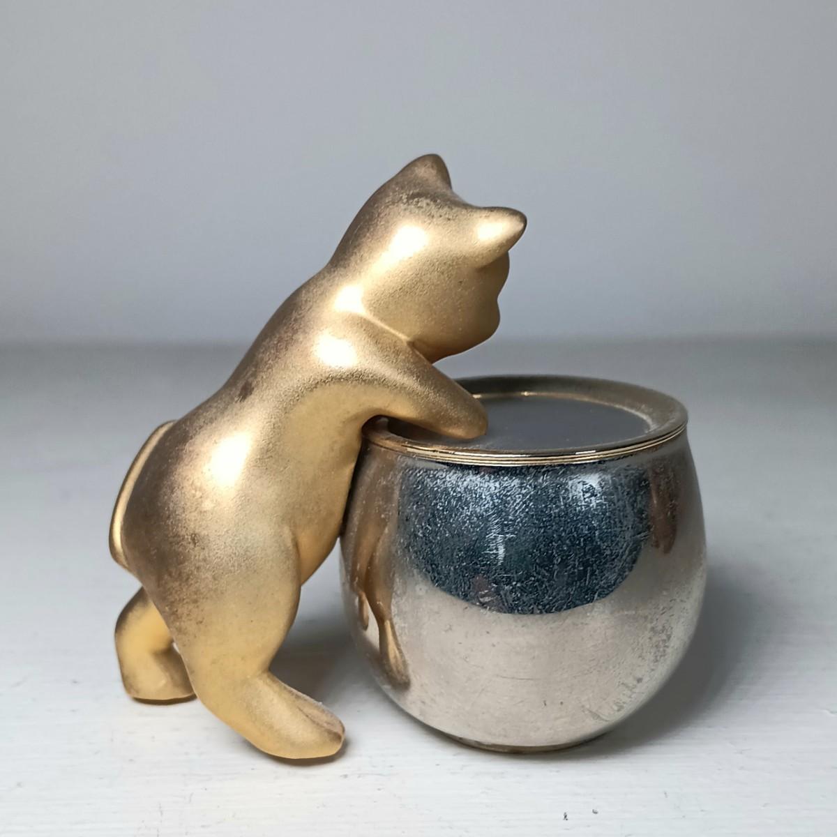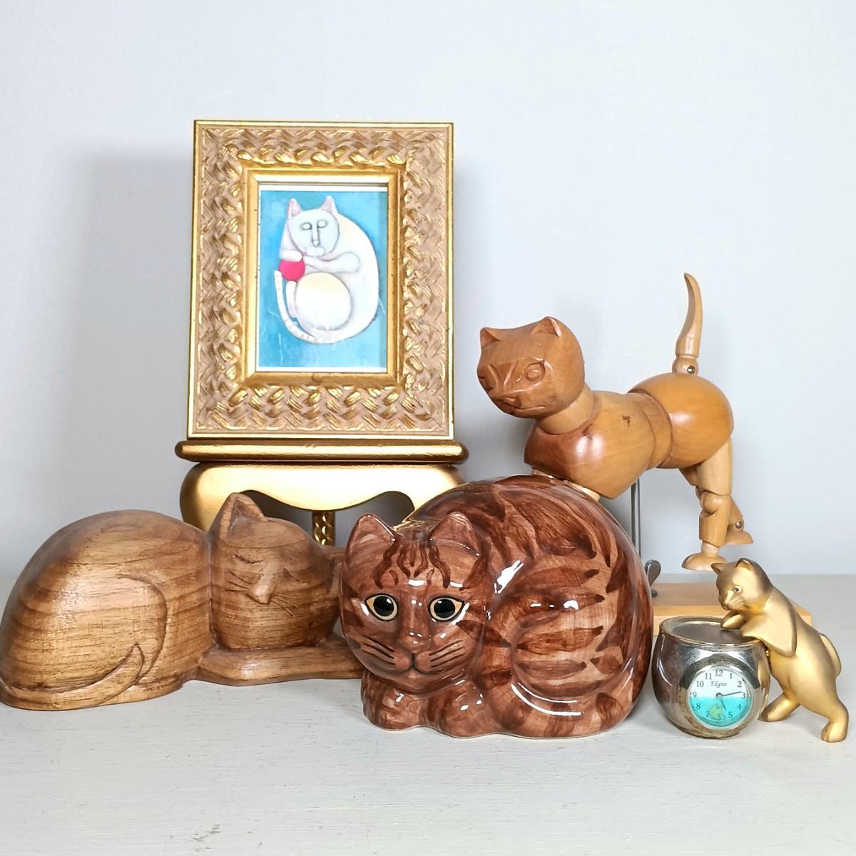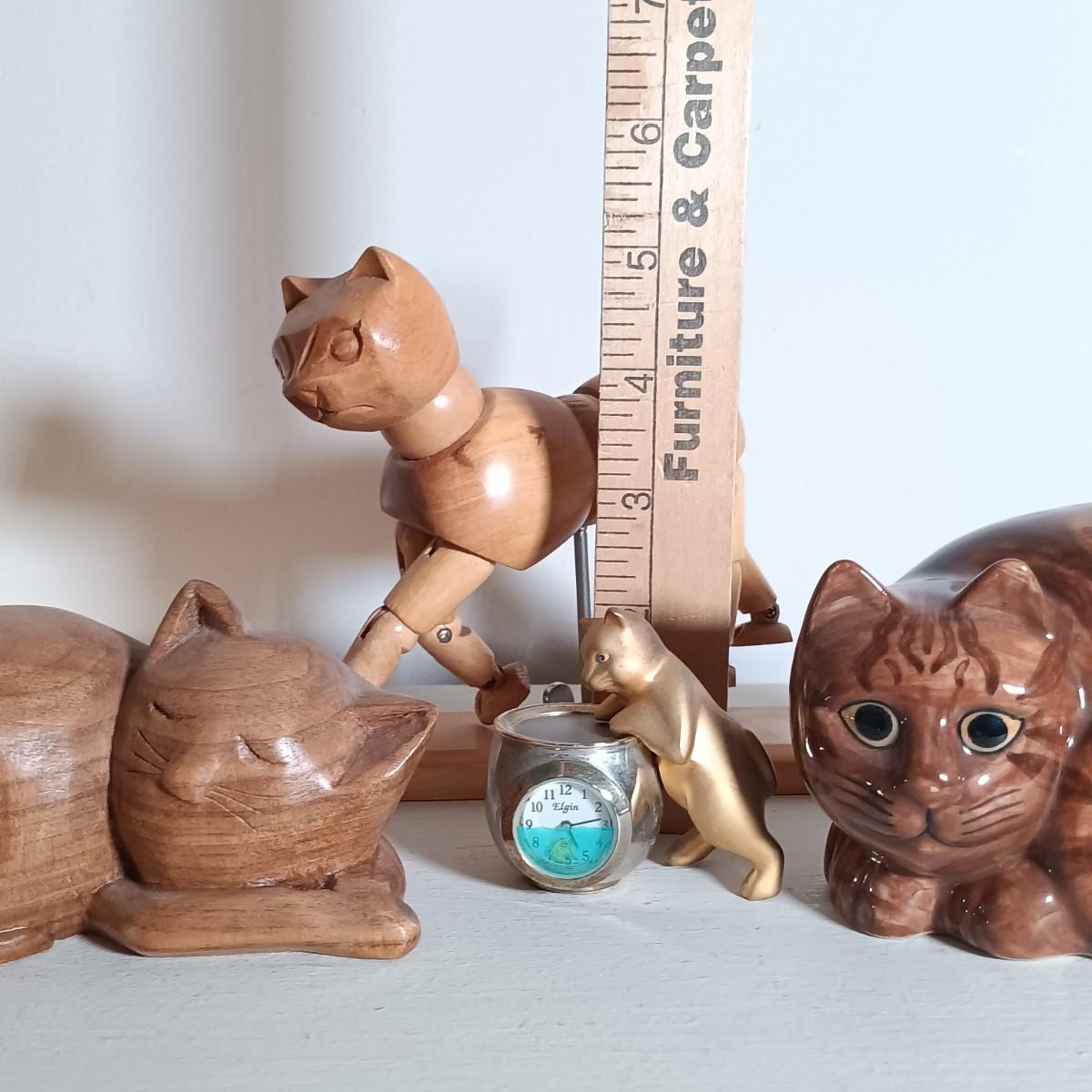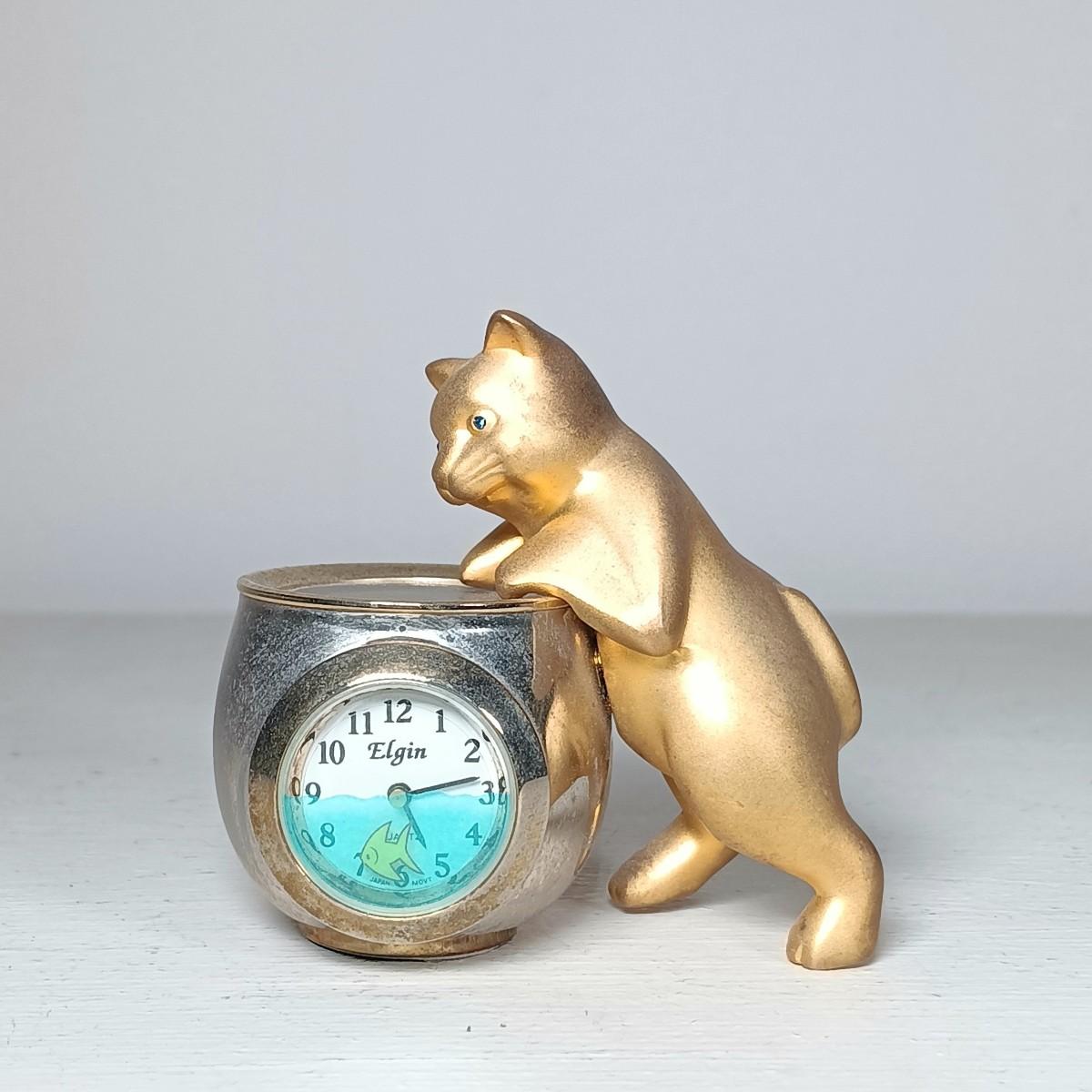 LOT 52: Vintage Elgin Miniature Clock Cat, Quail Pottery Gus the Cat & More