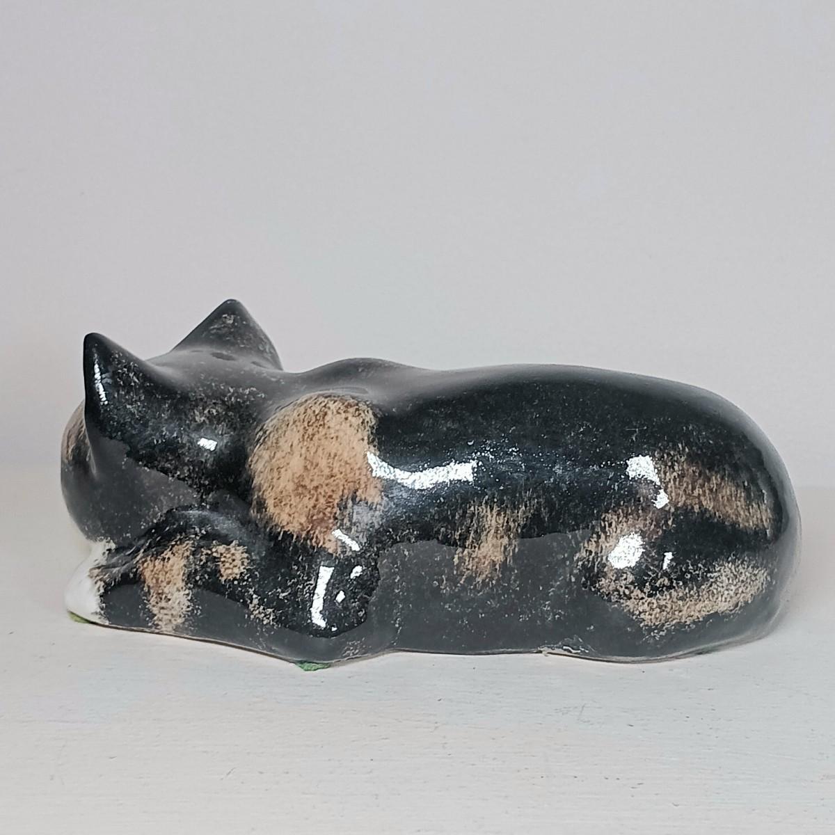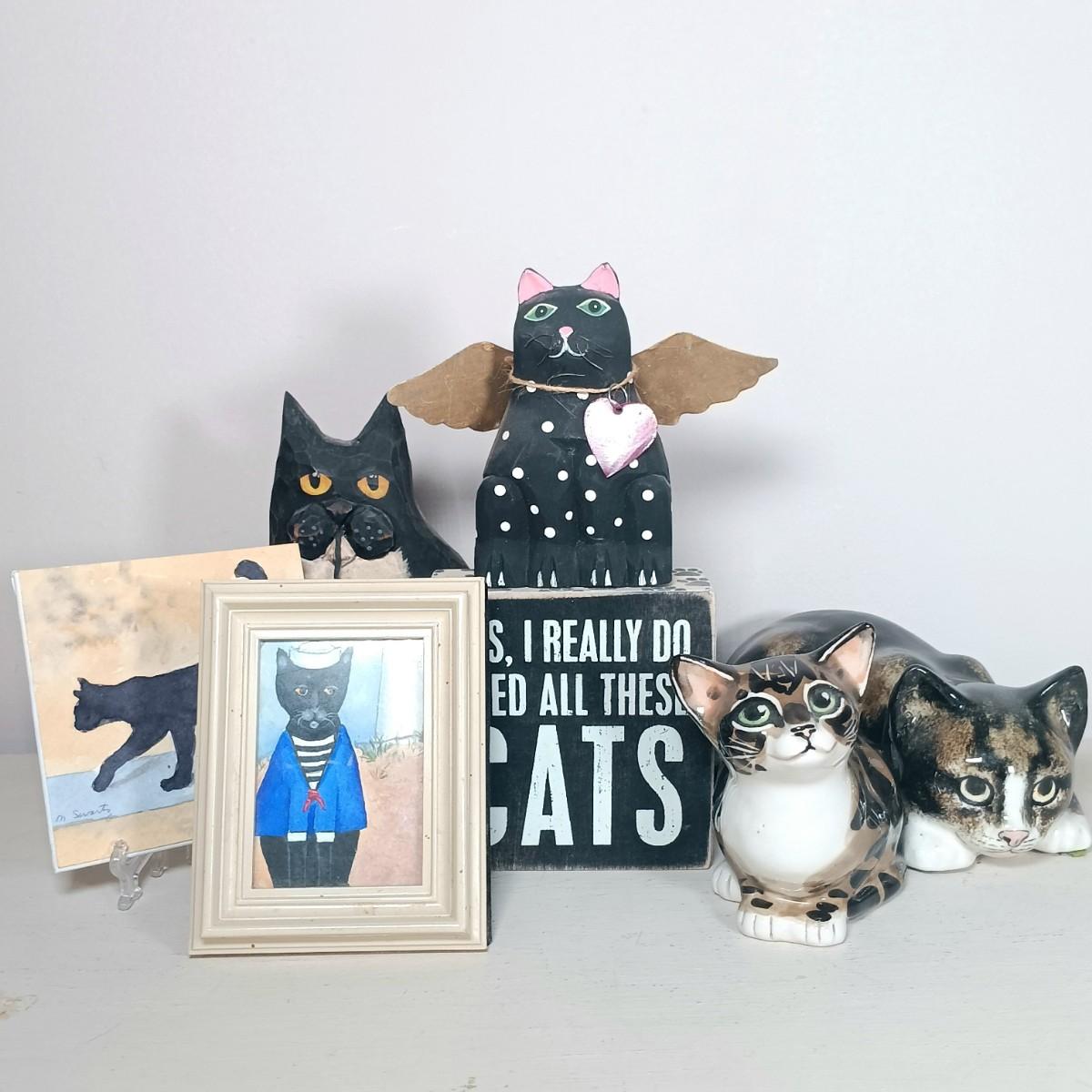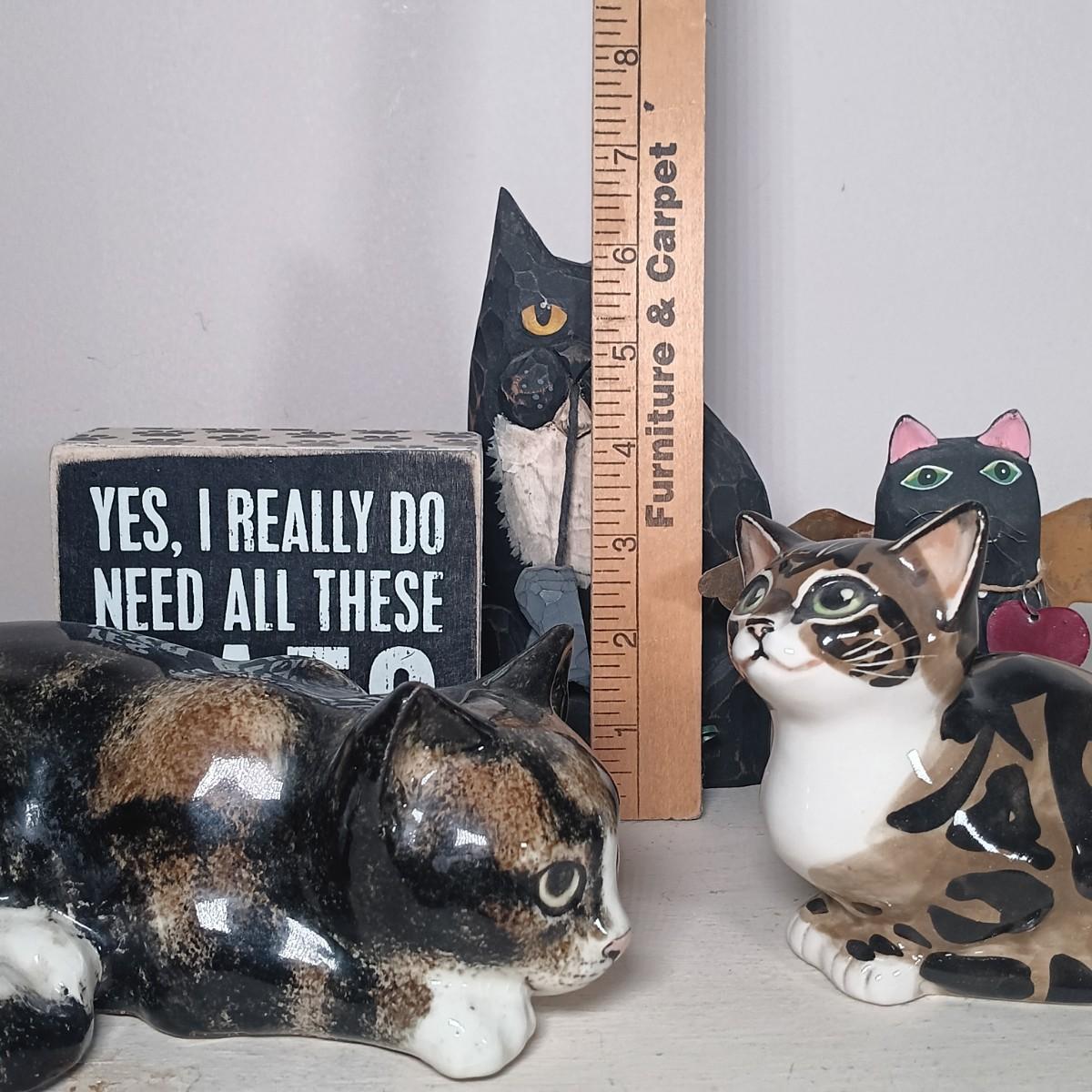 LOT 54: Signed Kensington Pottery Lying Cat, Woodcraft Cats, Signed Cat Art & More