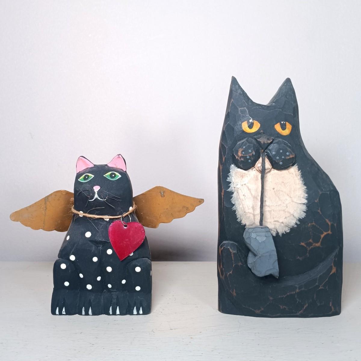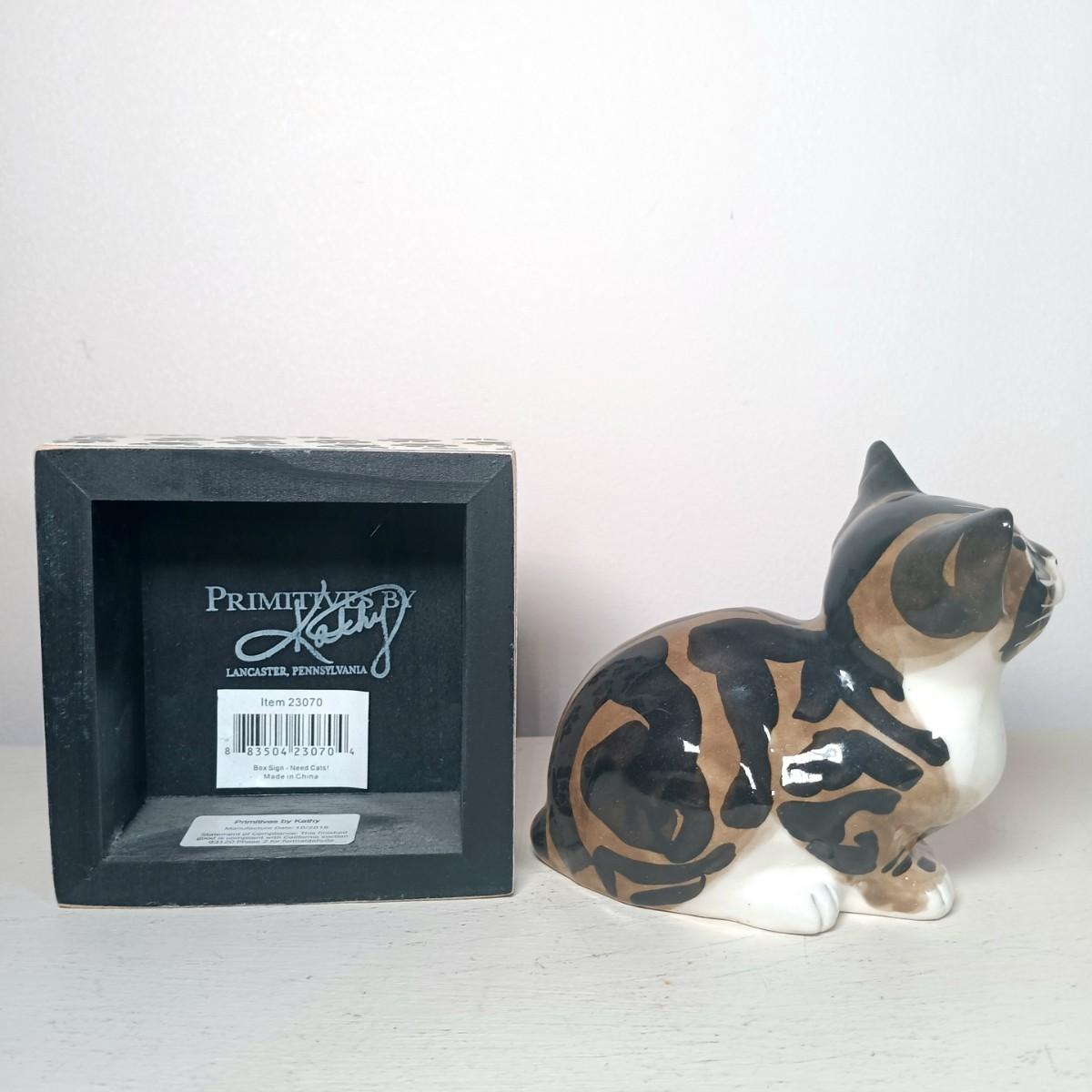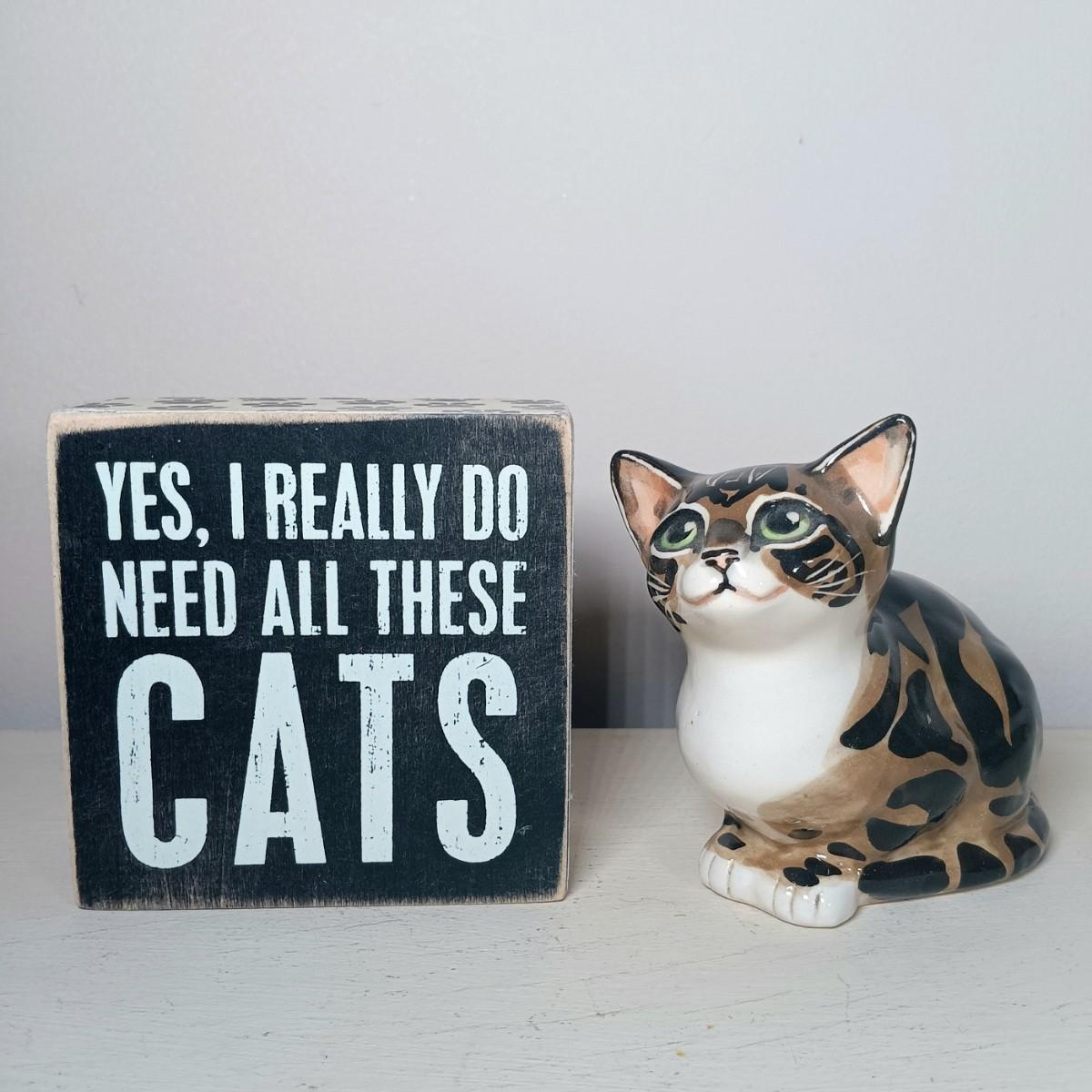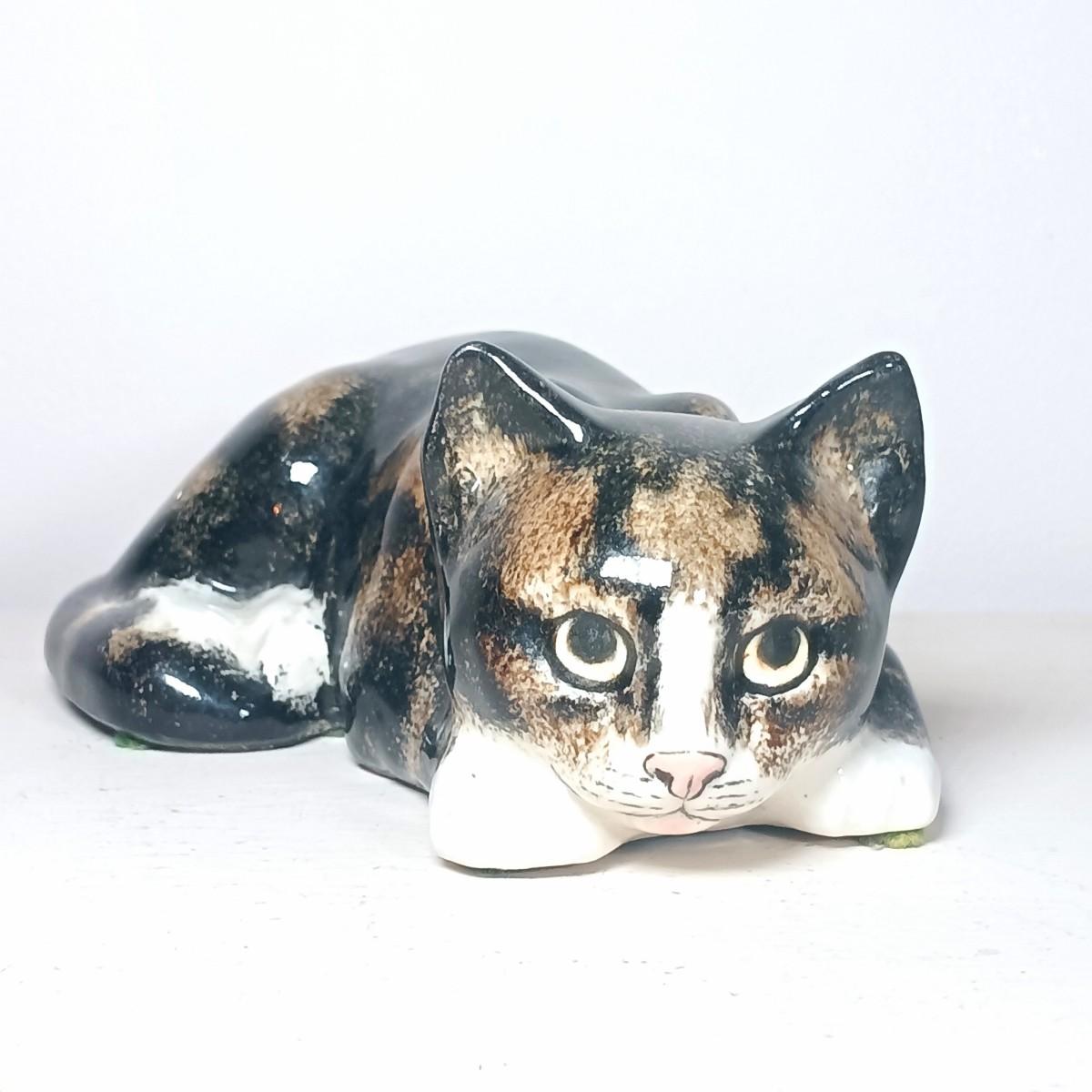 LOT 54: Signed Kensington Pottery Lying Cat, Woodcraft Cats, Signed Cat Art & More