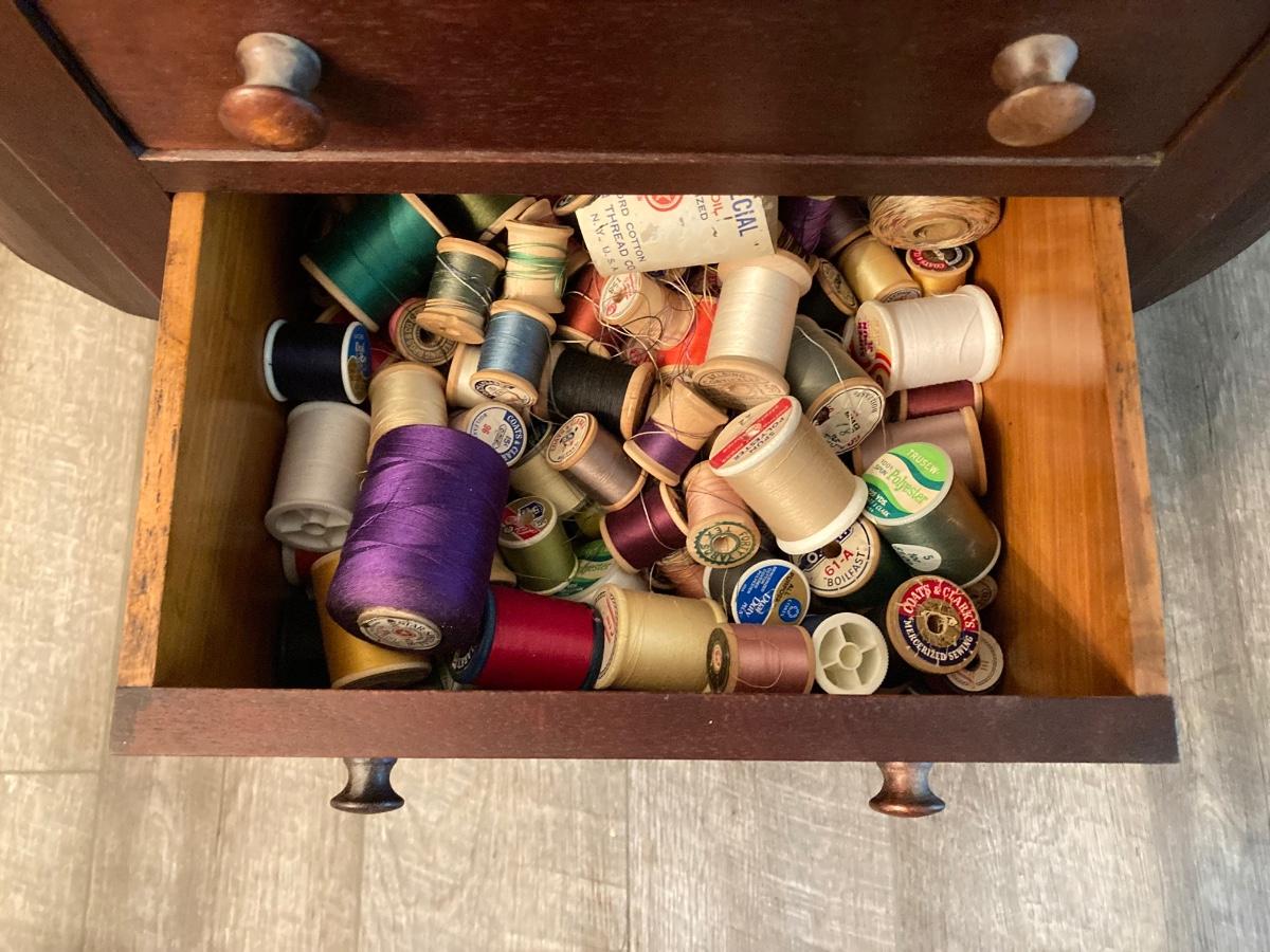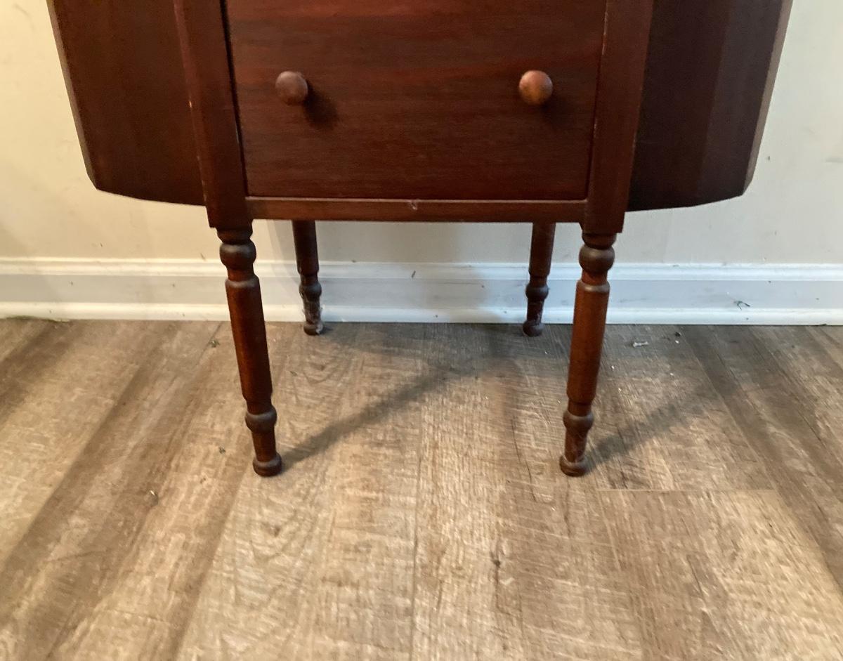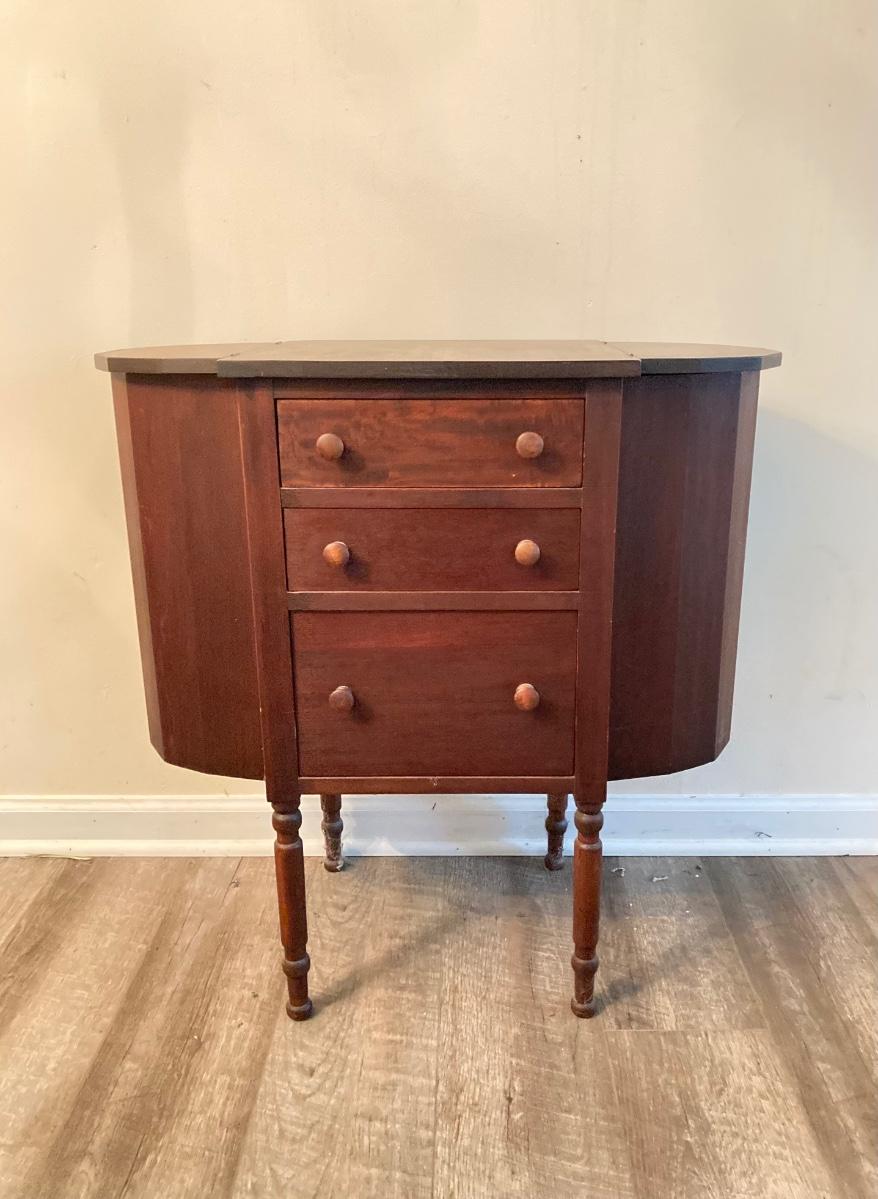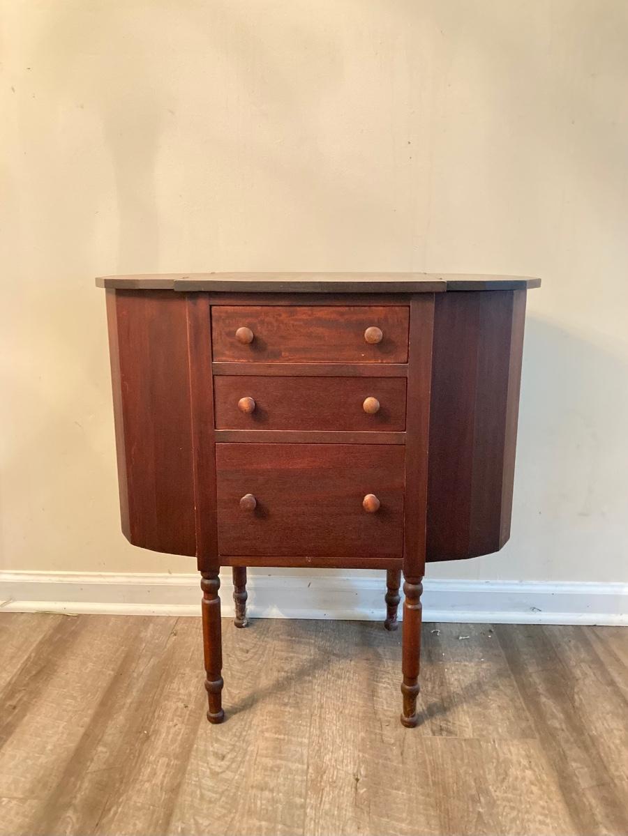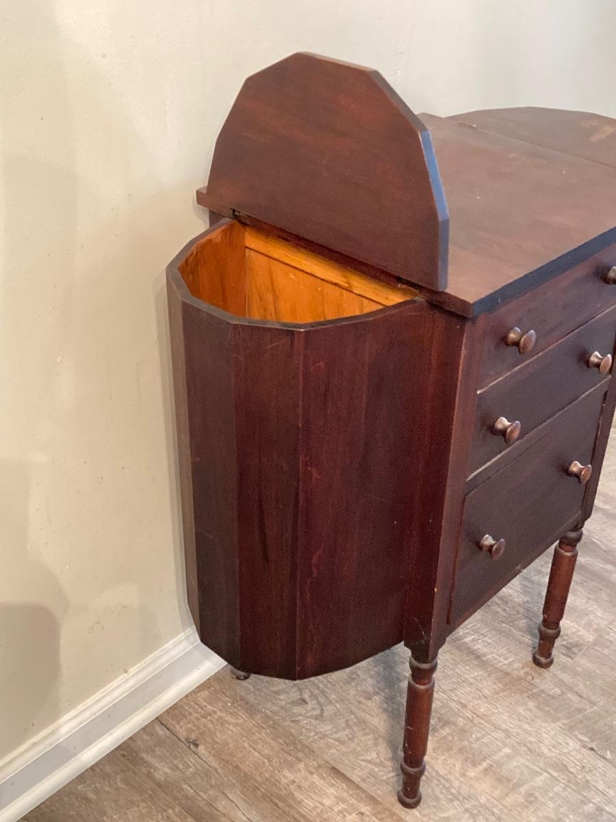 LOT 55: Martha Washington Sewing Table and Contents with Oil Painting