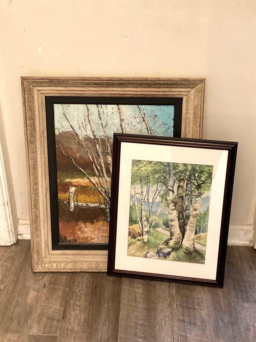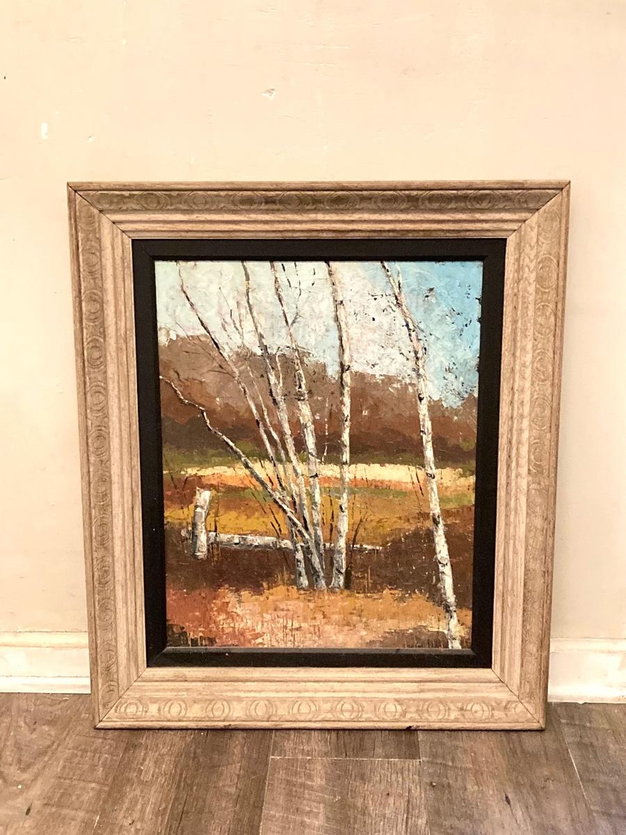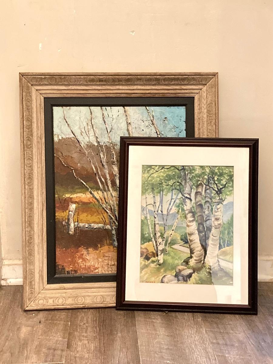 LOT 57: Pair of Framed White Birch Landscape Oil Paintings