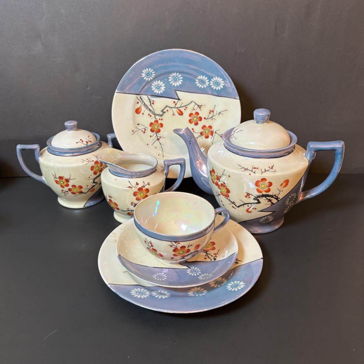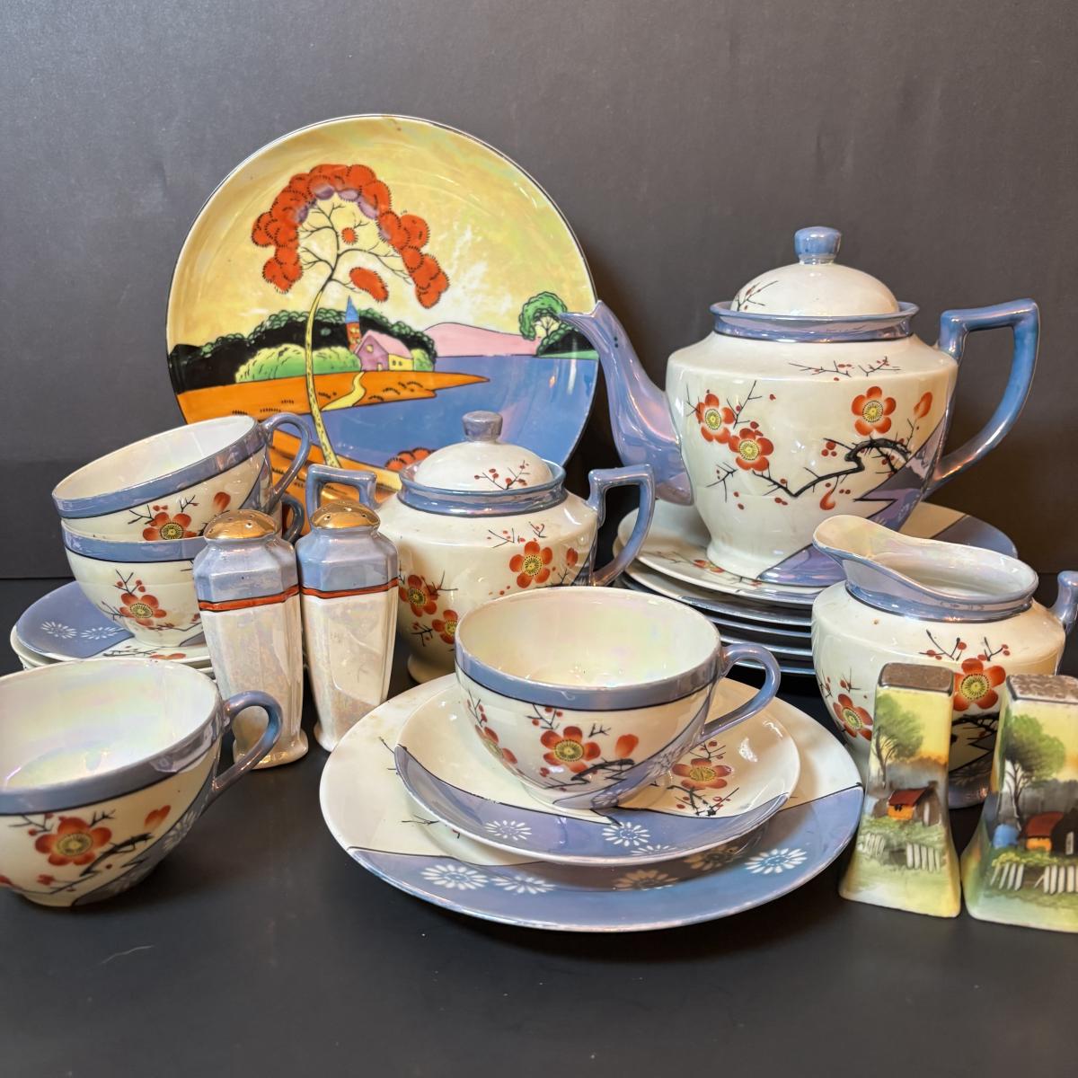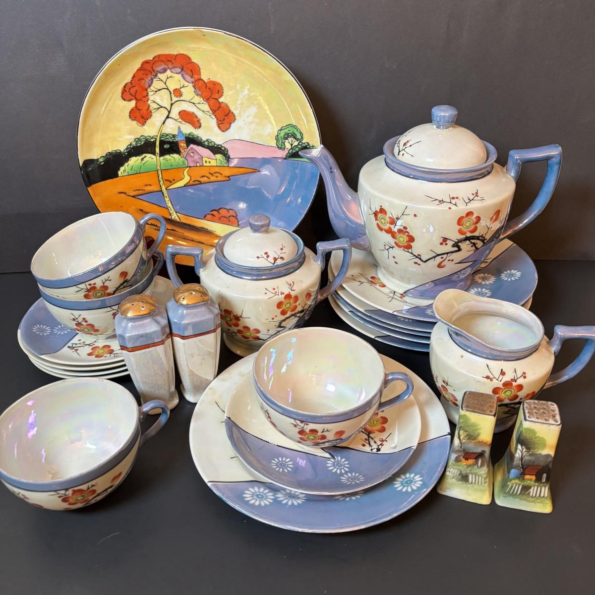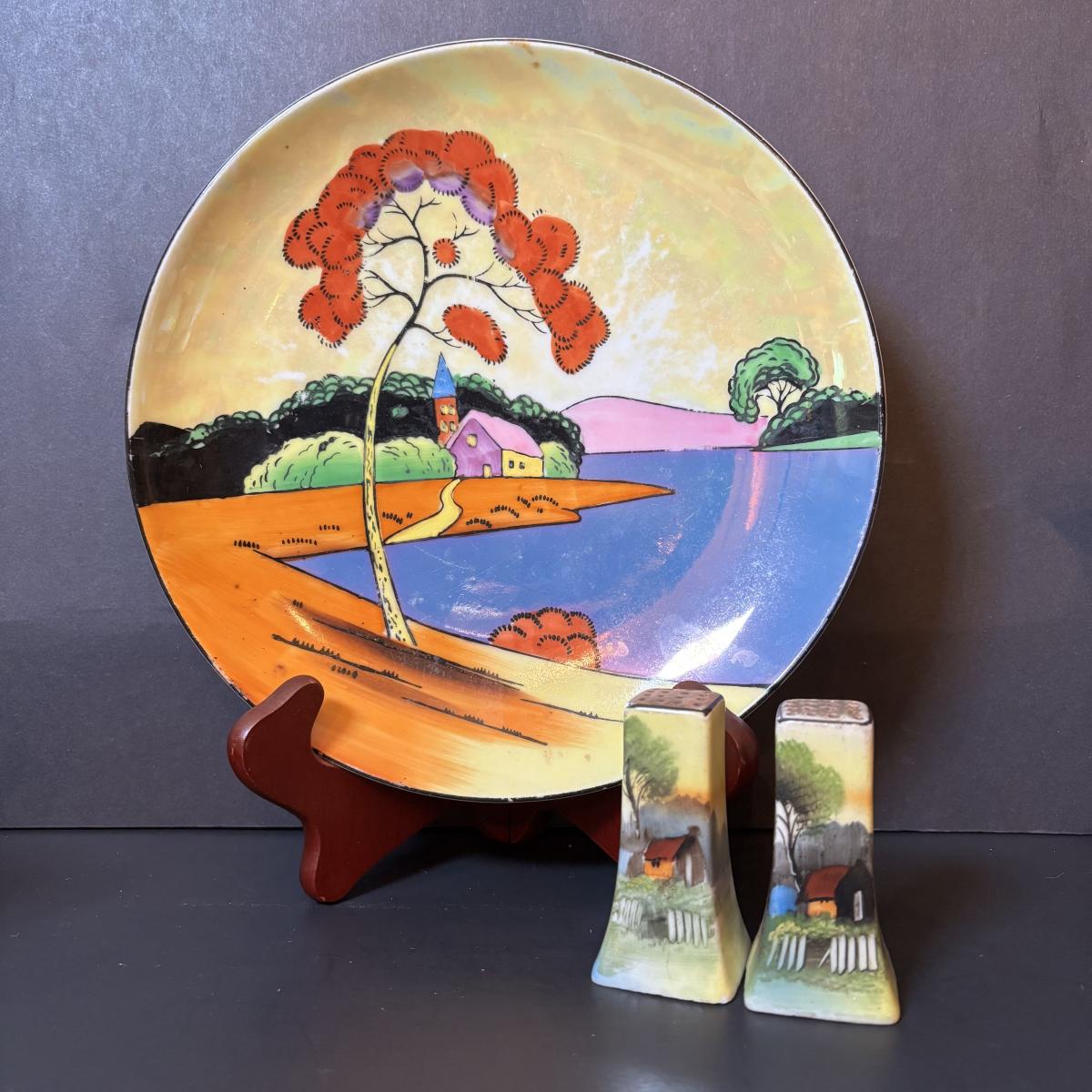 LOT 88: Collection of Hand Painted China including a Tea Set, Salt/Pepper Shakers & Decorative Plate
