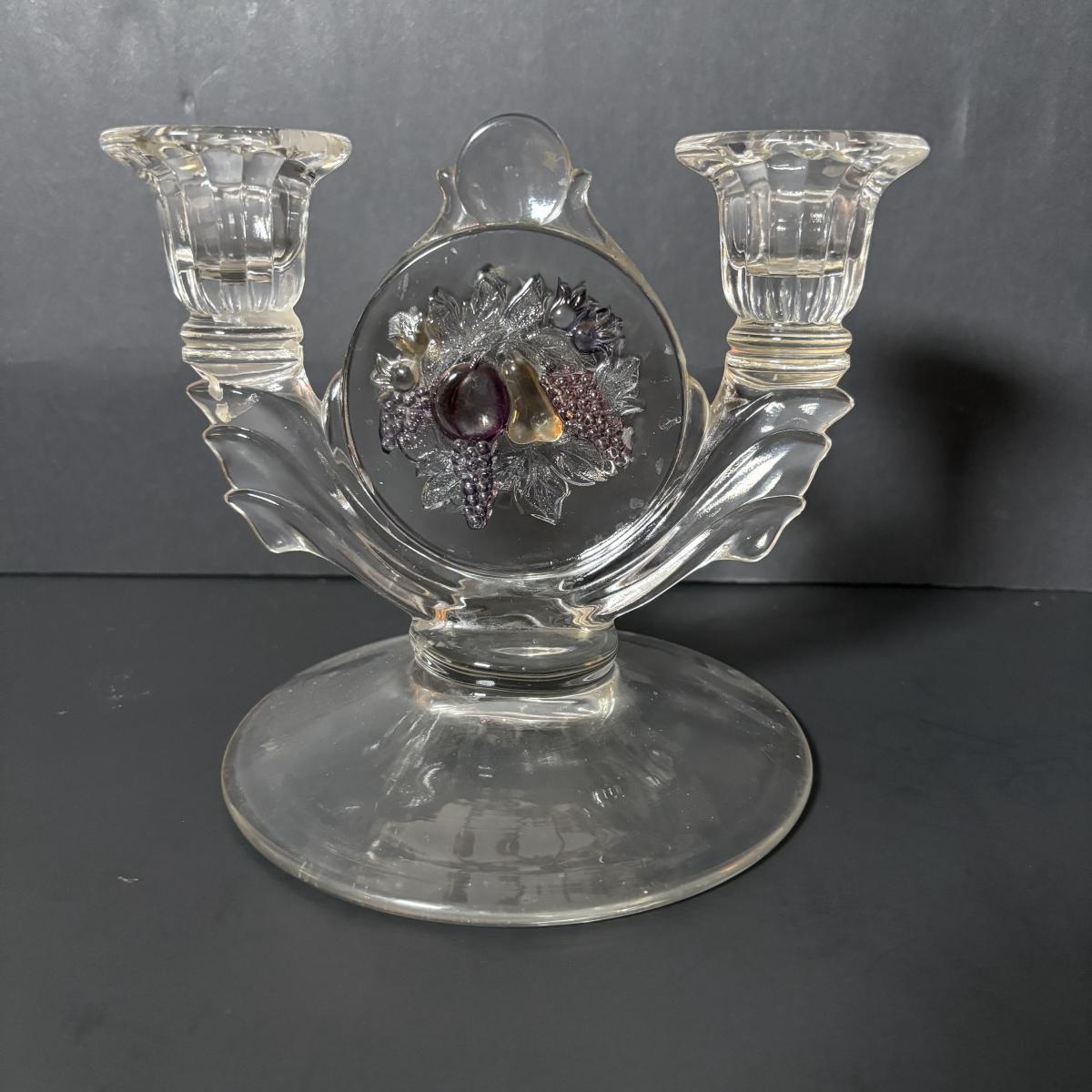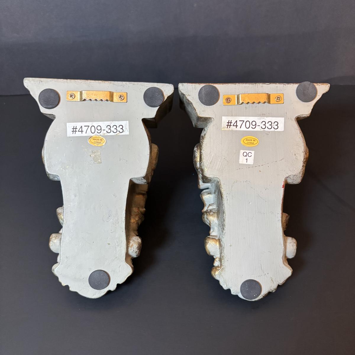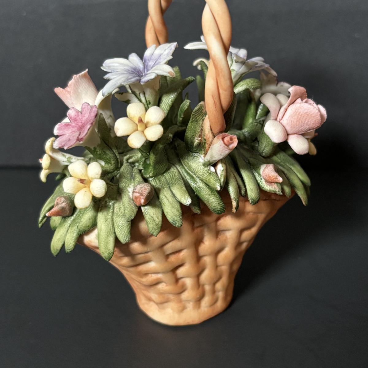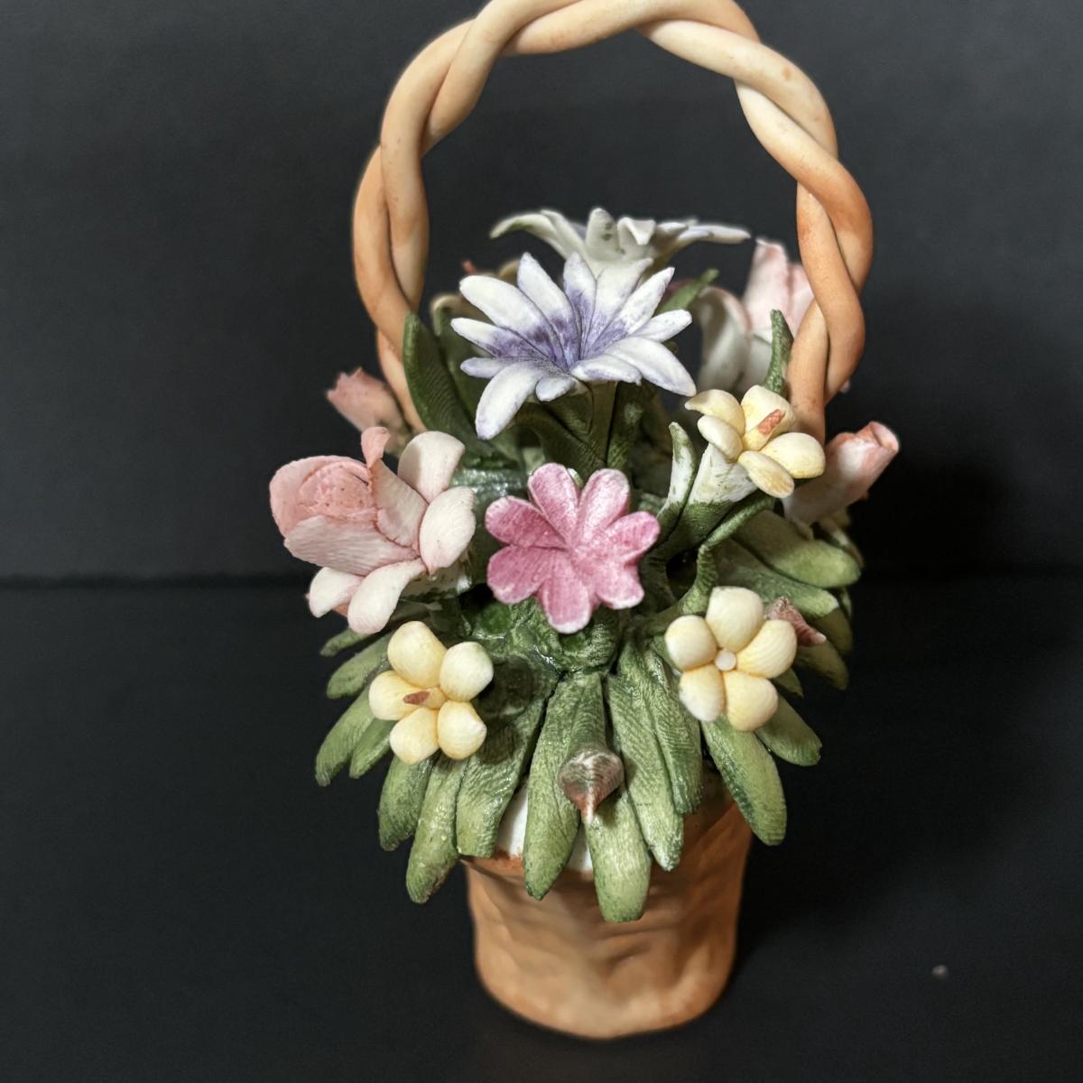 LOT 89: Home Decor Wall Sconces/Shelves & Still Life Print, Capodimonte Basket of Flowers,Glass Dual Light Candlestick/Holder w/Applied Color