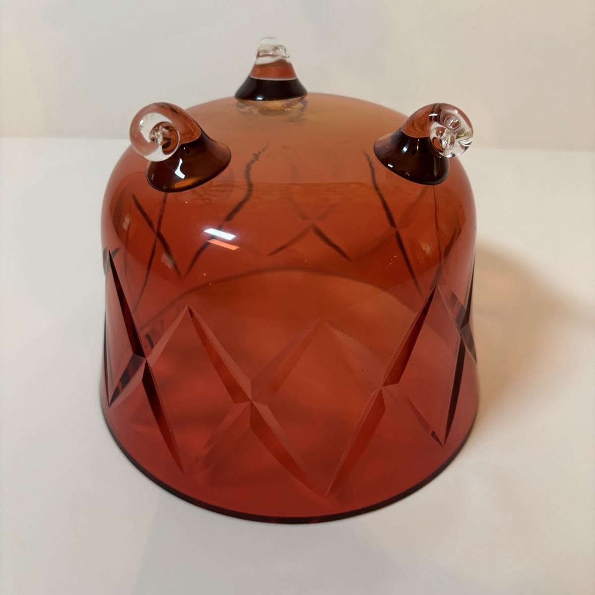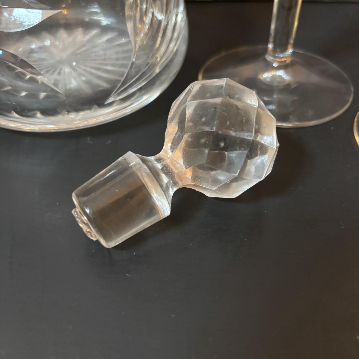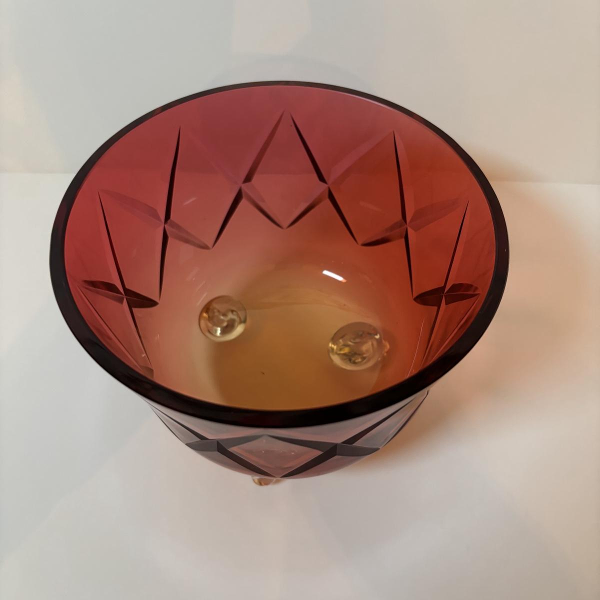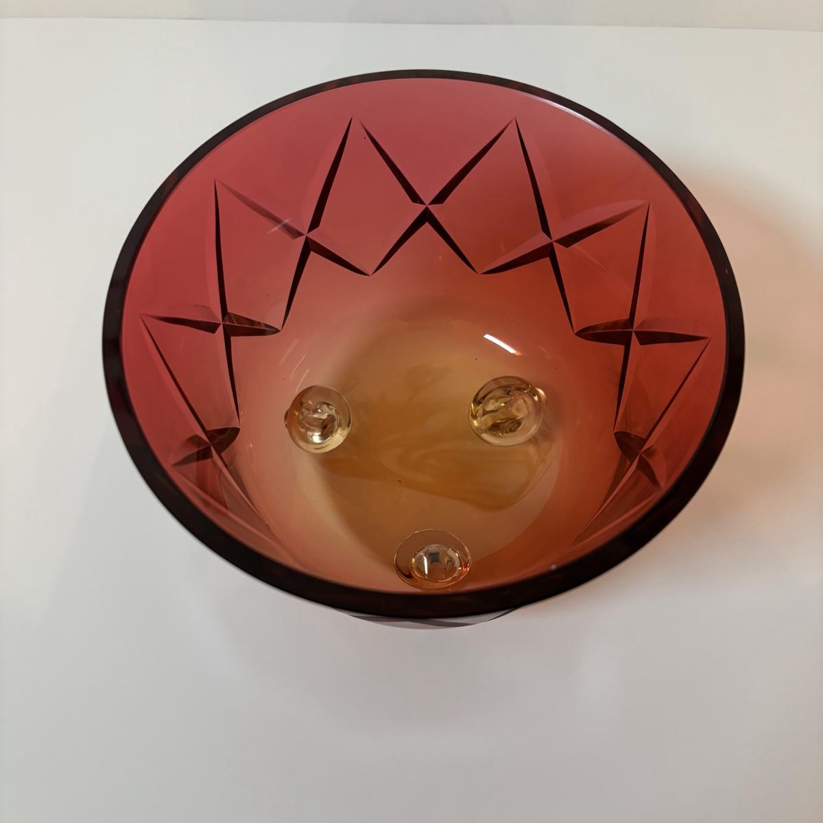 LOT 97: Vintage Footed Cranberry Glass Bowl along with Crystal Candle Sticks & Decanter