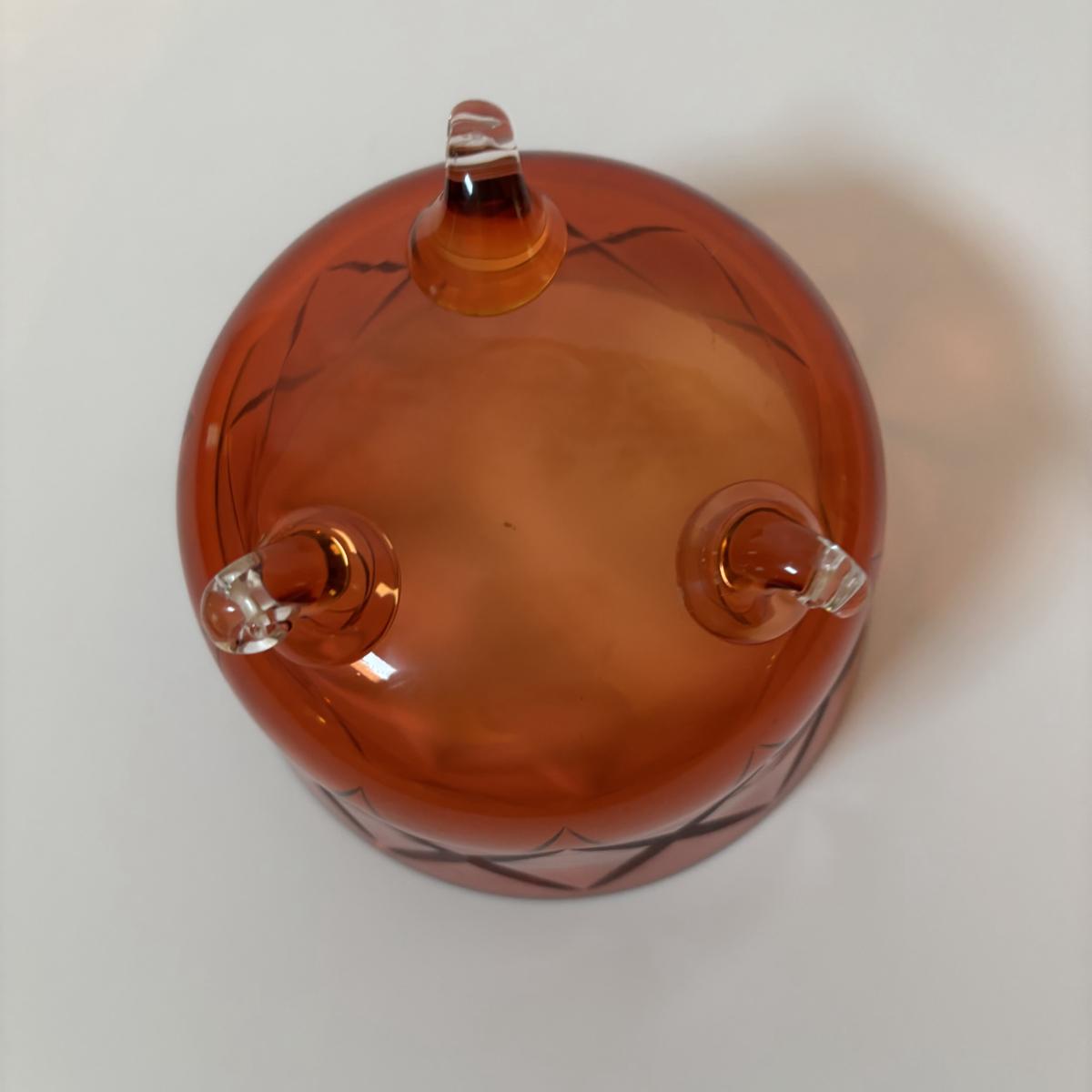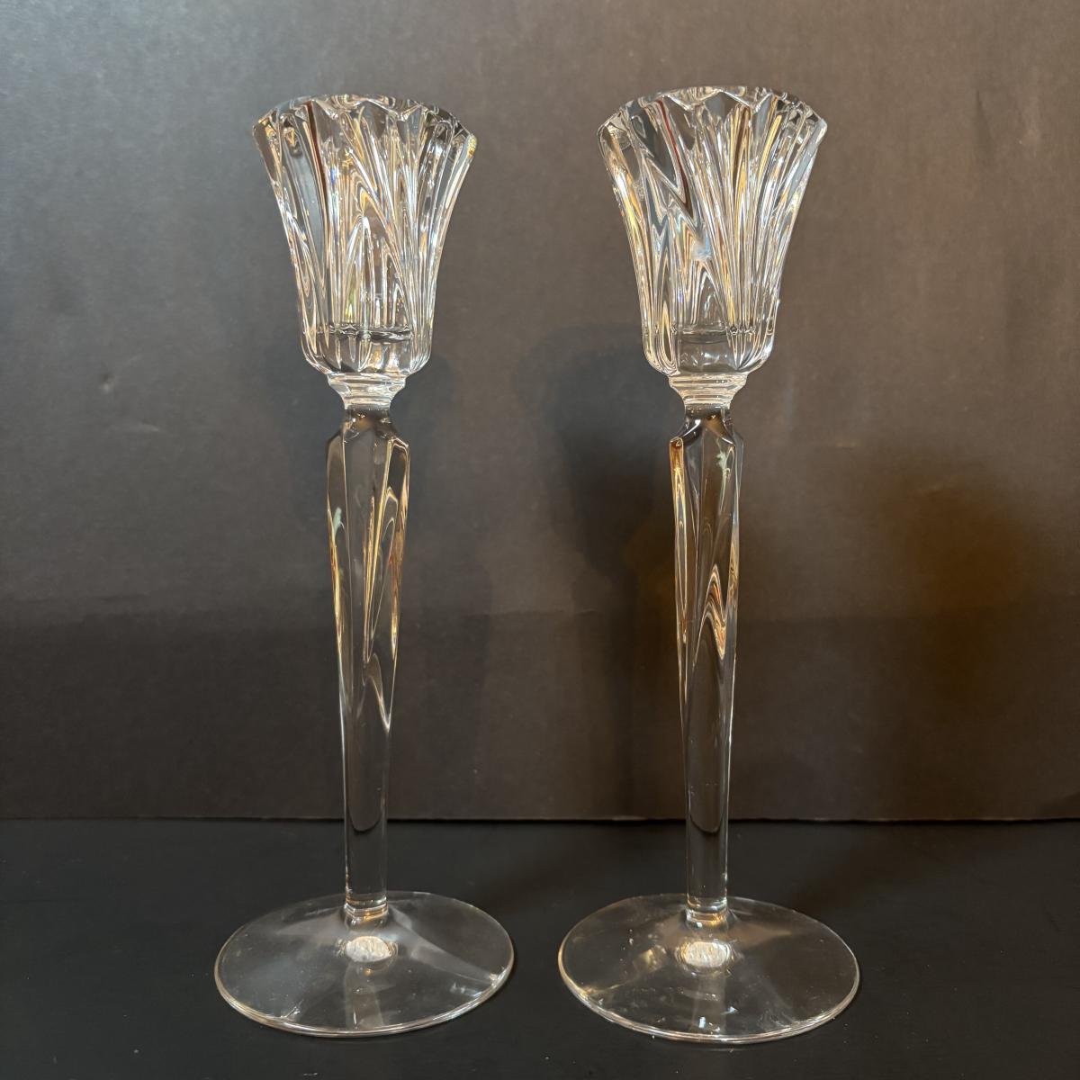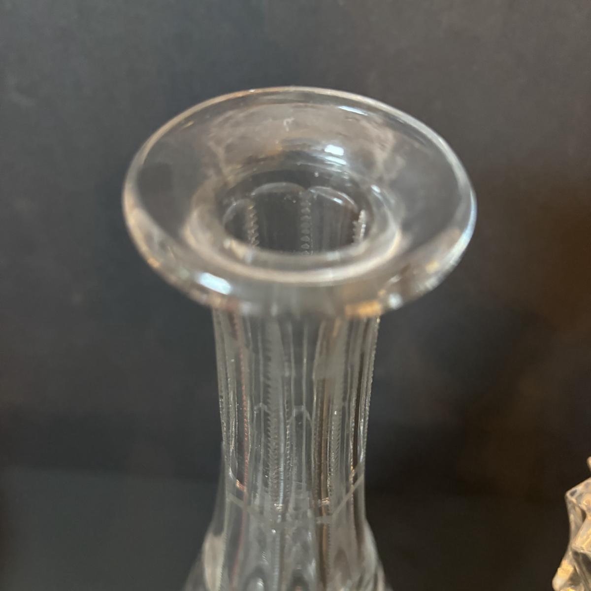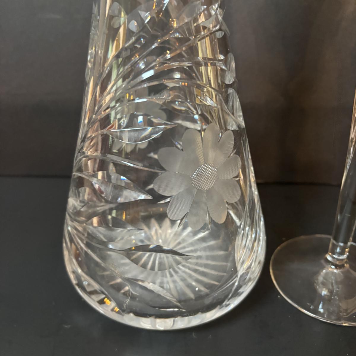 LOT 97: Vintage Footed Cranberry Glass Bowl along with Crystal Candle Sticks & Decanter