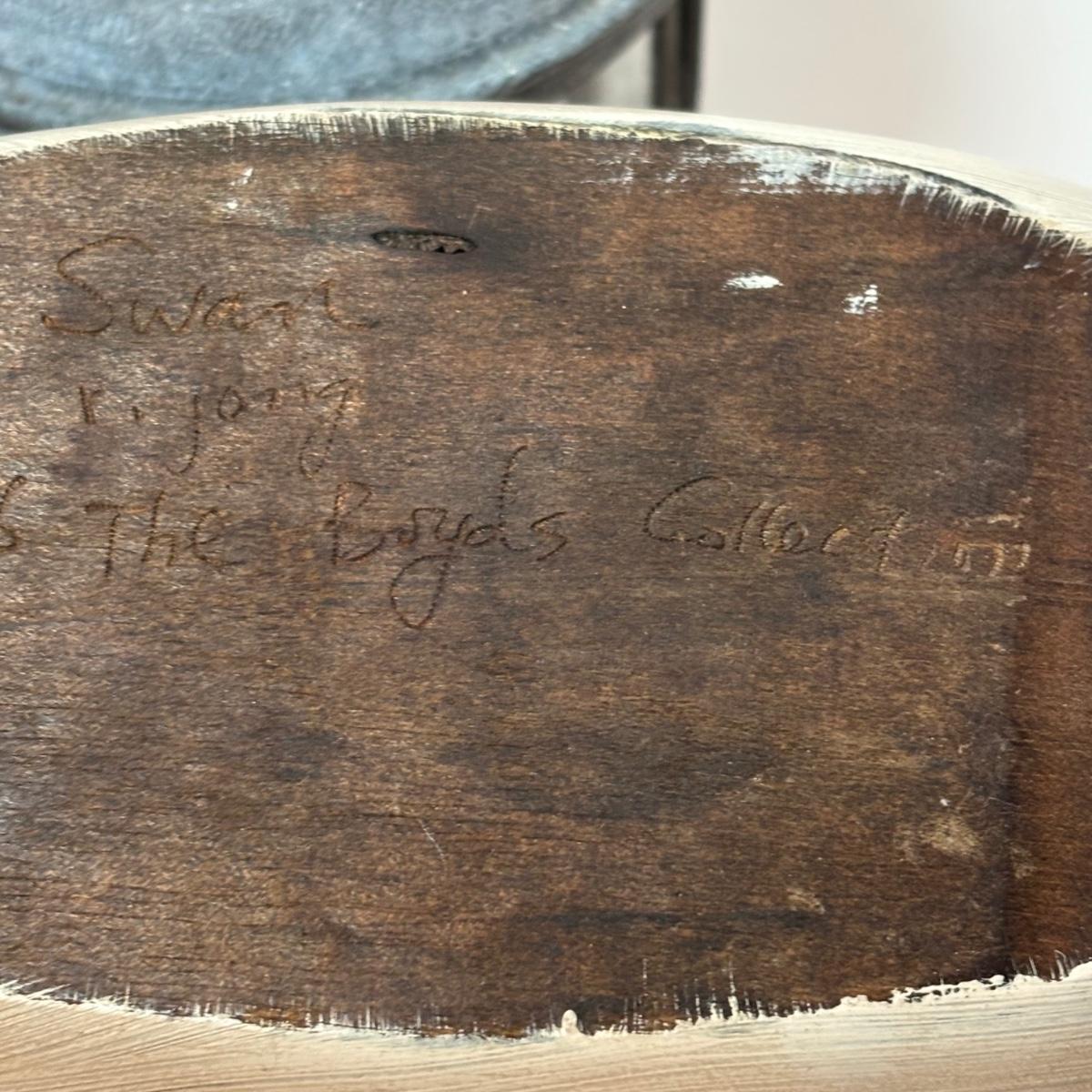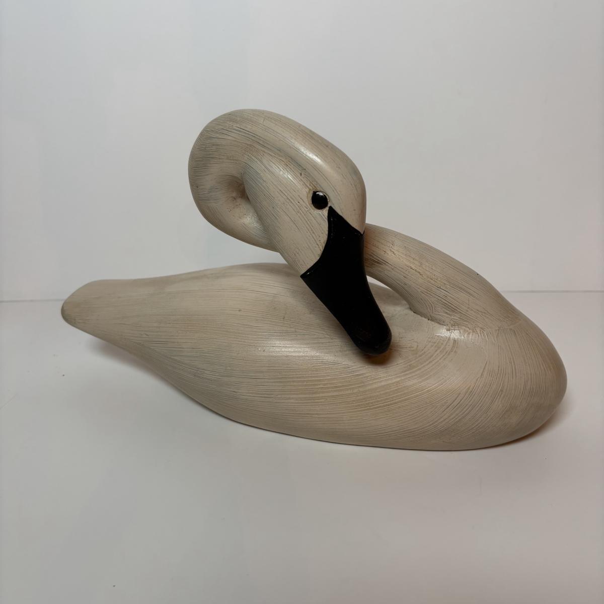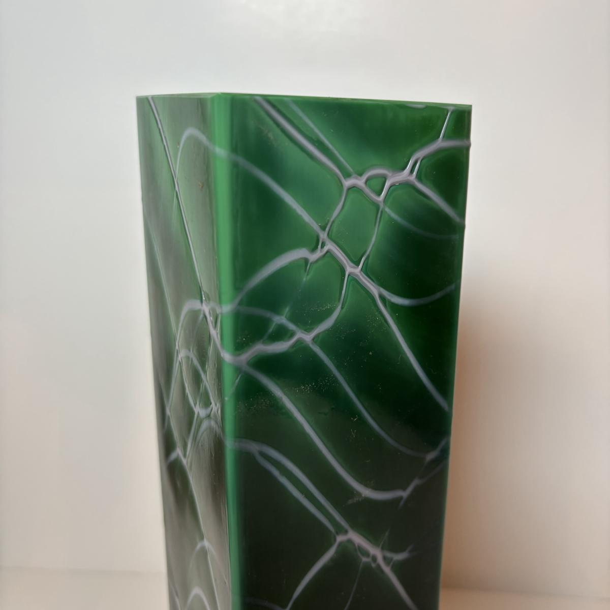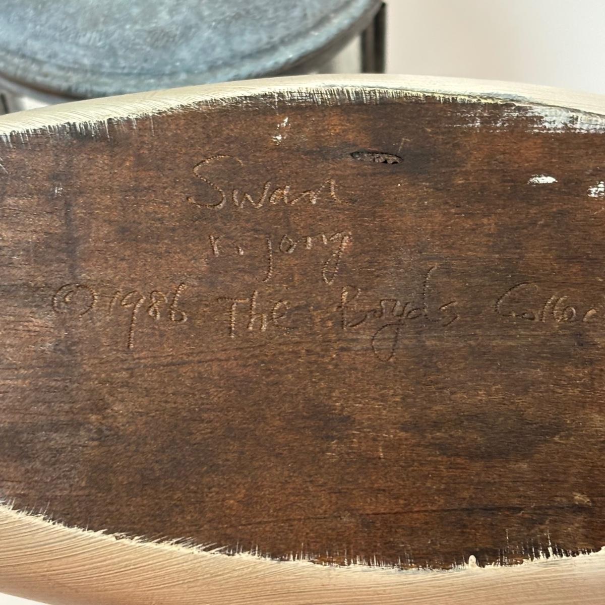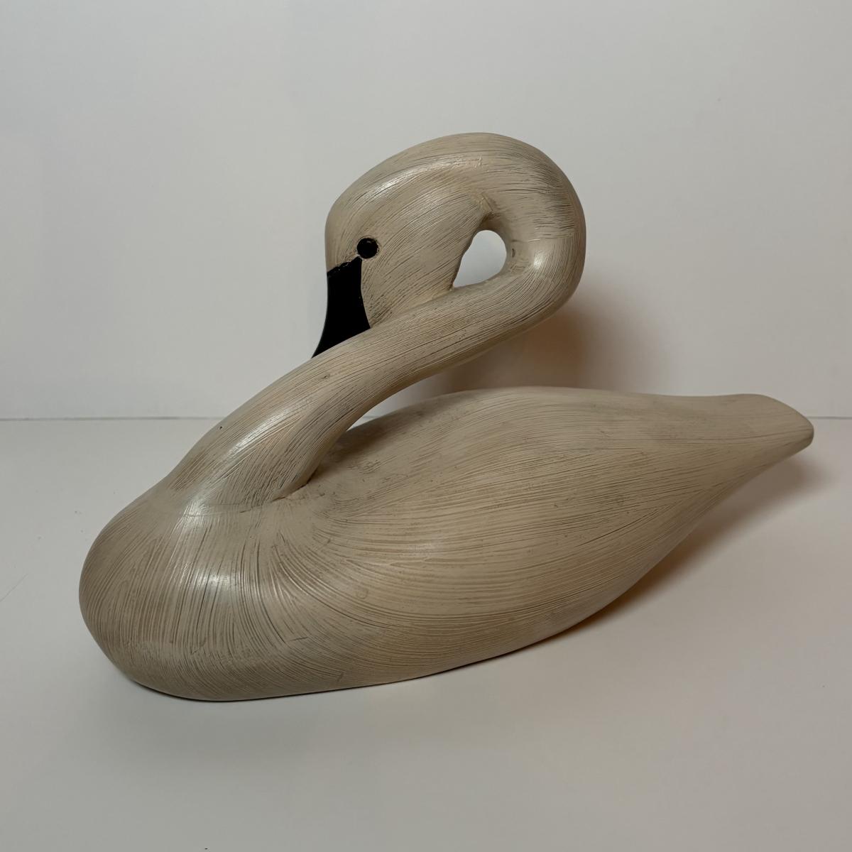 LOT 99: MCM Studio Art Glass Spaghetti String Green Artisan Vase, Wooden Resting Swan 1986 The Boyds Collection & Votive Candle Lantern