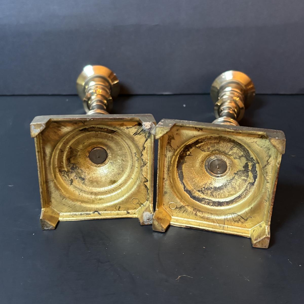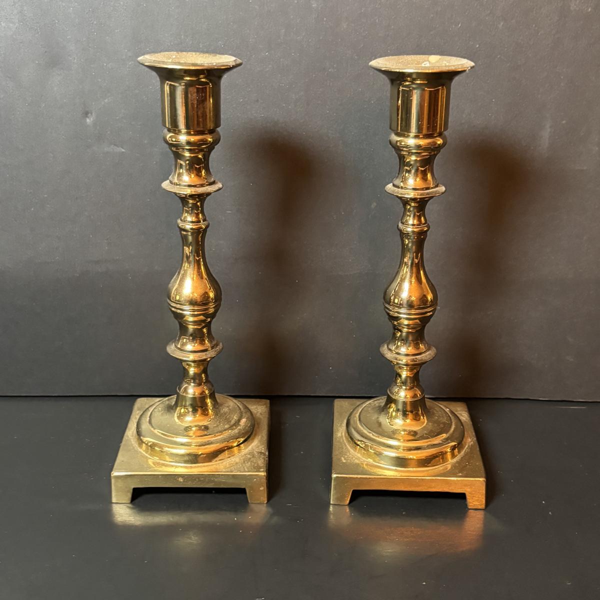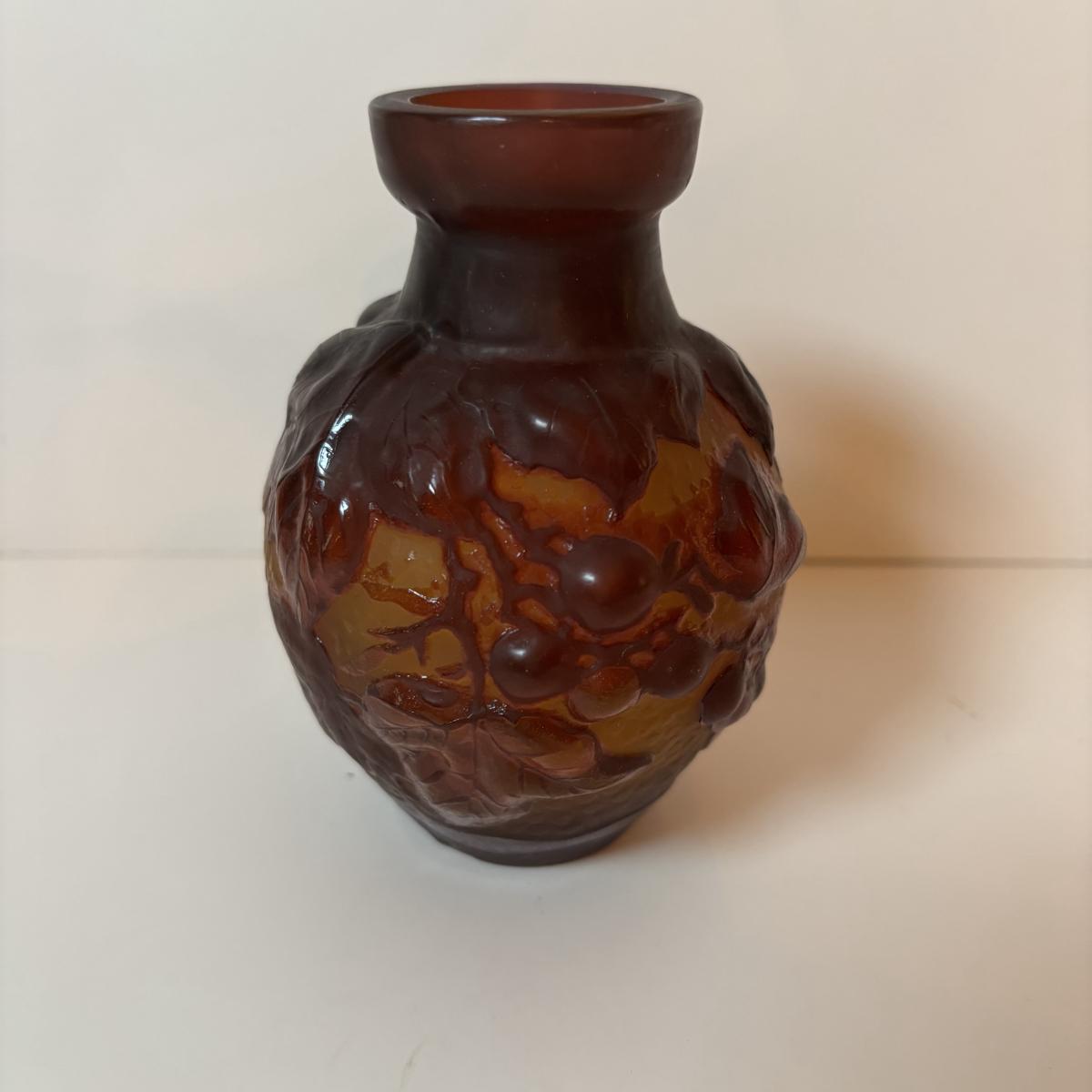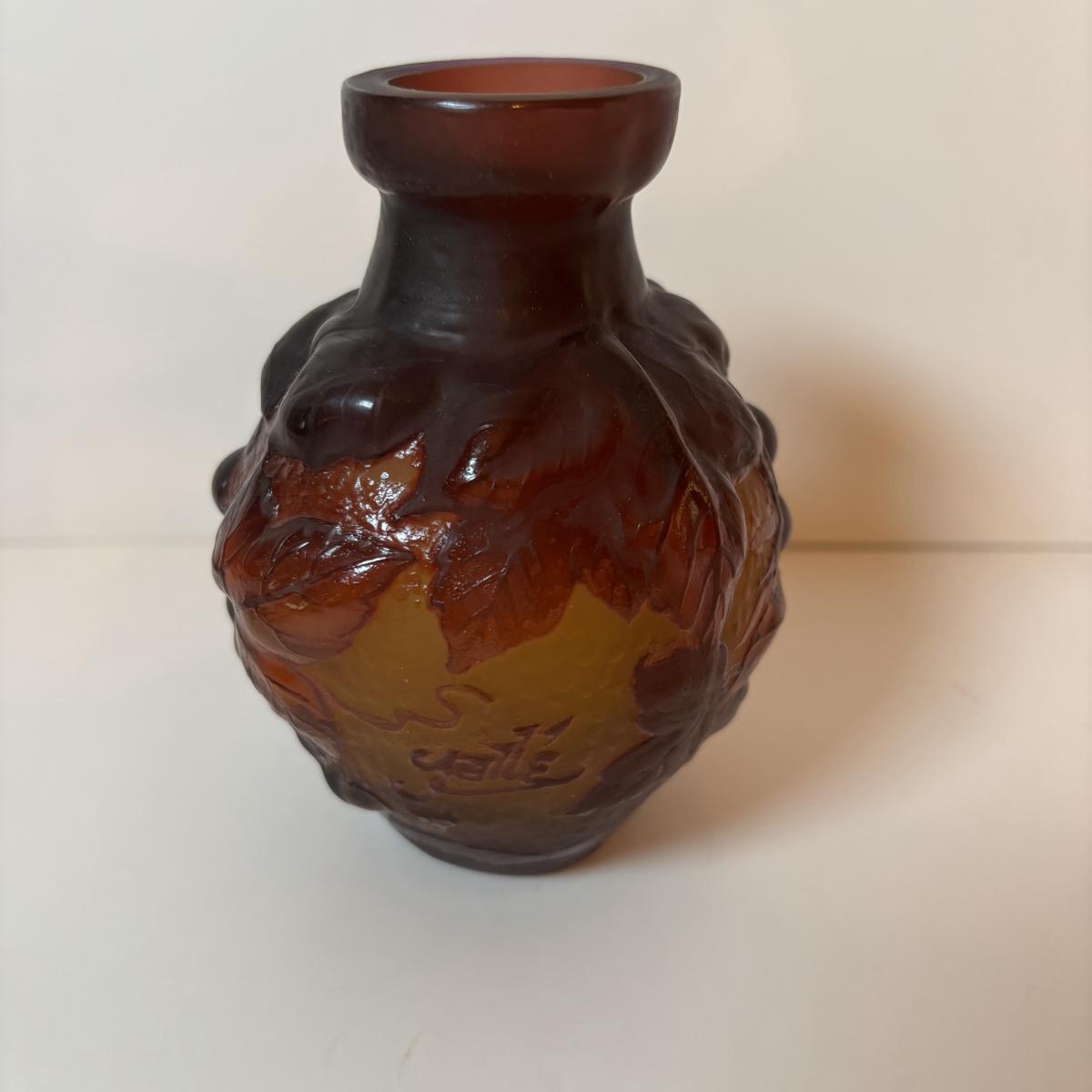 LOT 218: Iridescent Purple Bud Vase, Galle' Cameo Glass Vase, Brass Candle Sticks & Peanut Trinket Box, Iridescent Marble & More