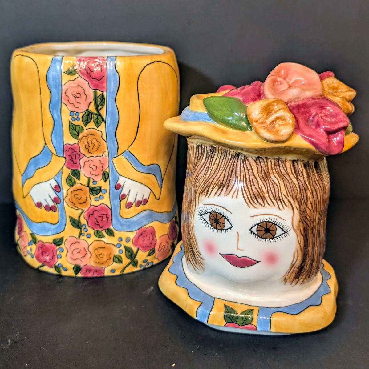 LOT 110: Bella Casa by Ganz Susan Paley "Minna" Cookie Jar & "Roseann" Vase