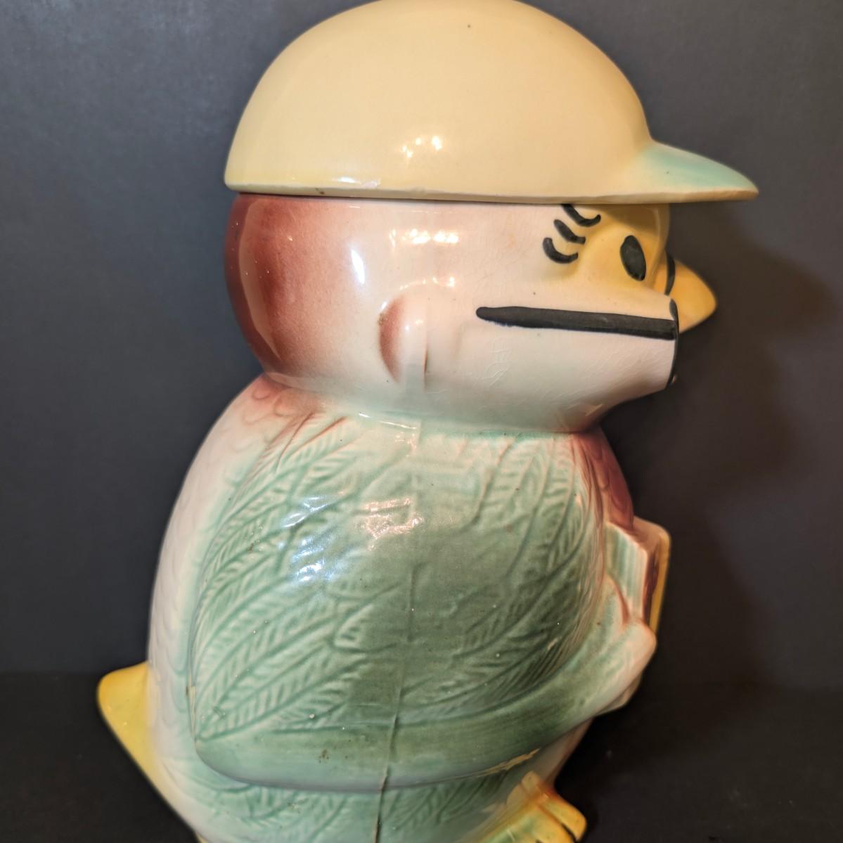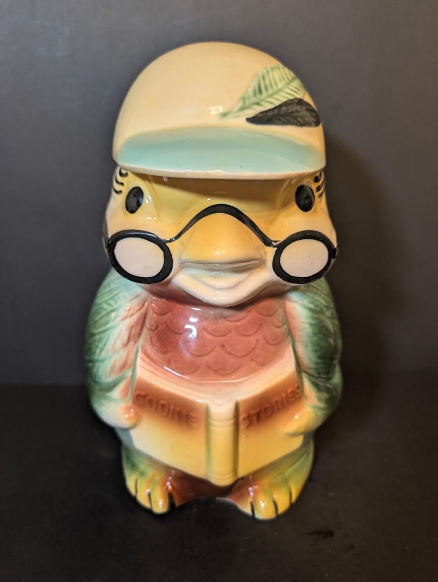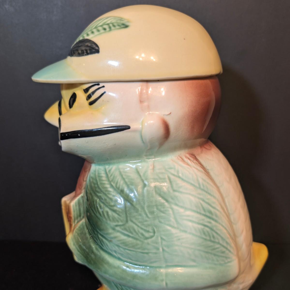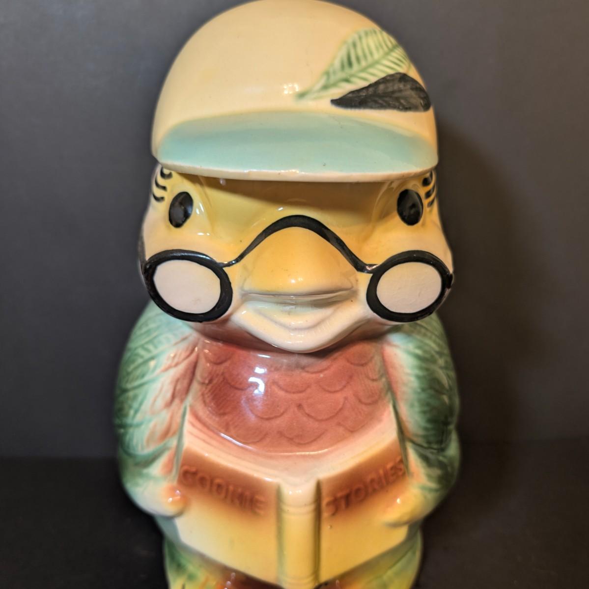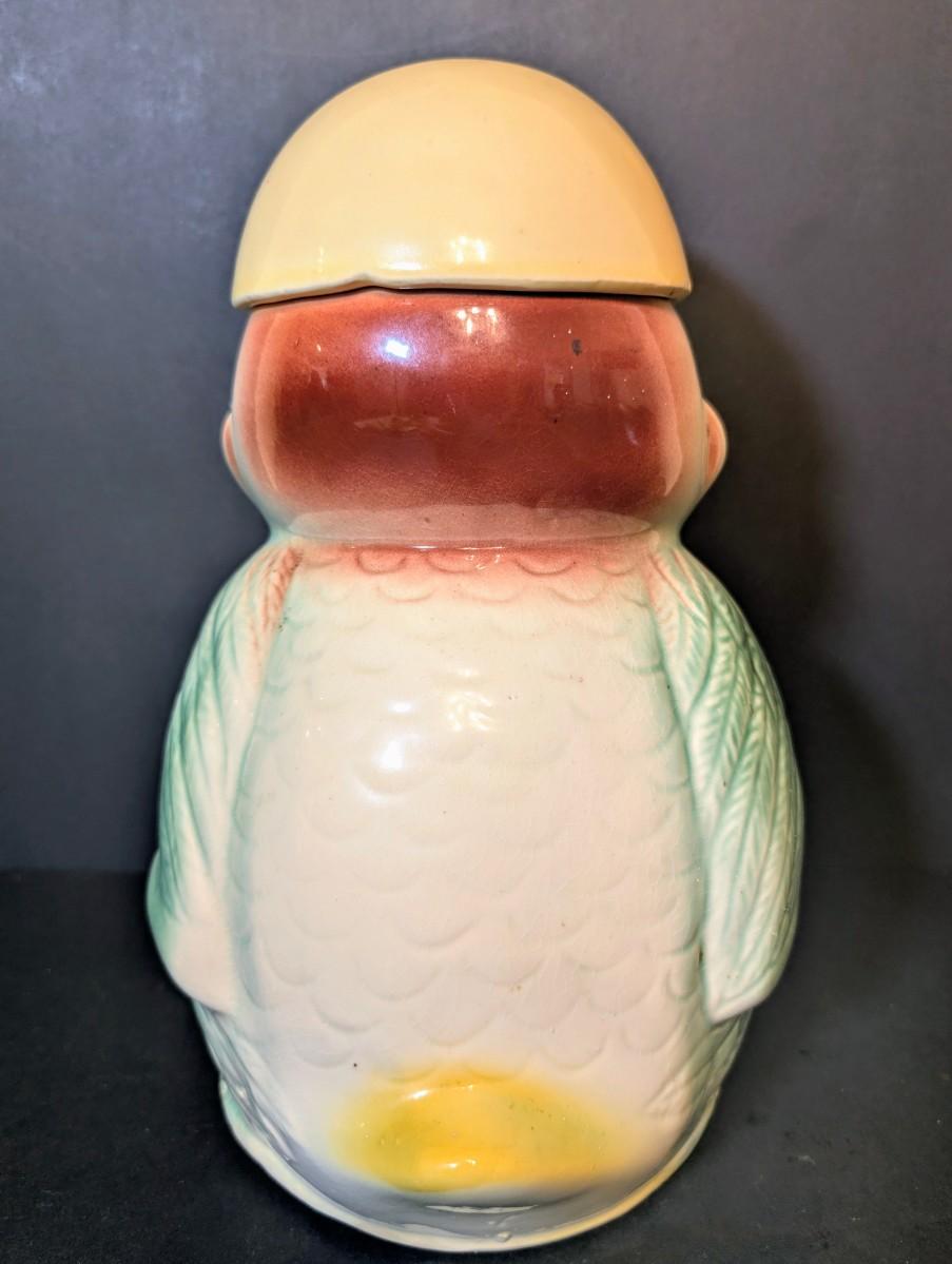 LOT 114: Vintage Bisque Bird/Chick with Storybook Cookie Jar