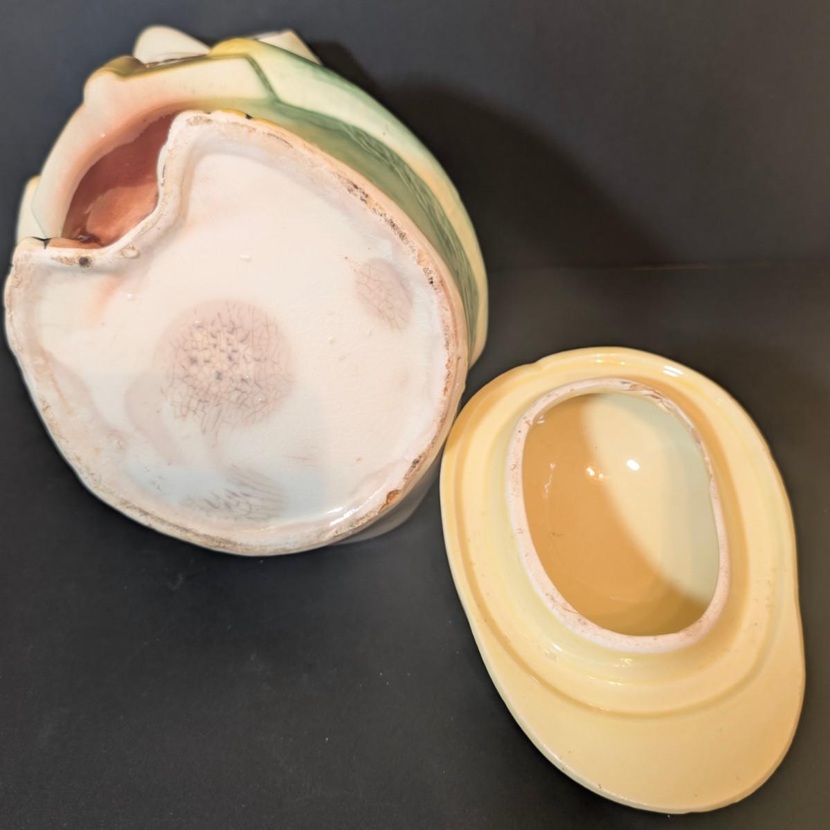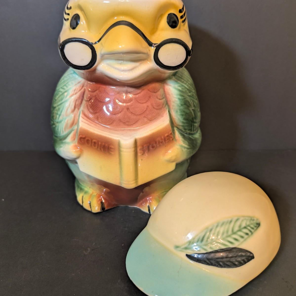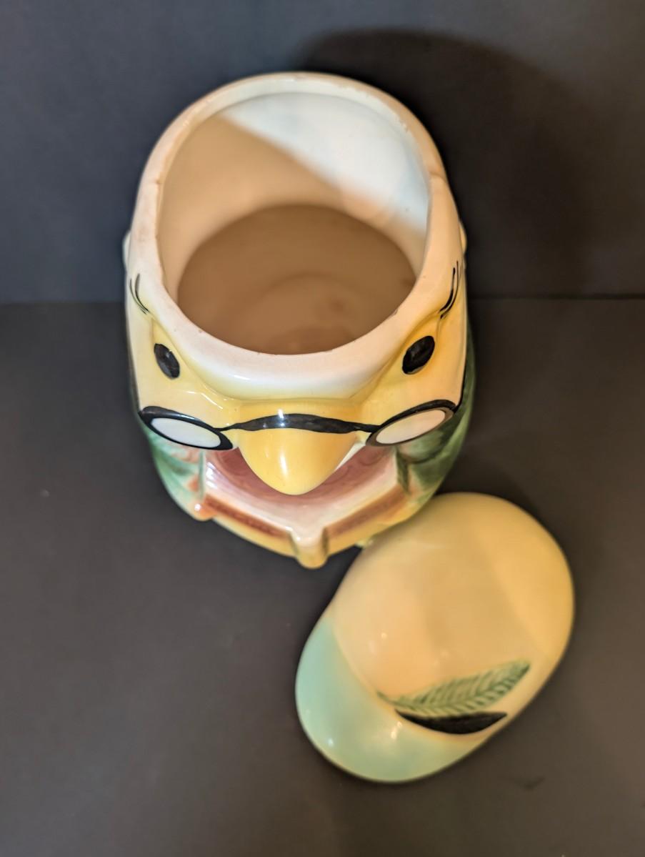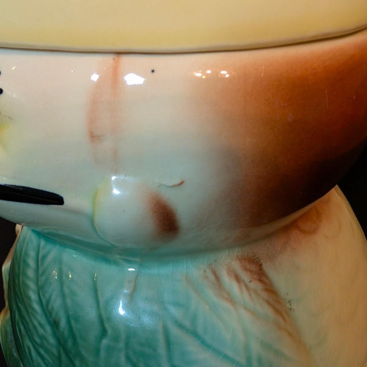 LOT 114: Vintage Bisque Bird/Chick with Storybook Cookie Jar