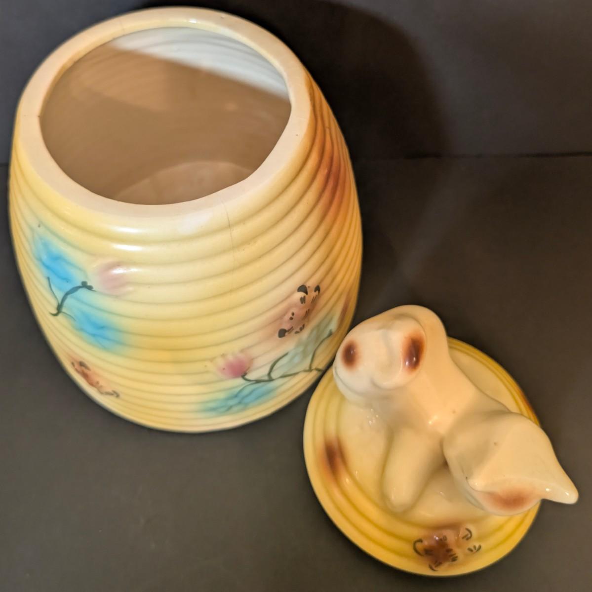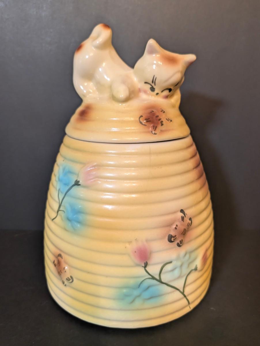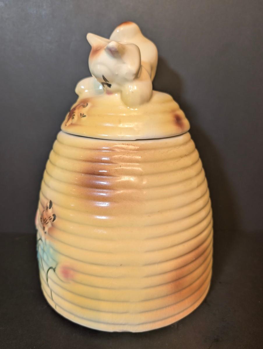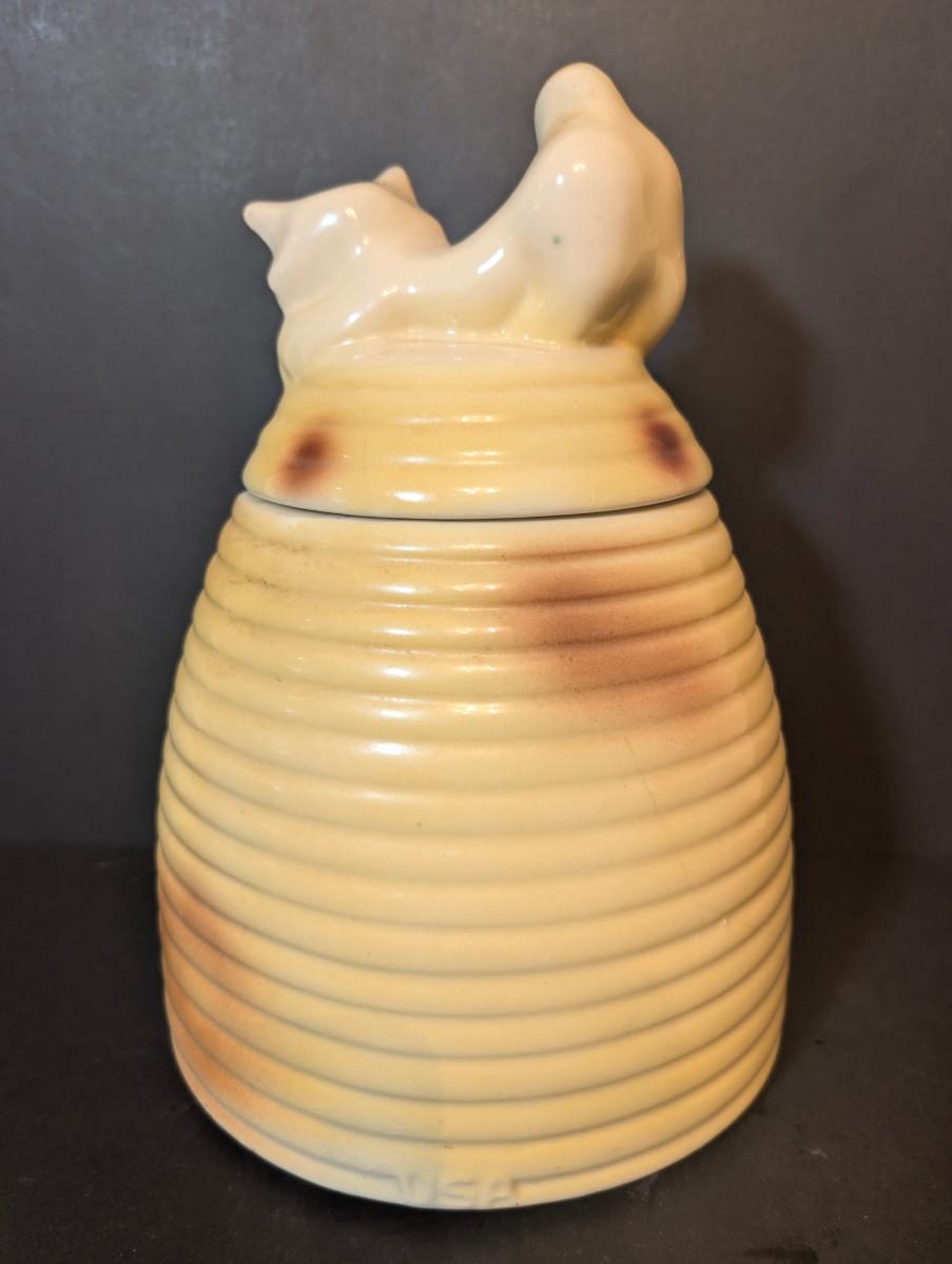 LOT 117: Vintage Made in USA Kitten on Behive Cookie Jar
