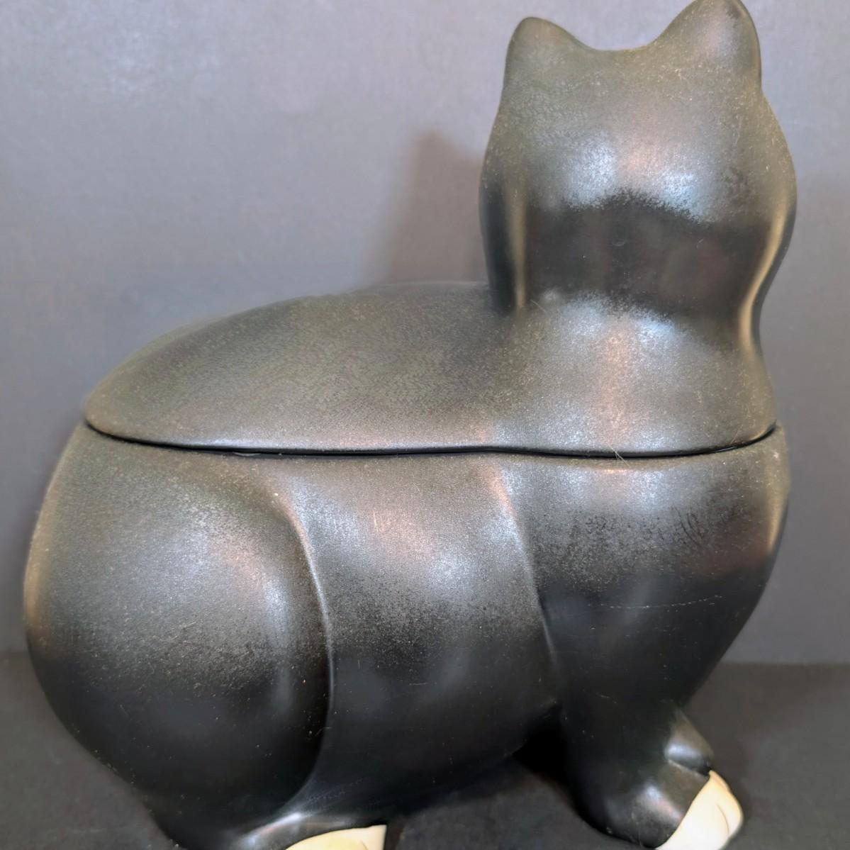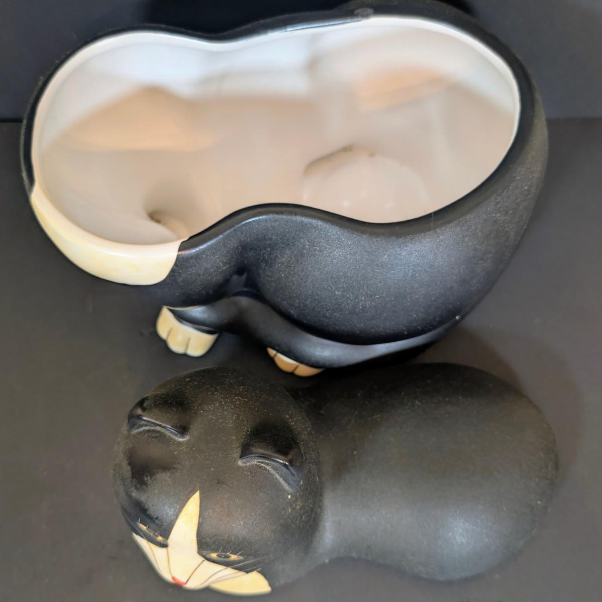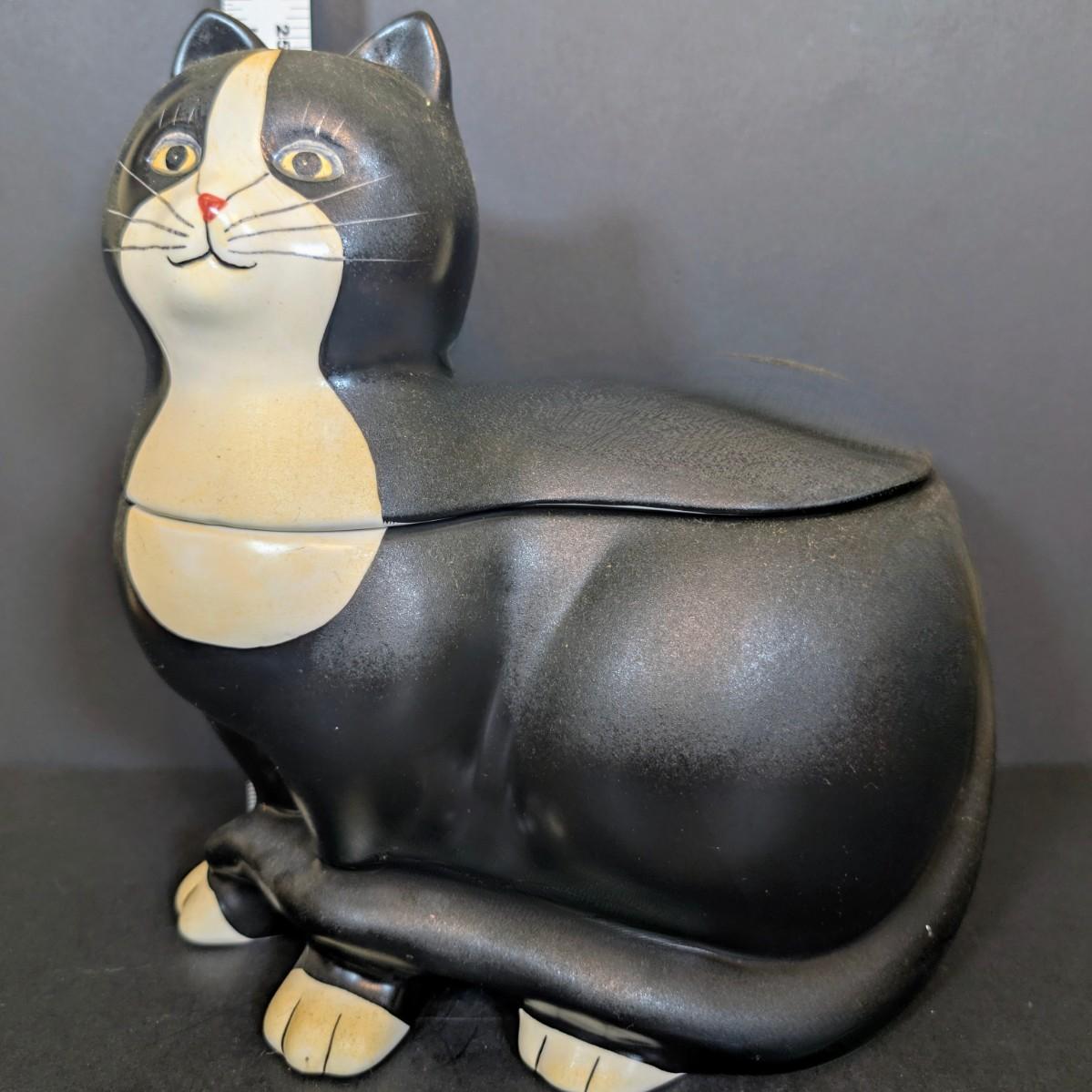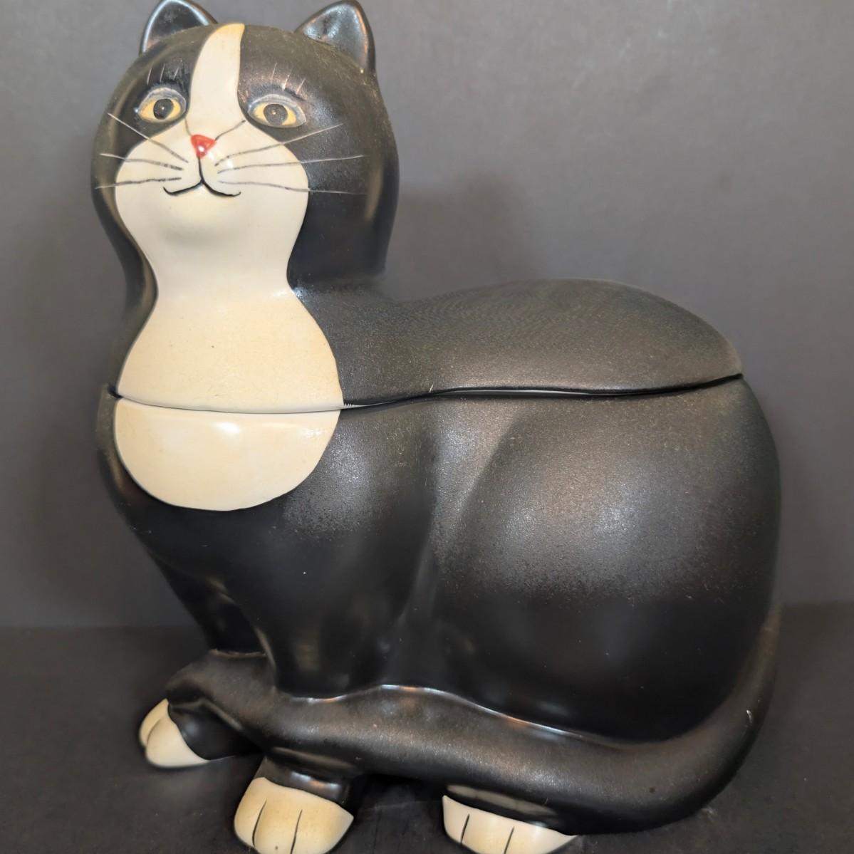 LOT 120: Sakura Warren Kimble Black & White Tuxedo Cat Cookie Jar
