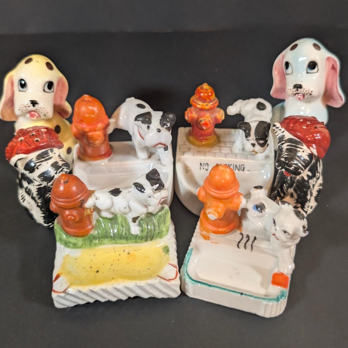 LOT 134: Vintage Made in Japan Bulldog Ashtrays/Trinket Dishes, Spotted Dog Salt/Pepper Shakers and Scottie Doa Salt/Pepper Shakers