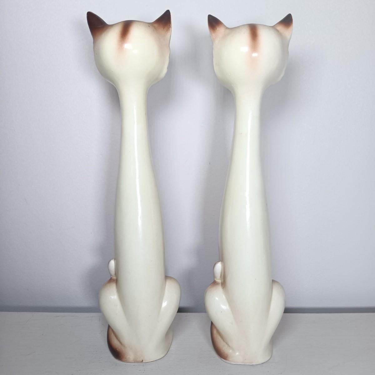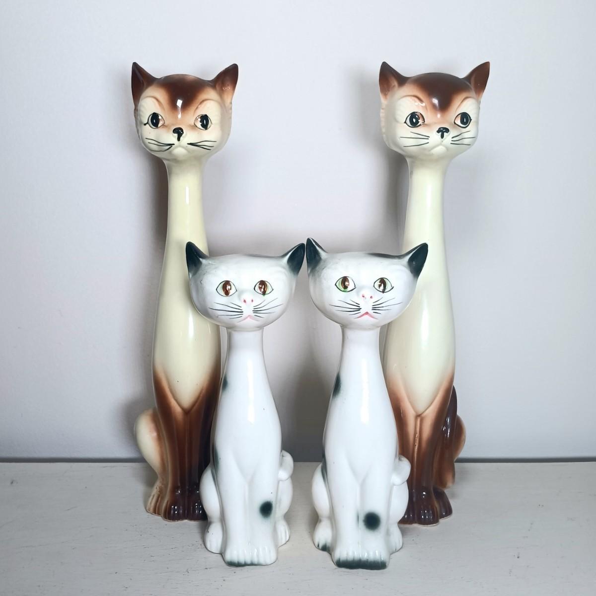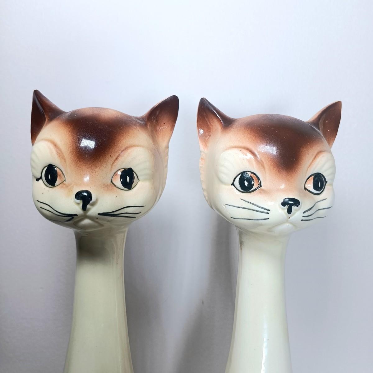 LOT 138: Japanese Long Neck Ceramic Cat Statues