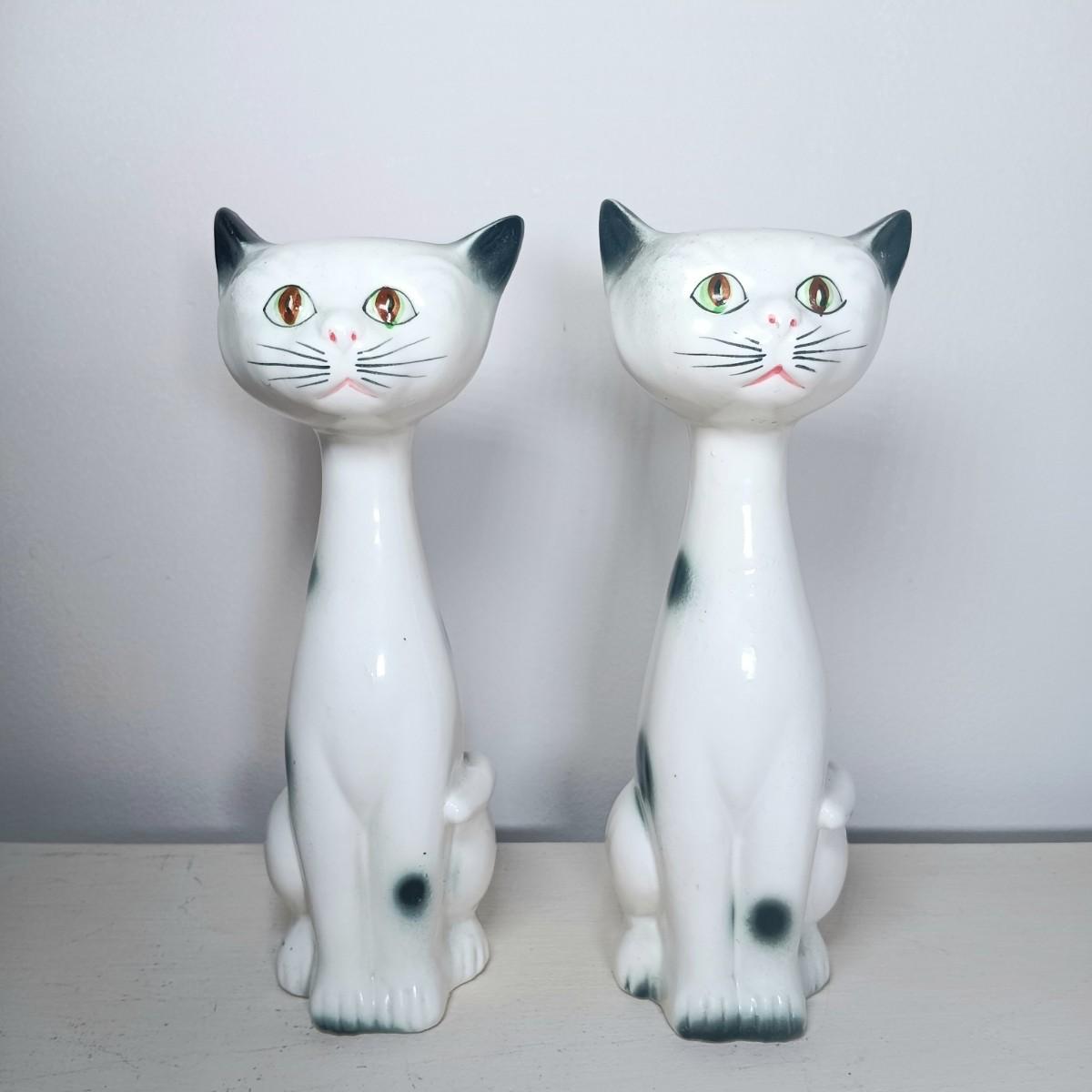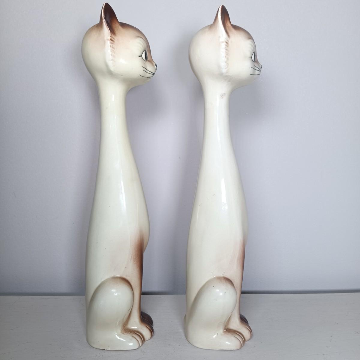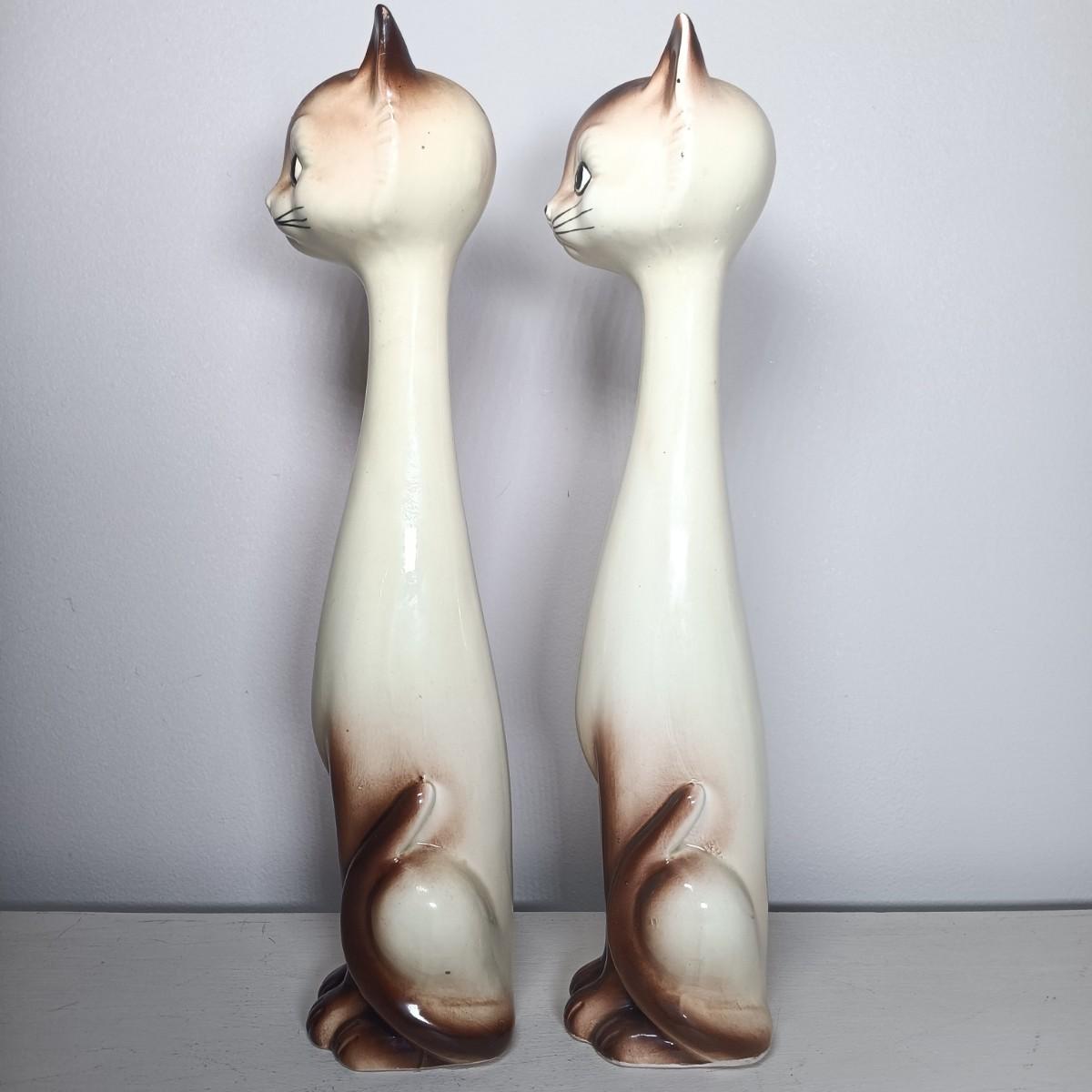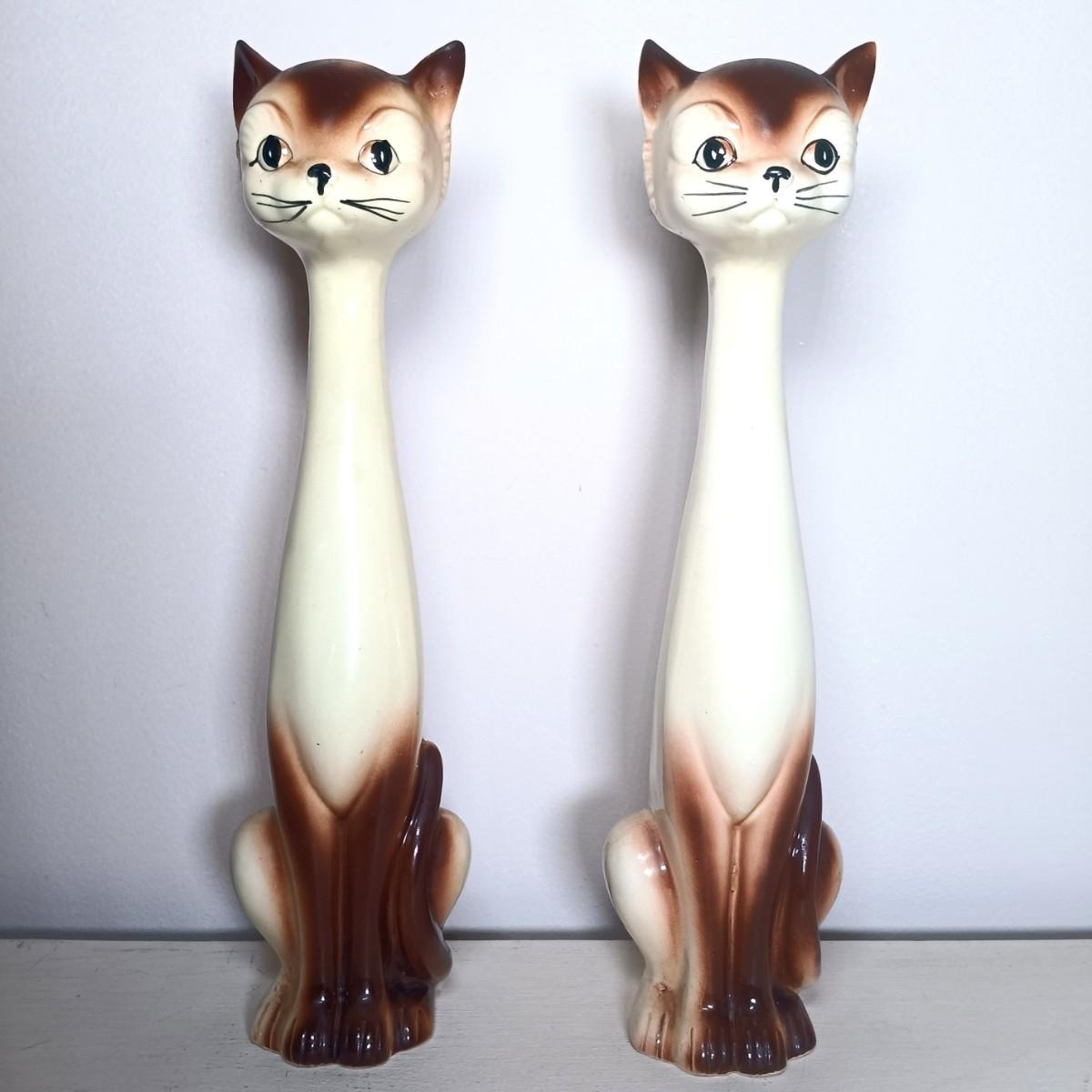LOT 138: Japanese Long Neck Ceramic Cat Statues