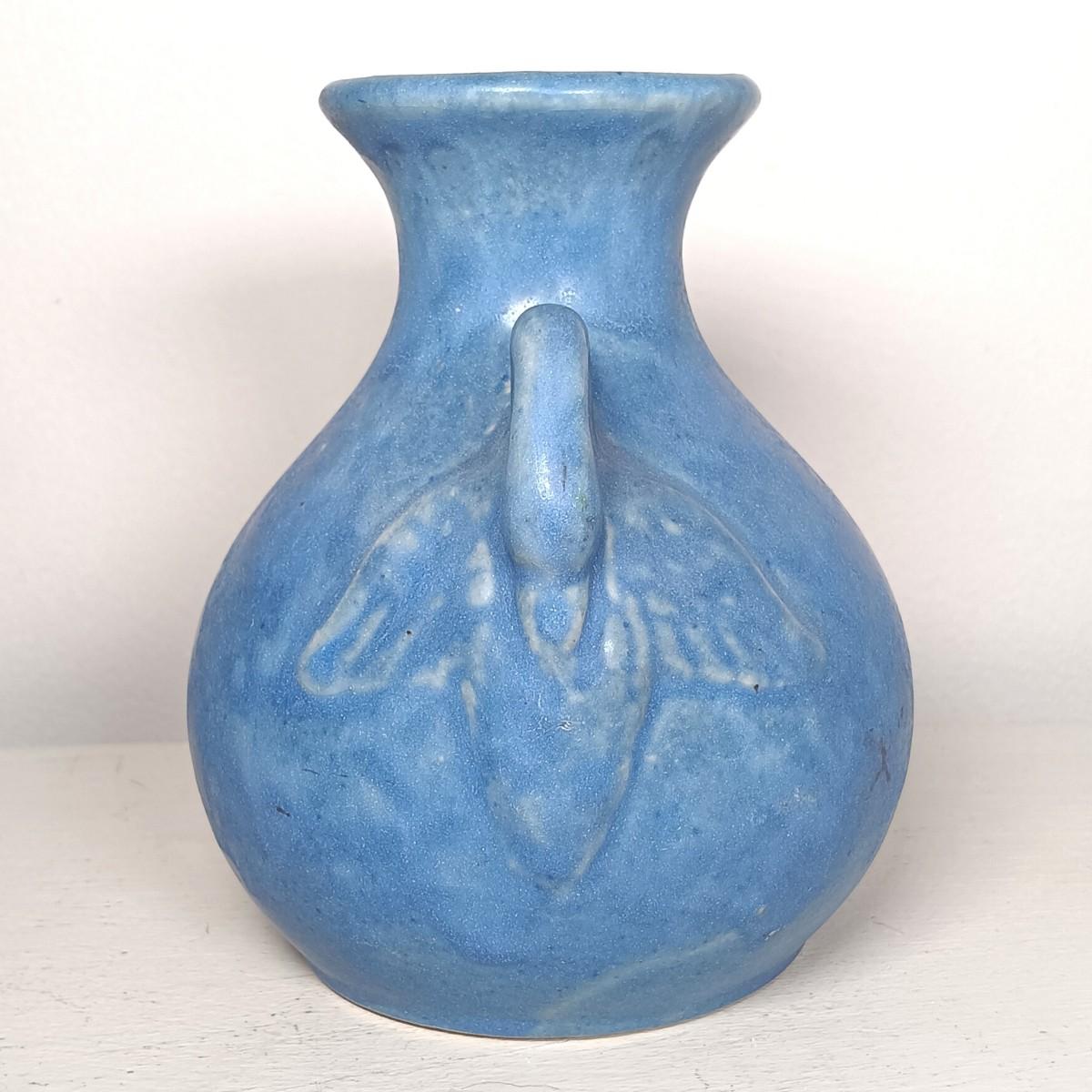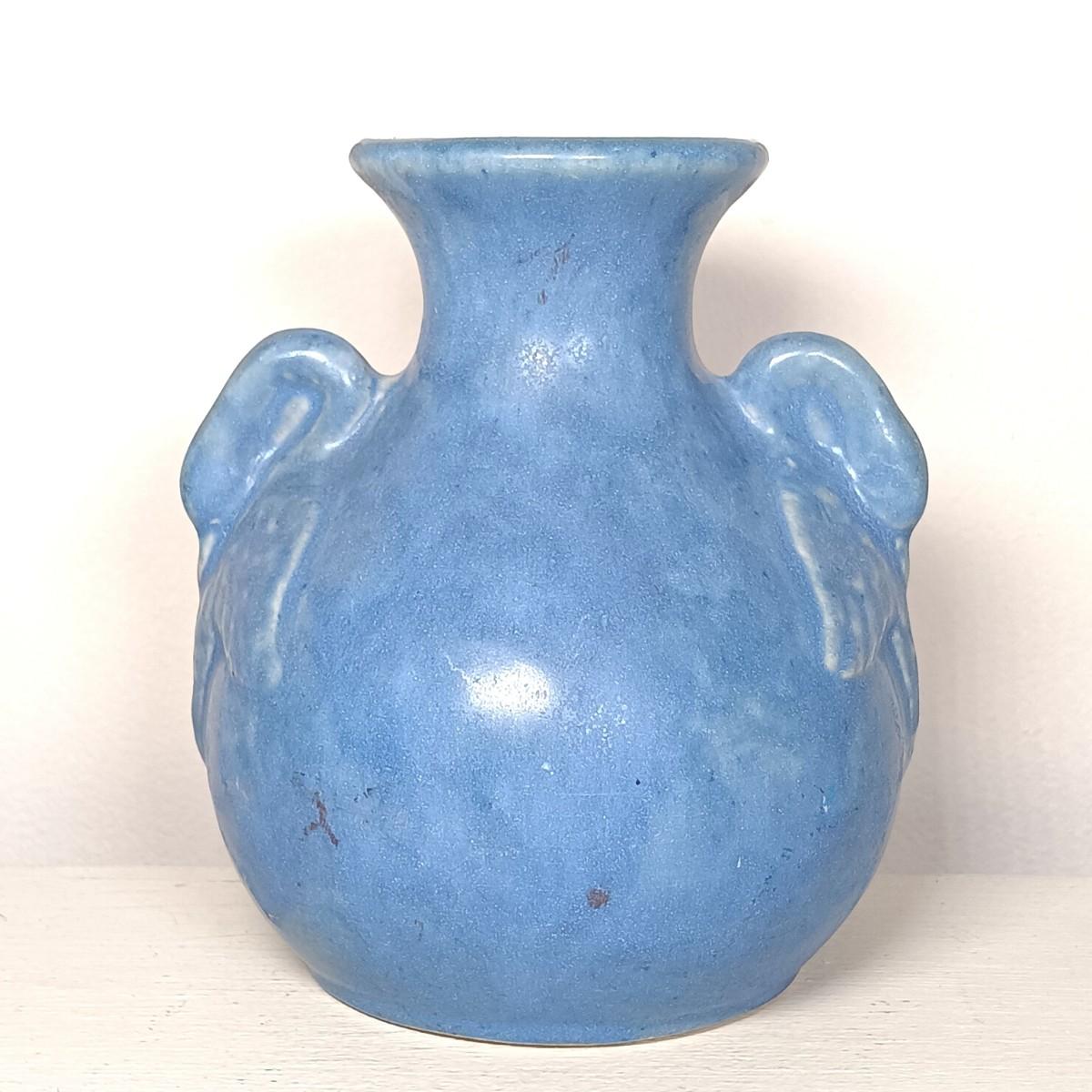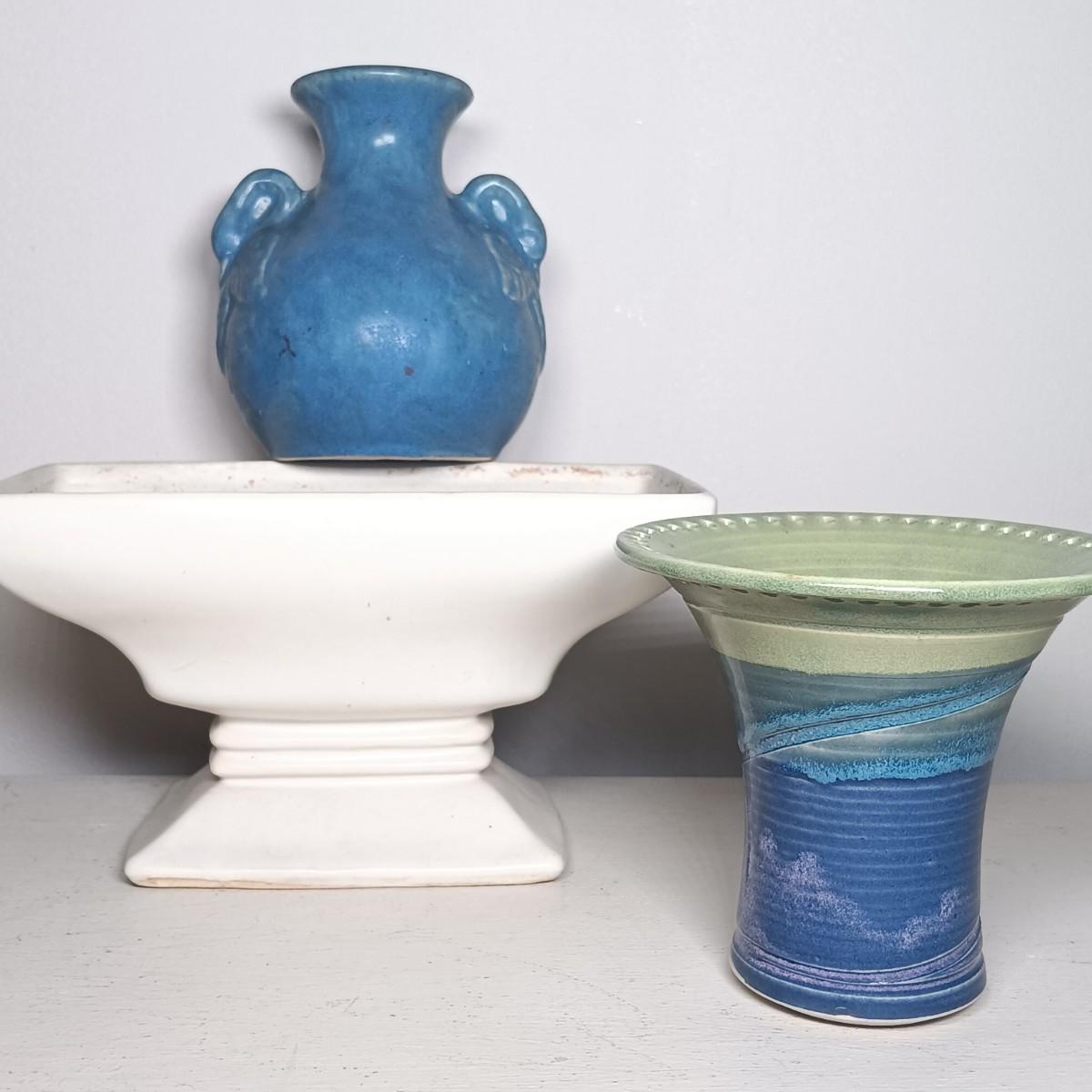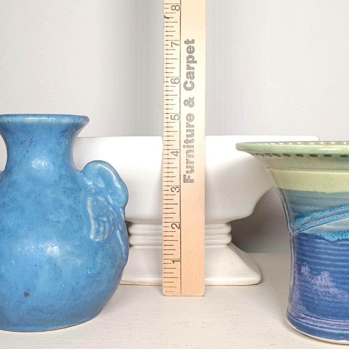 LOT 140: McCoy Pedestal Planter, Signed Earring Holder Vase & McCoy-Style Brush Pottery Swan Vase