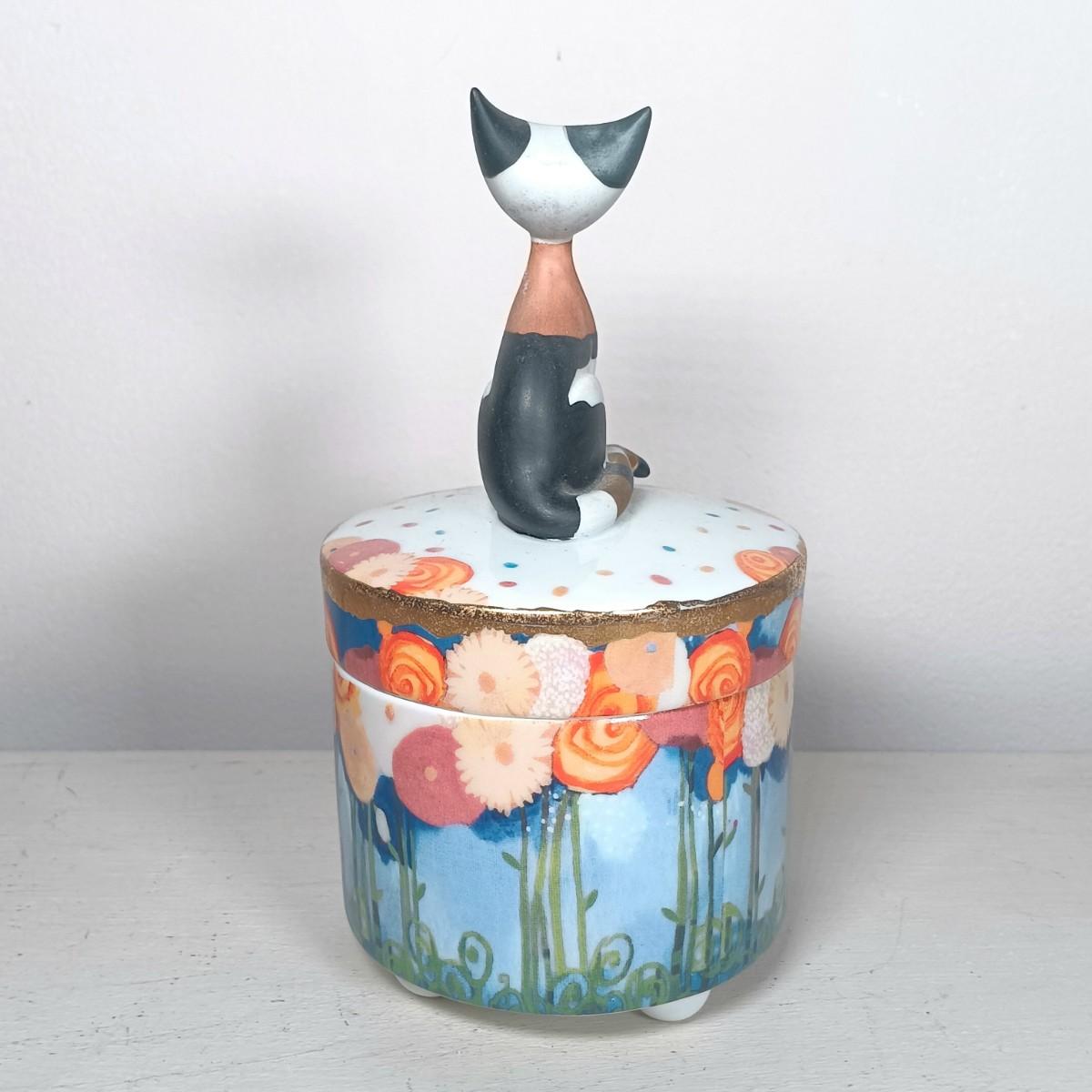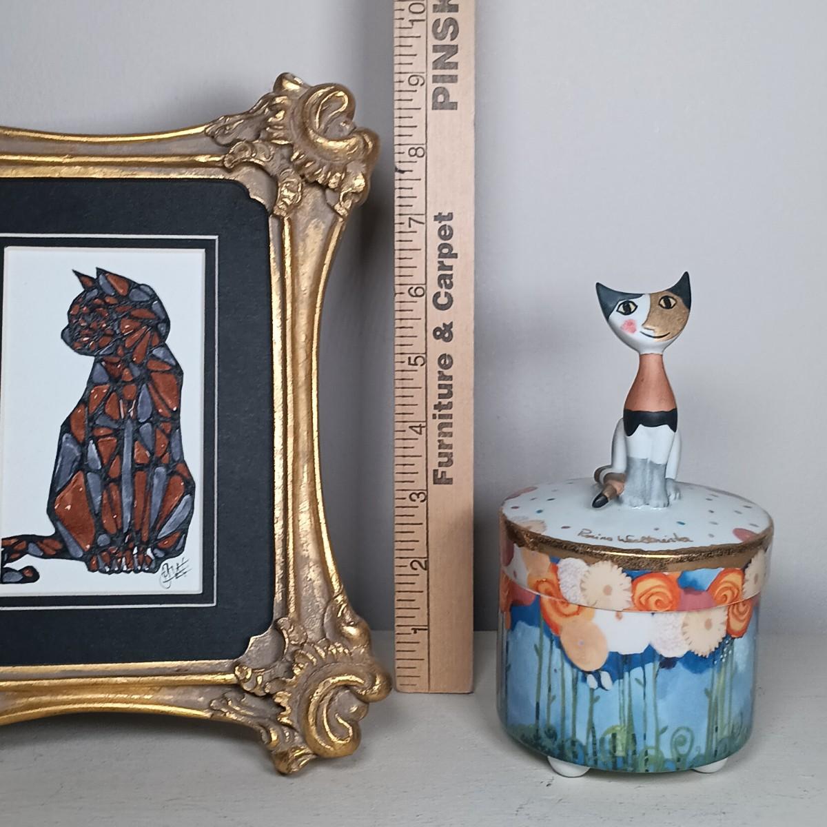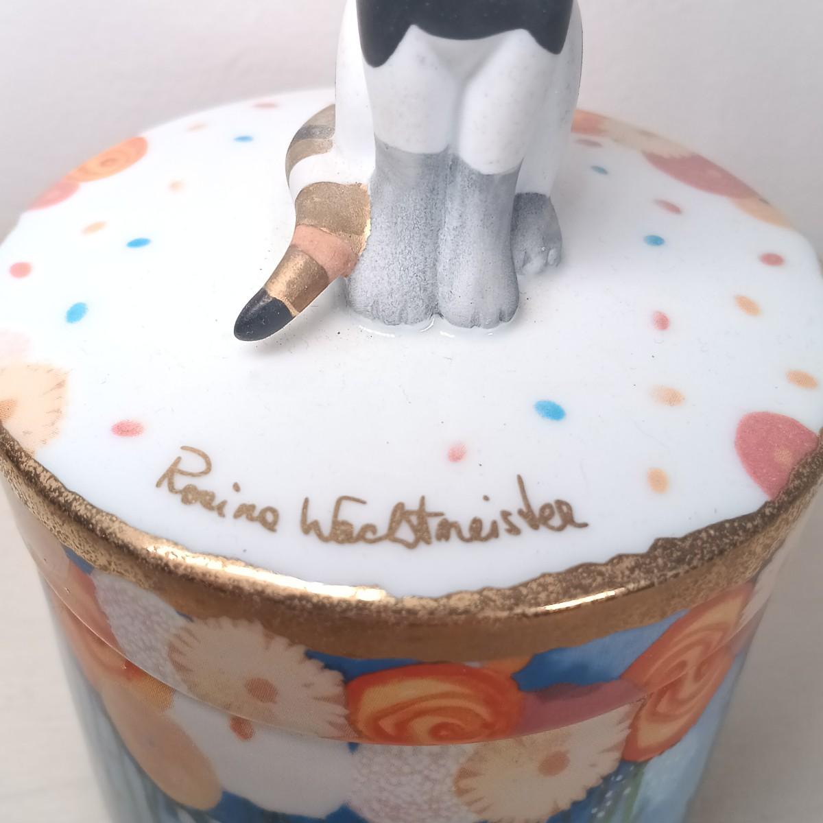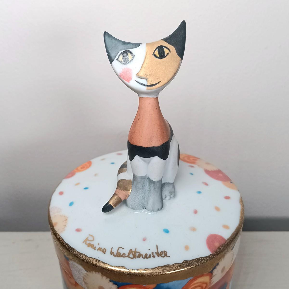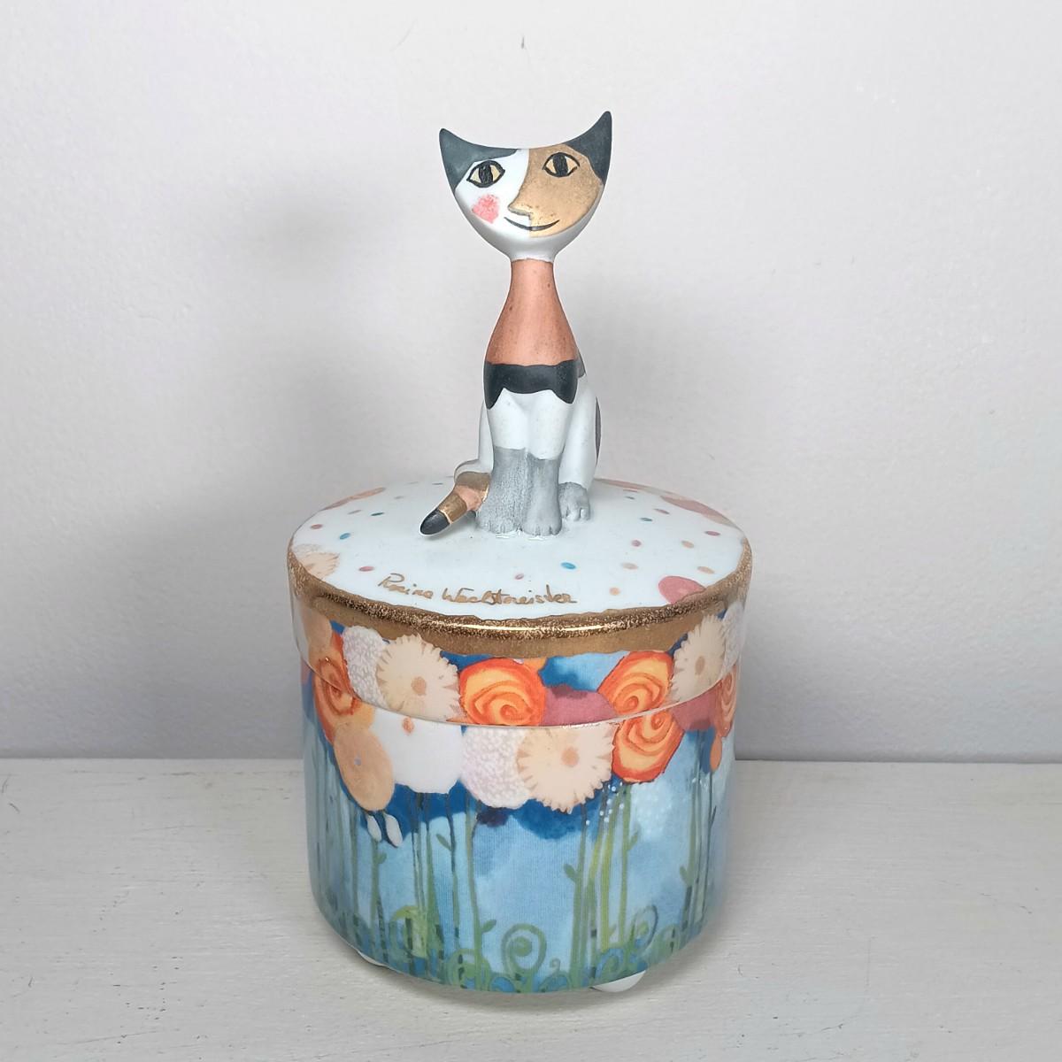 LOT 145: Signed Goebel Ceramic Cat Musical Trinket Box with Signed Cat Art