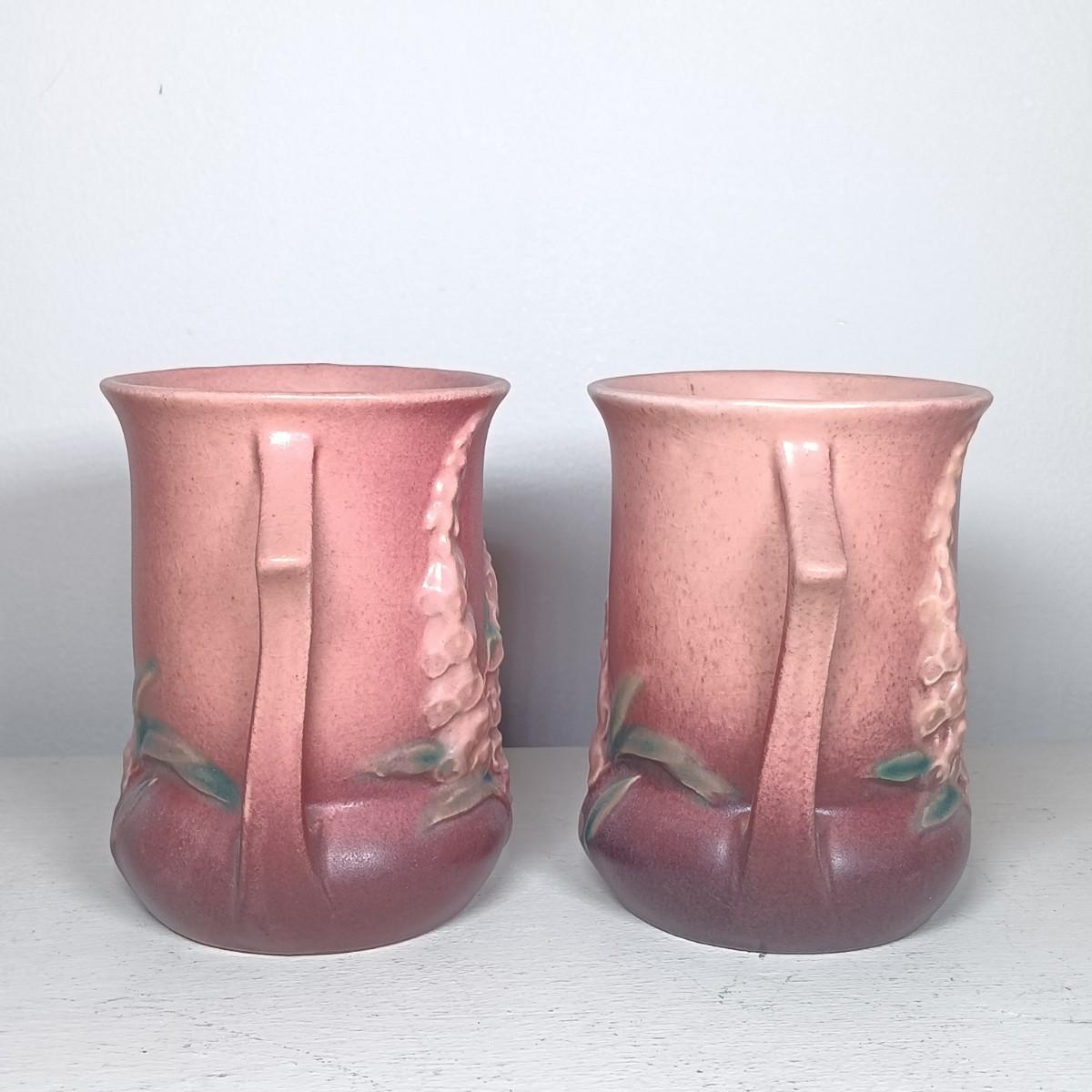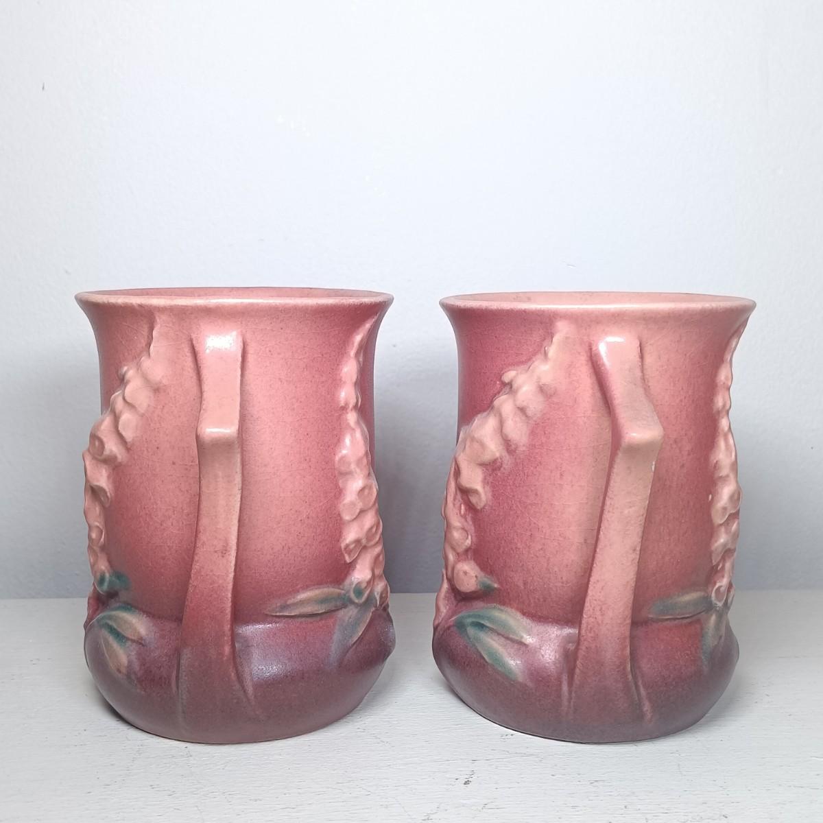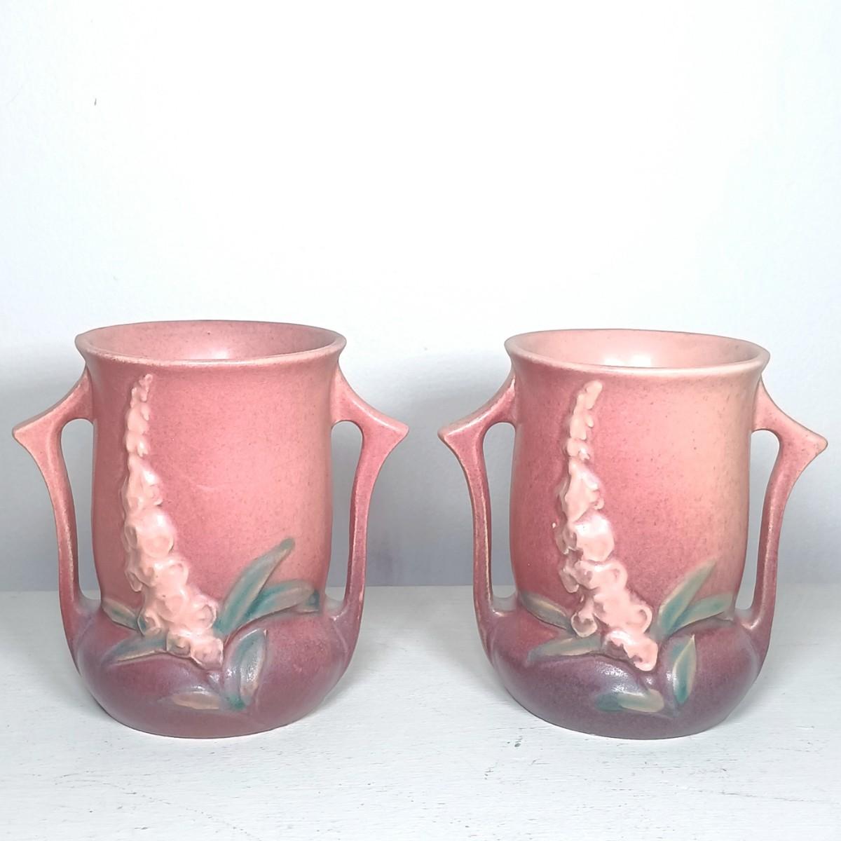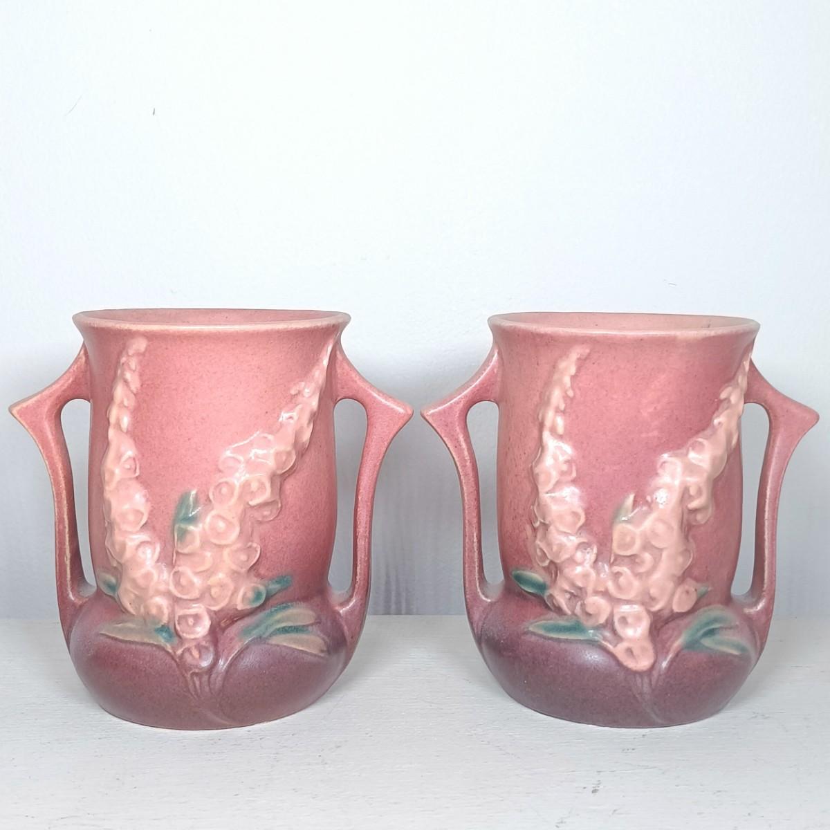 LOT 146: Pair of Roseville Pottery Foxglove Two-Handled Vases