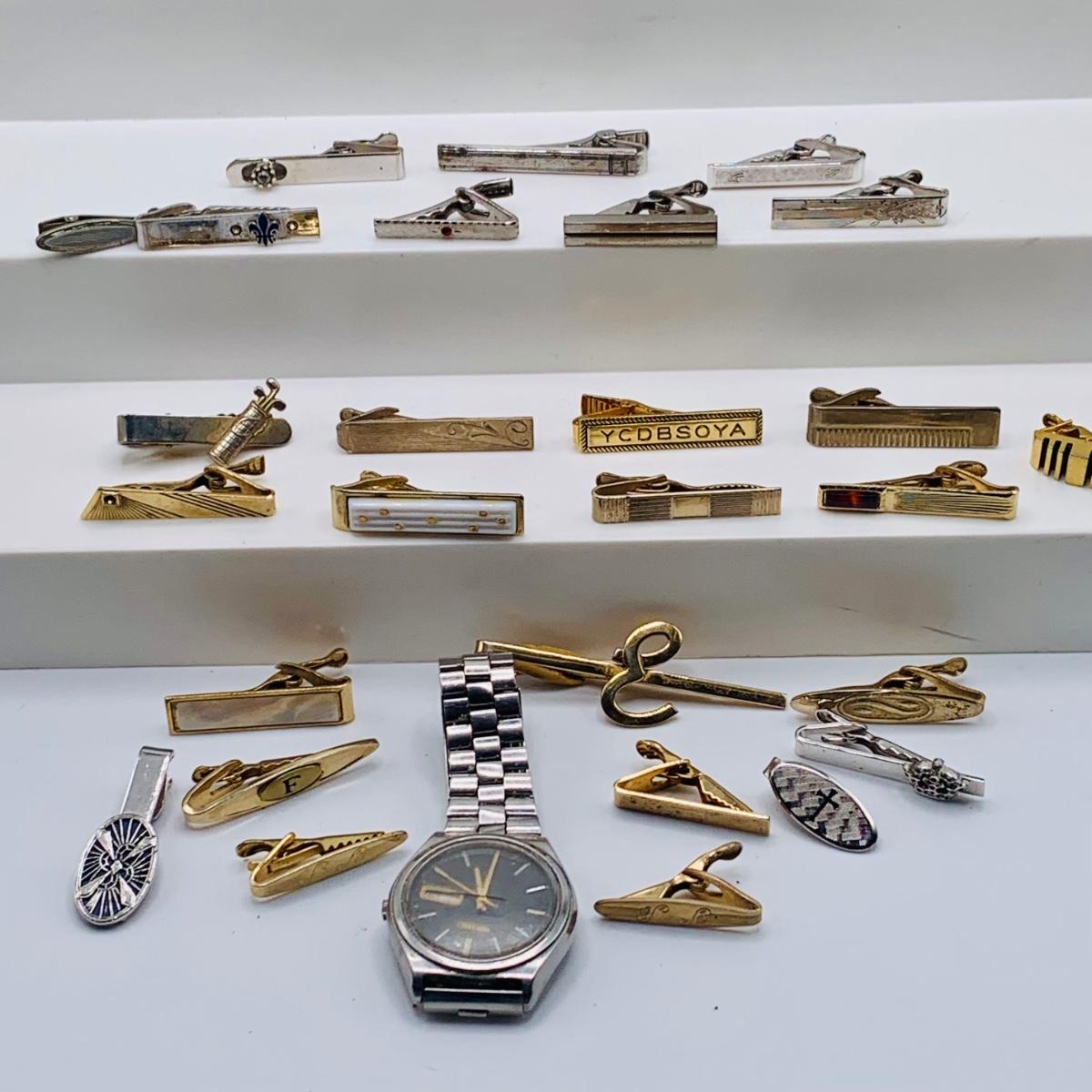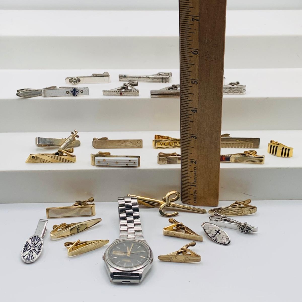 LOT 164: Large Assortment of Vintage Tie Bars and a Seiko Watch