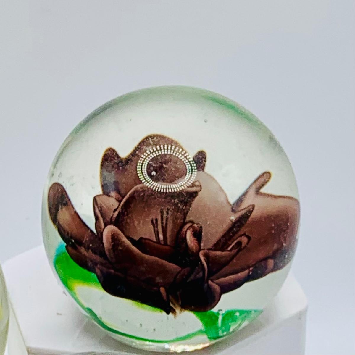 LOT 167: Collection of Art Glass Floral Pattern Paperweights and a Wheaton Brown Ribbon Paperweight
