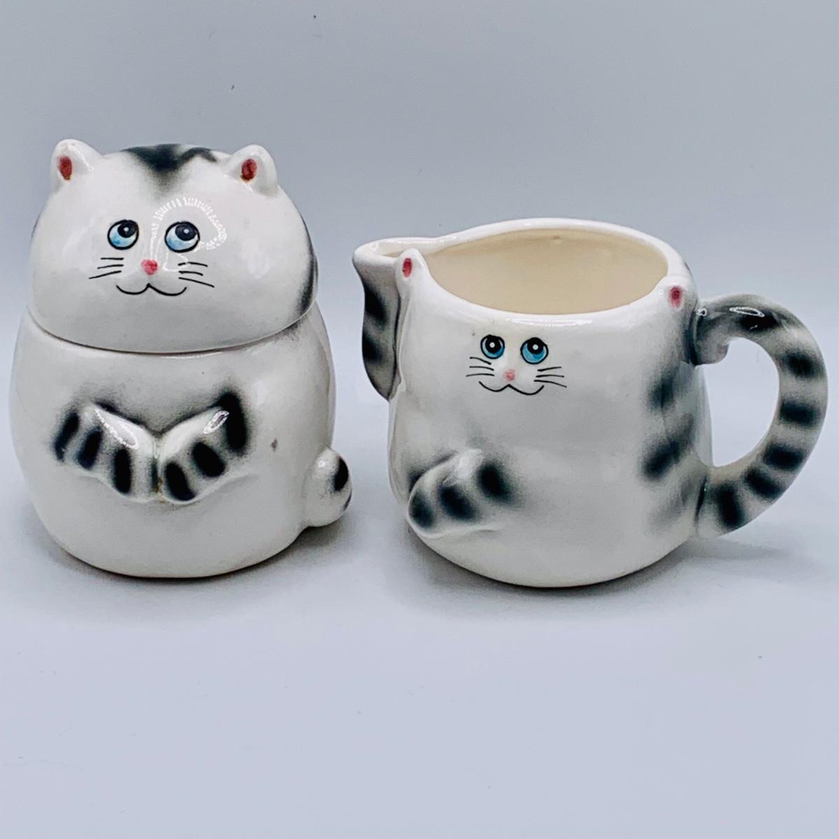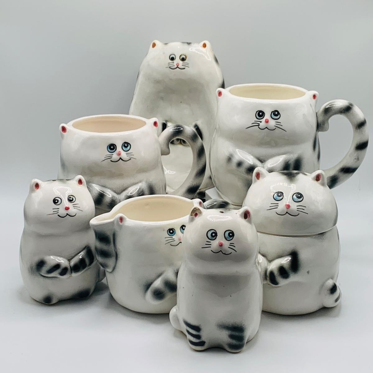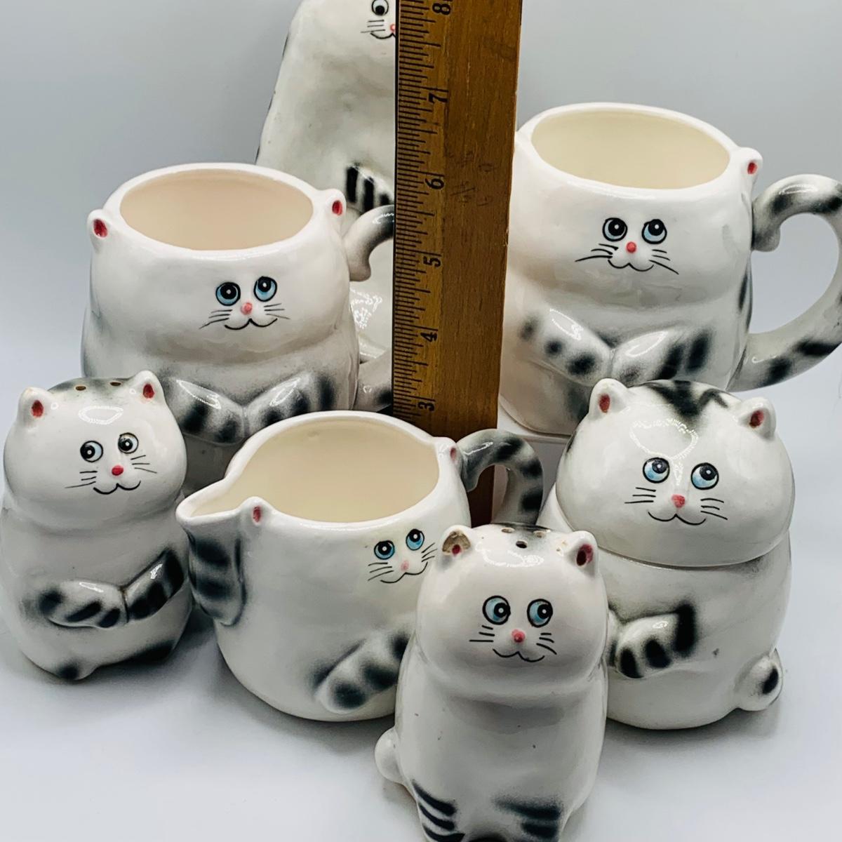 LOT 168: Adorable Lefton Kitty Cat Serving Set Including Two (2) Mugs, Salt and Pepper Shakers, Creamer and Sugar Bowl and Spoon Rest