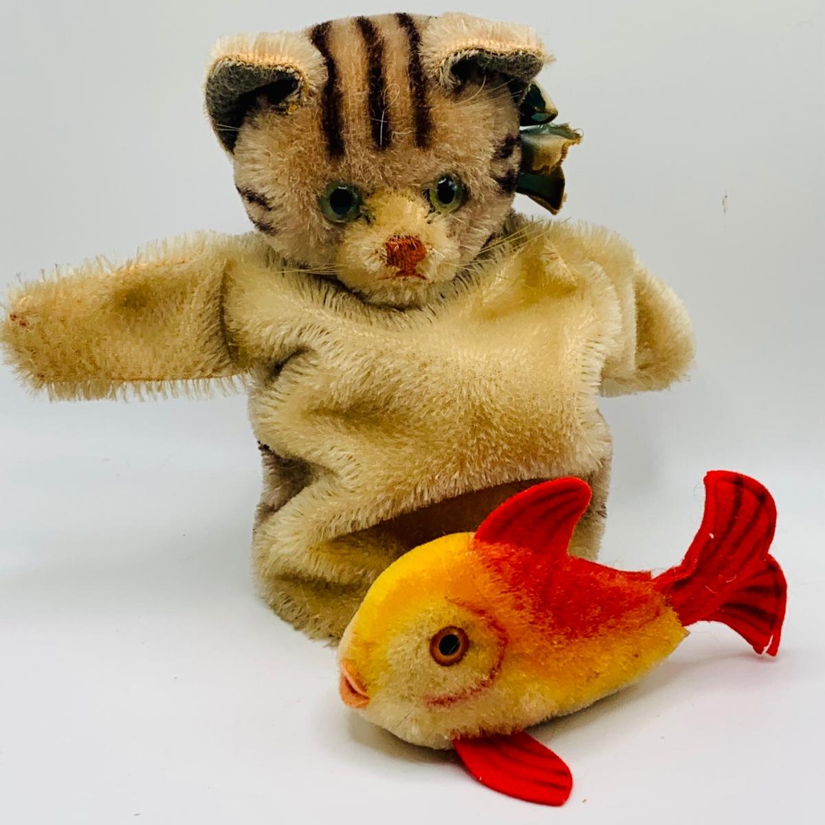 LOT 177: Vintage Steiff Cat Hand Puppet and Steiff Gold Fish Plush