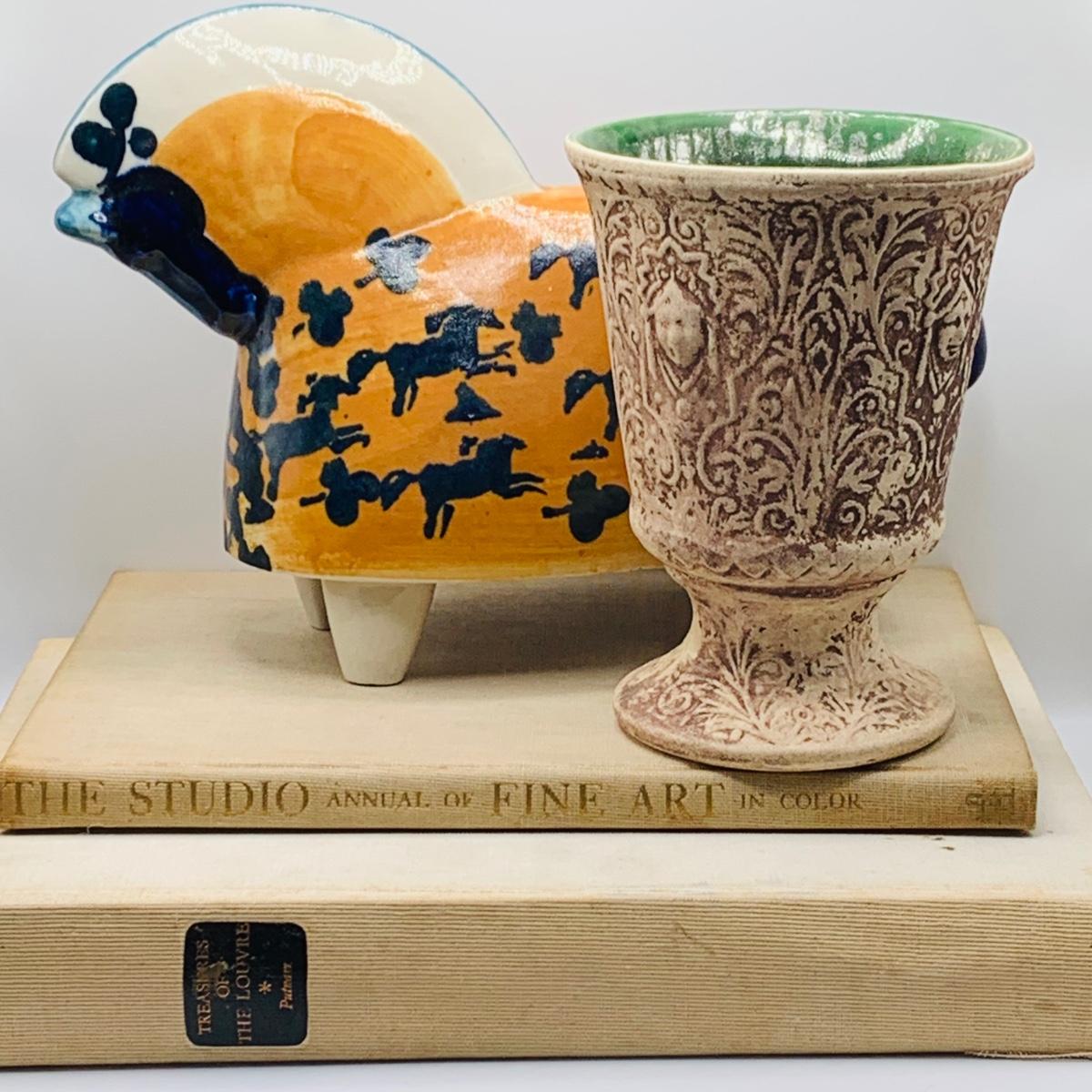 LOT 179: Timo Sarvimaki Signed Ceramic Horse and Planter and Art Books