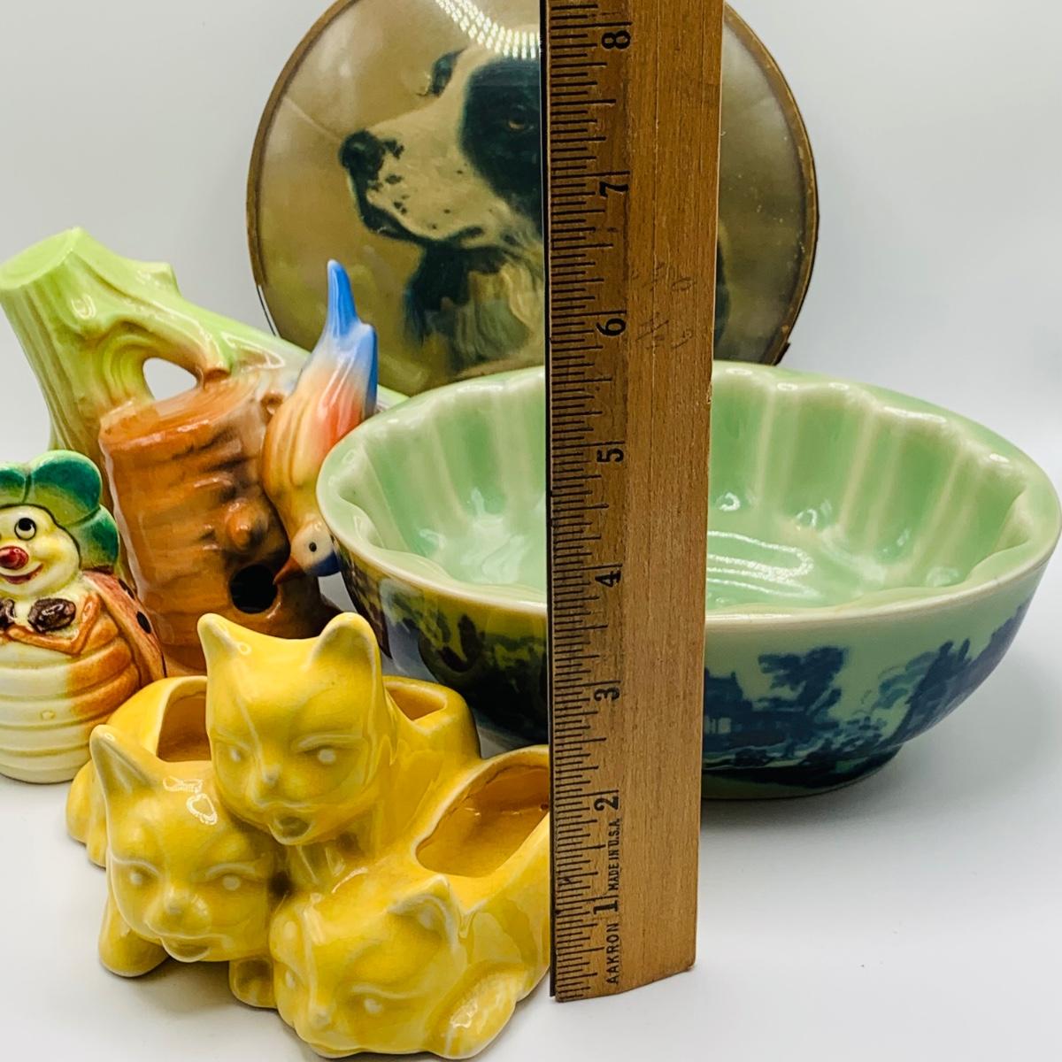 LOT 180: Victoria Ware Ironstone Bowl, Ceramic Cat Planter, Vintage Dog Picture, and Much More