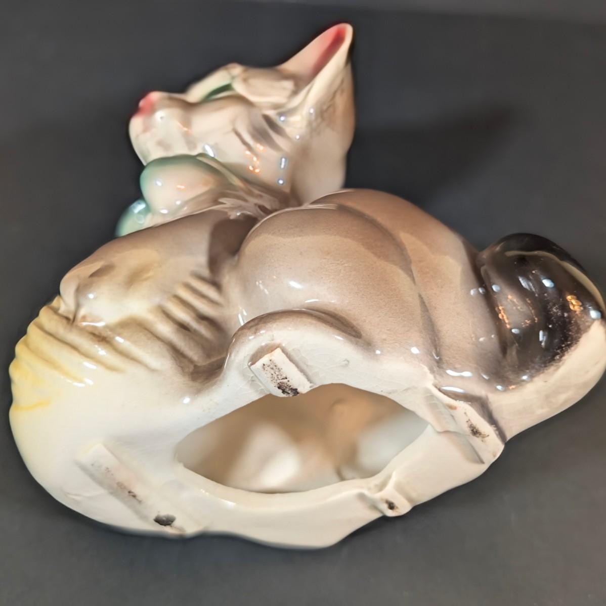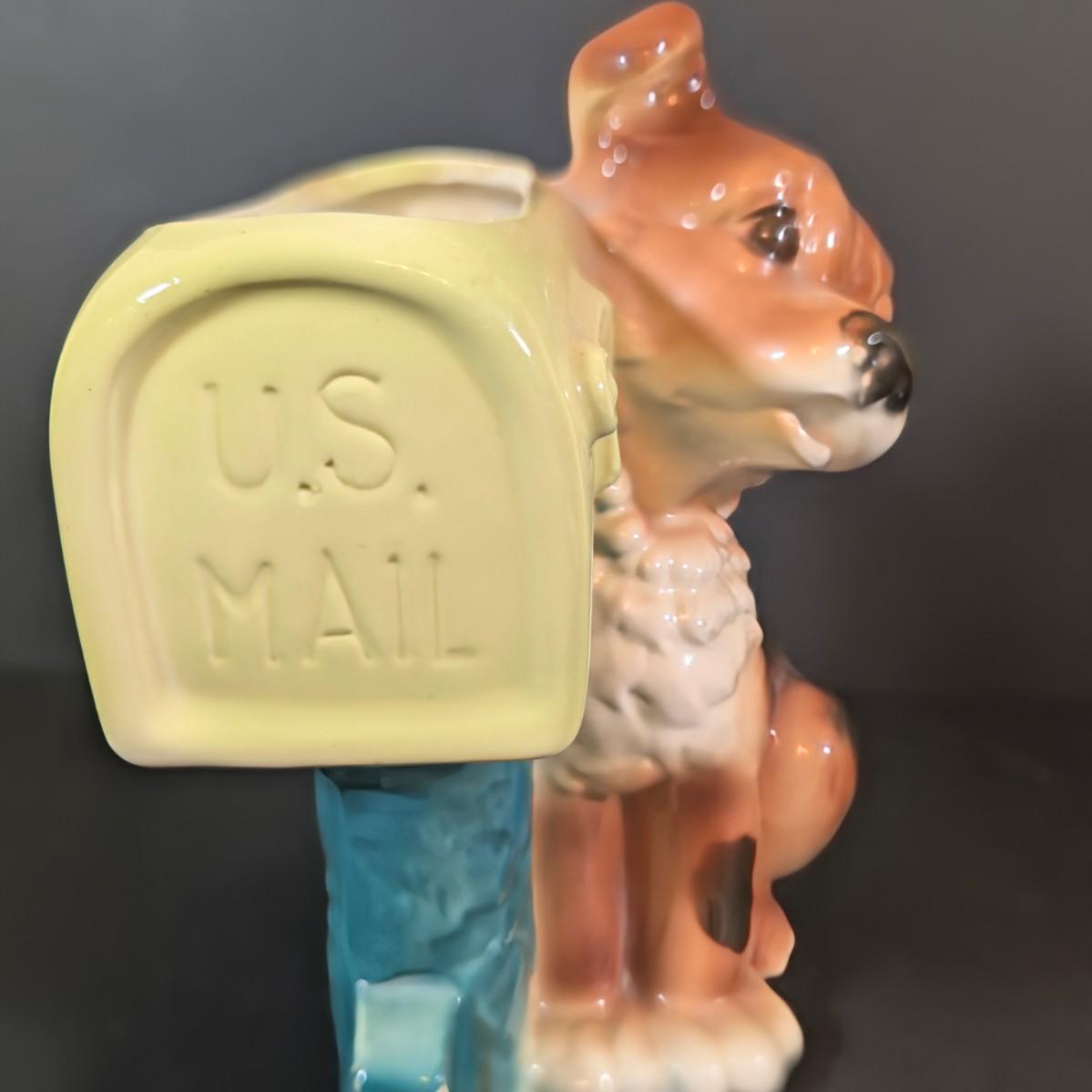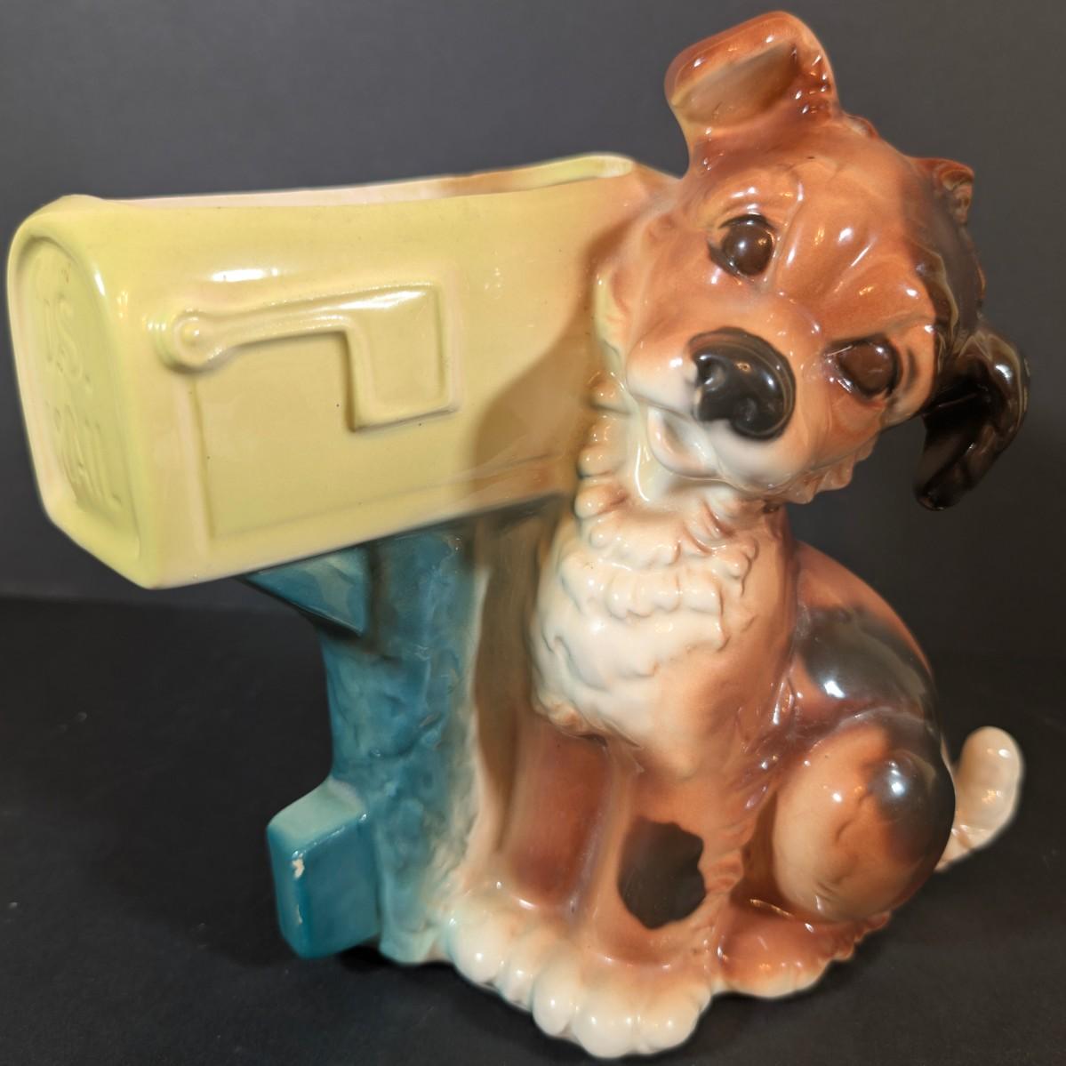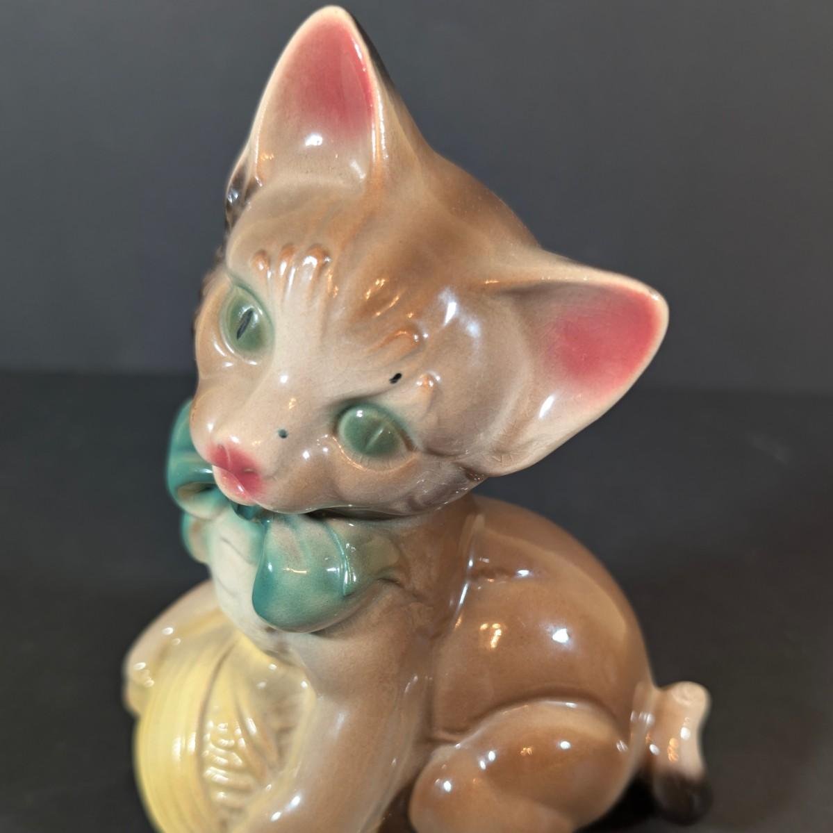 LOT 192: Vintage Doggie w/Mailbox Planter, Kitten w/Ball of Yarn Figure, and 2 Kitty Air Diffusers or Catus Planters