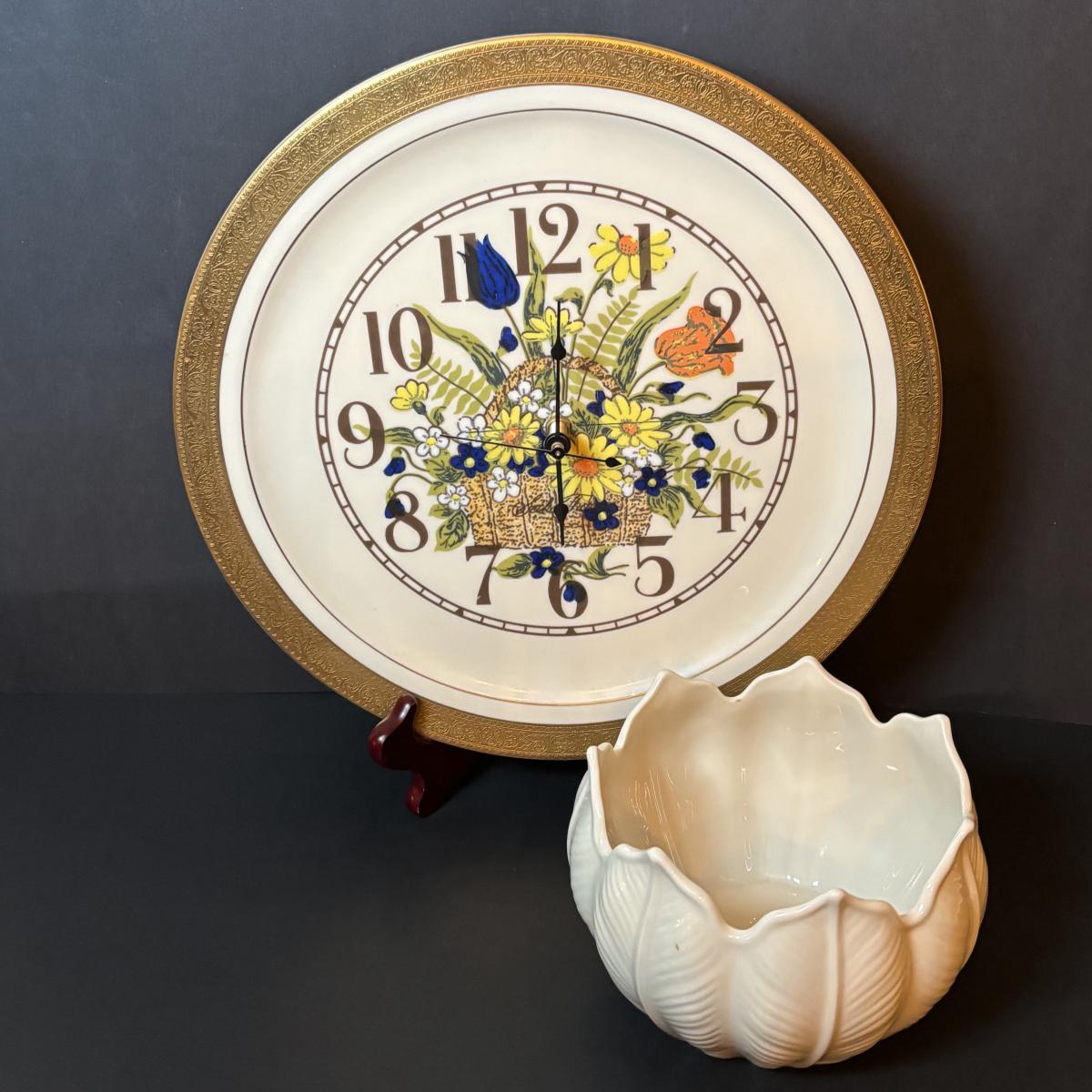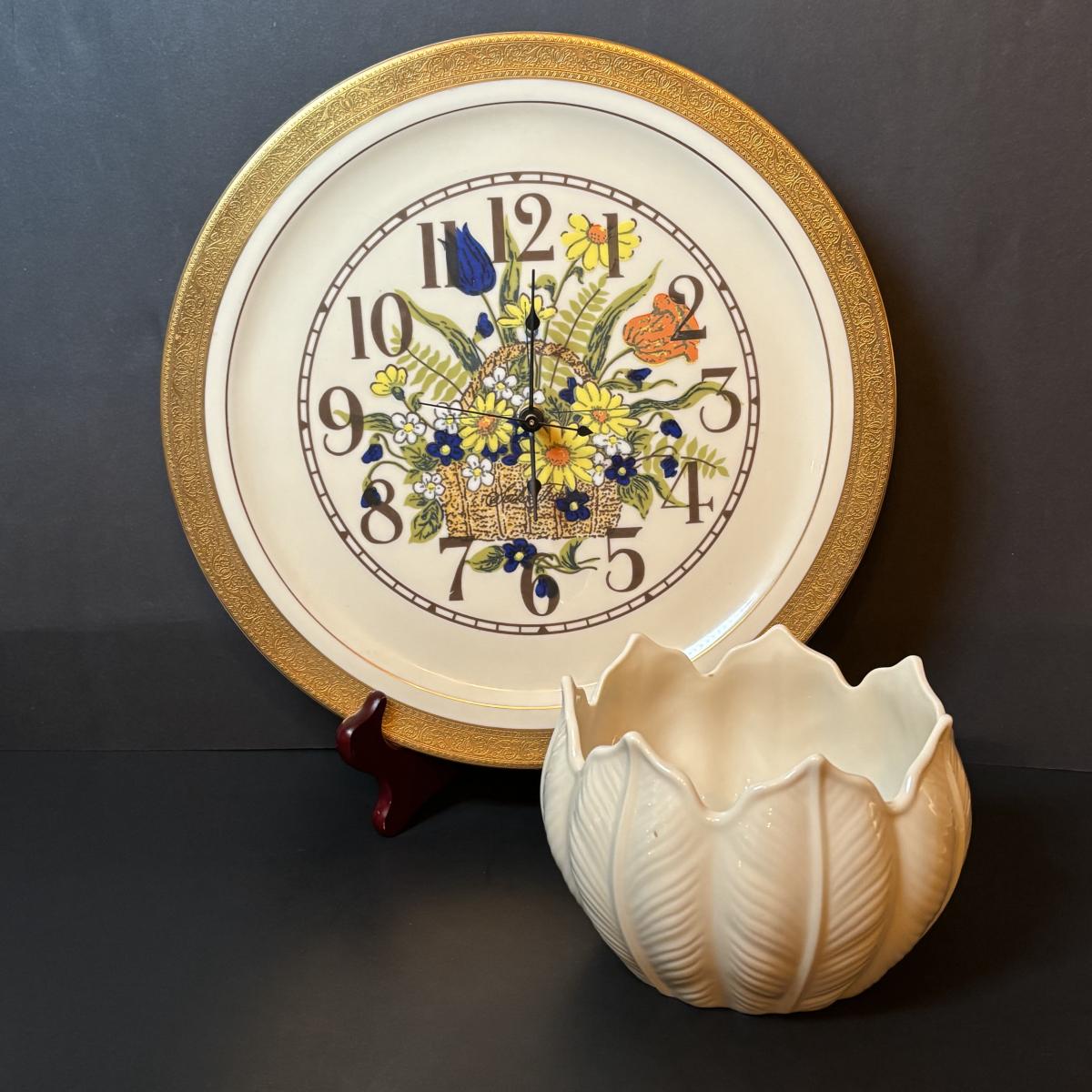 LOT 100: Unique Lenox "Plate" Wall Clock & Palmetto Bowl