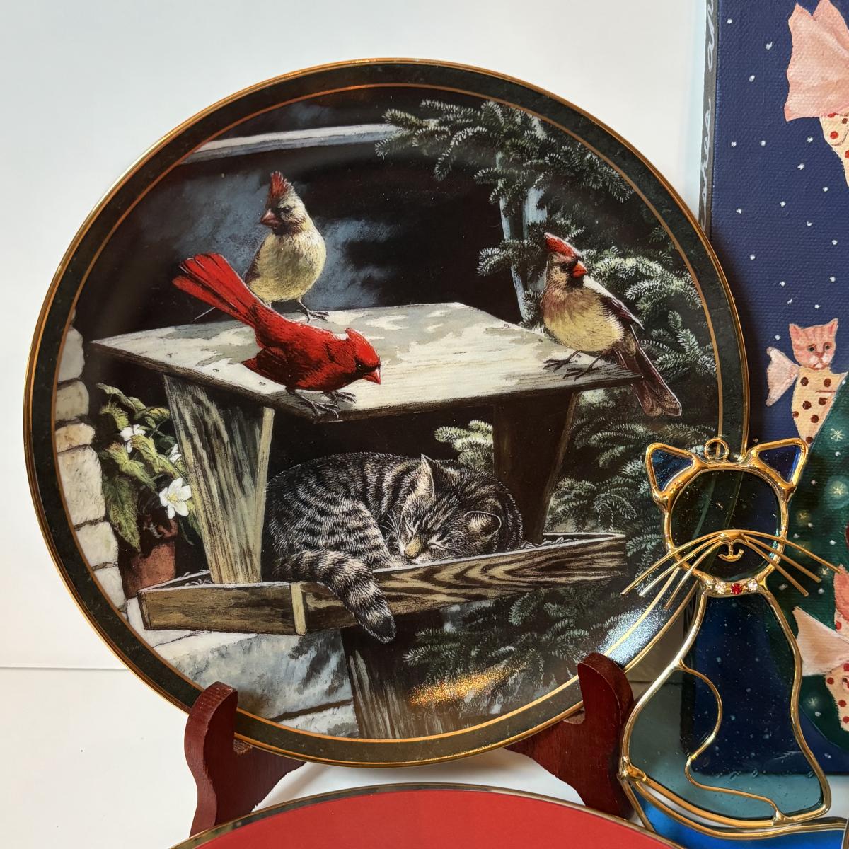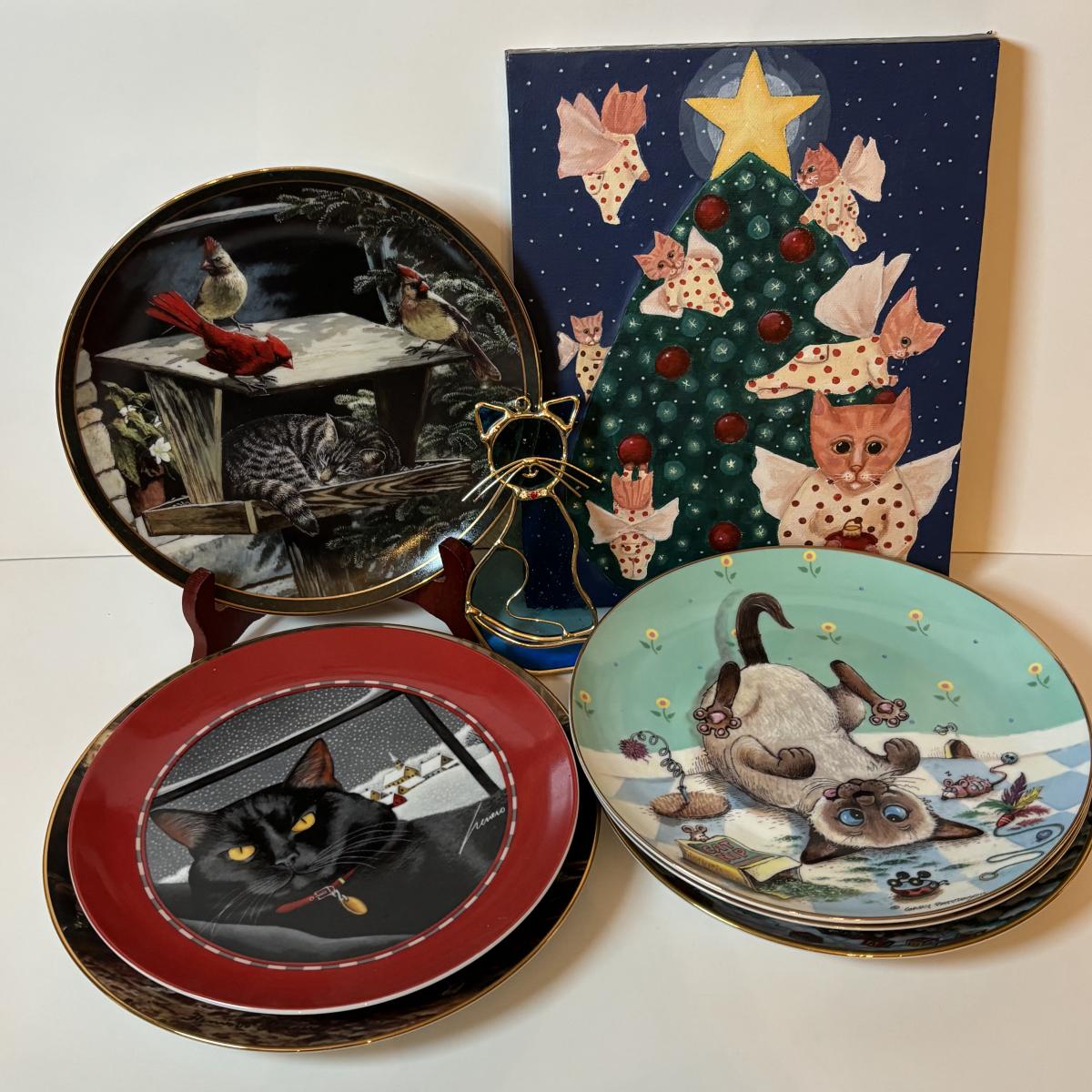 LOT 219: Here Kitty! Collection of Danbury Mint, Franklin Mint, Bradford Exhange Plates, Suncatcher & Painting: