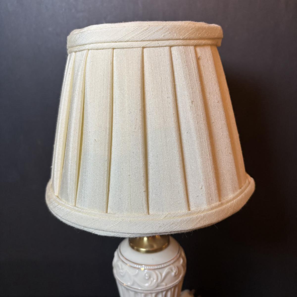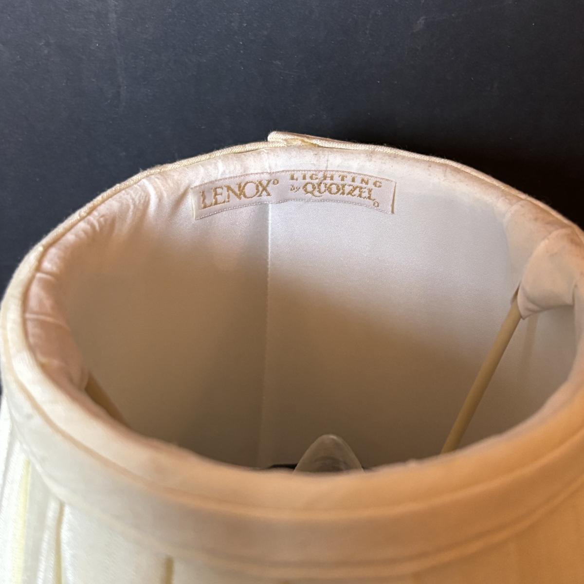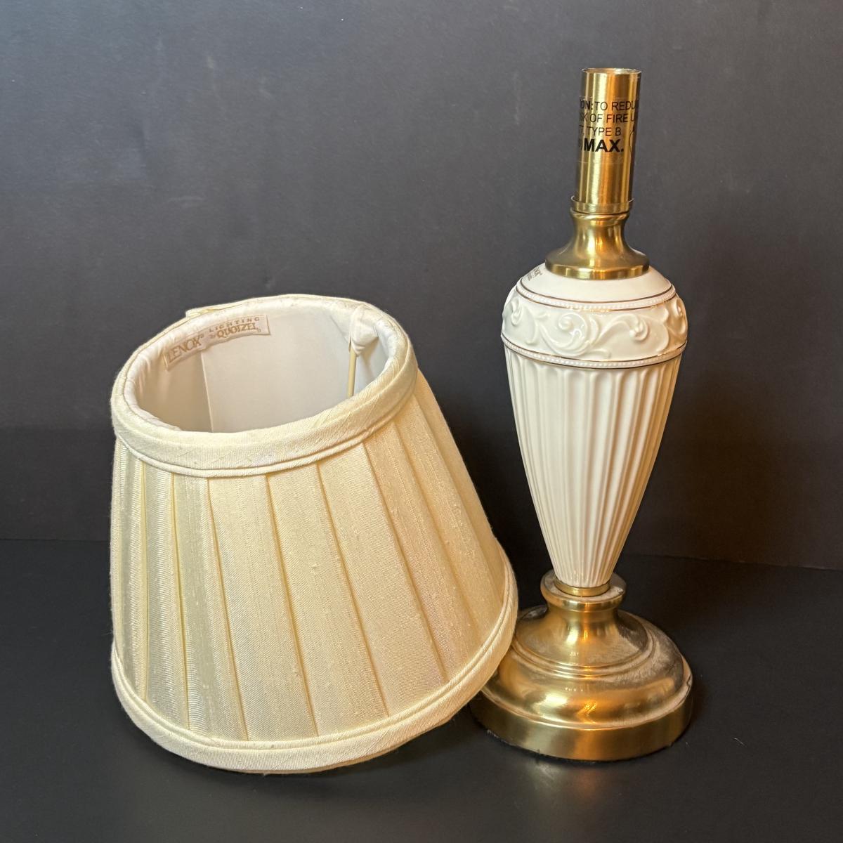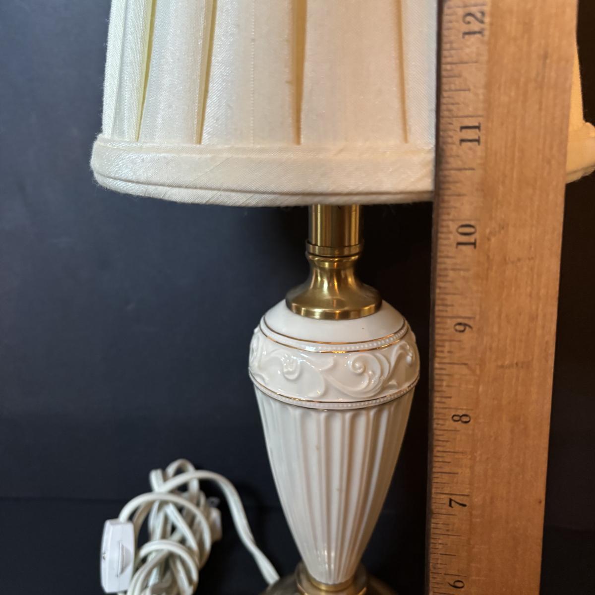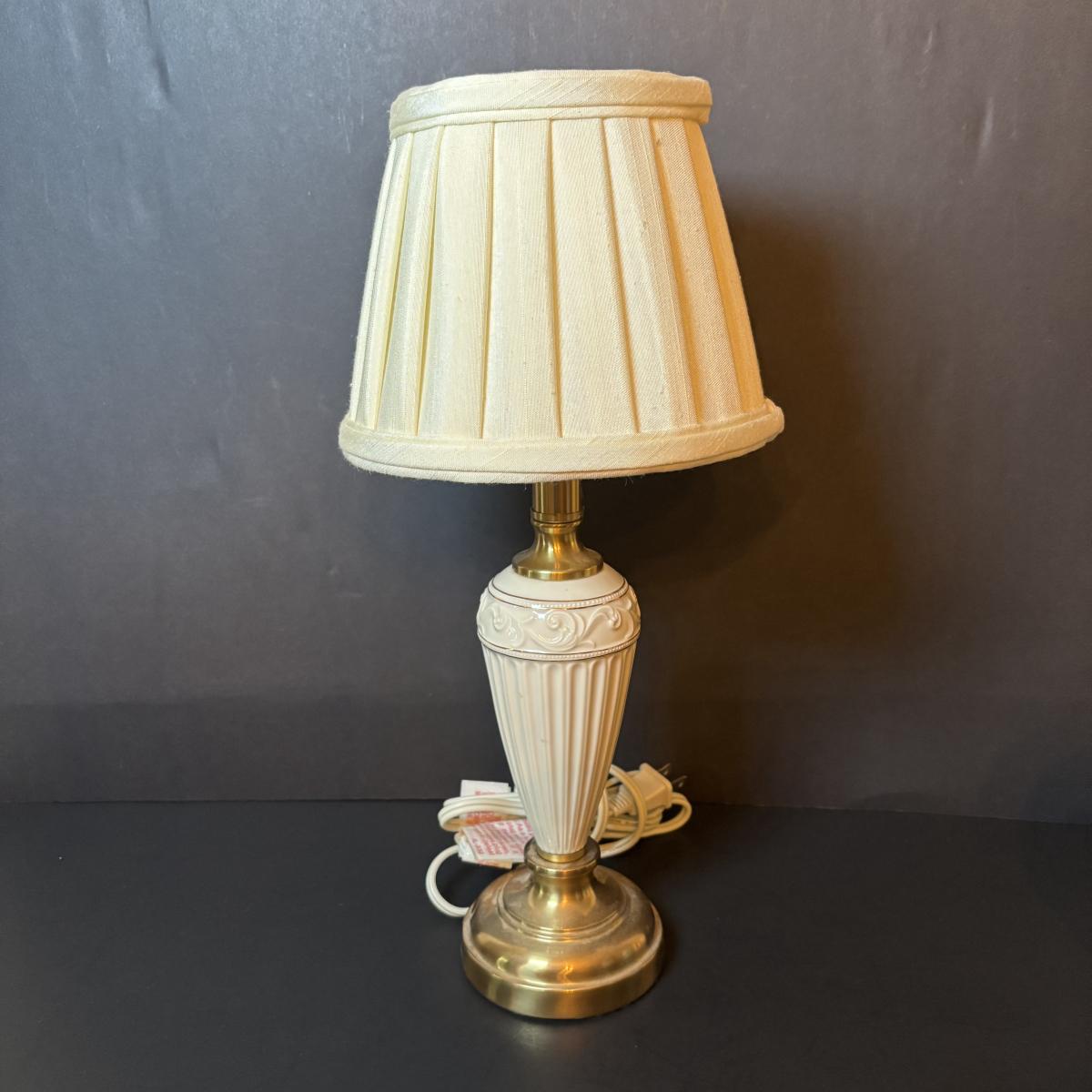 LOT 223: Lenox Accent Lamp, Carved Tea Light Lamps/Set of 2 and Pedestal Candy Bowl