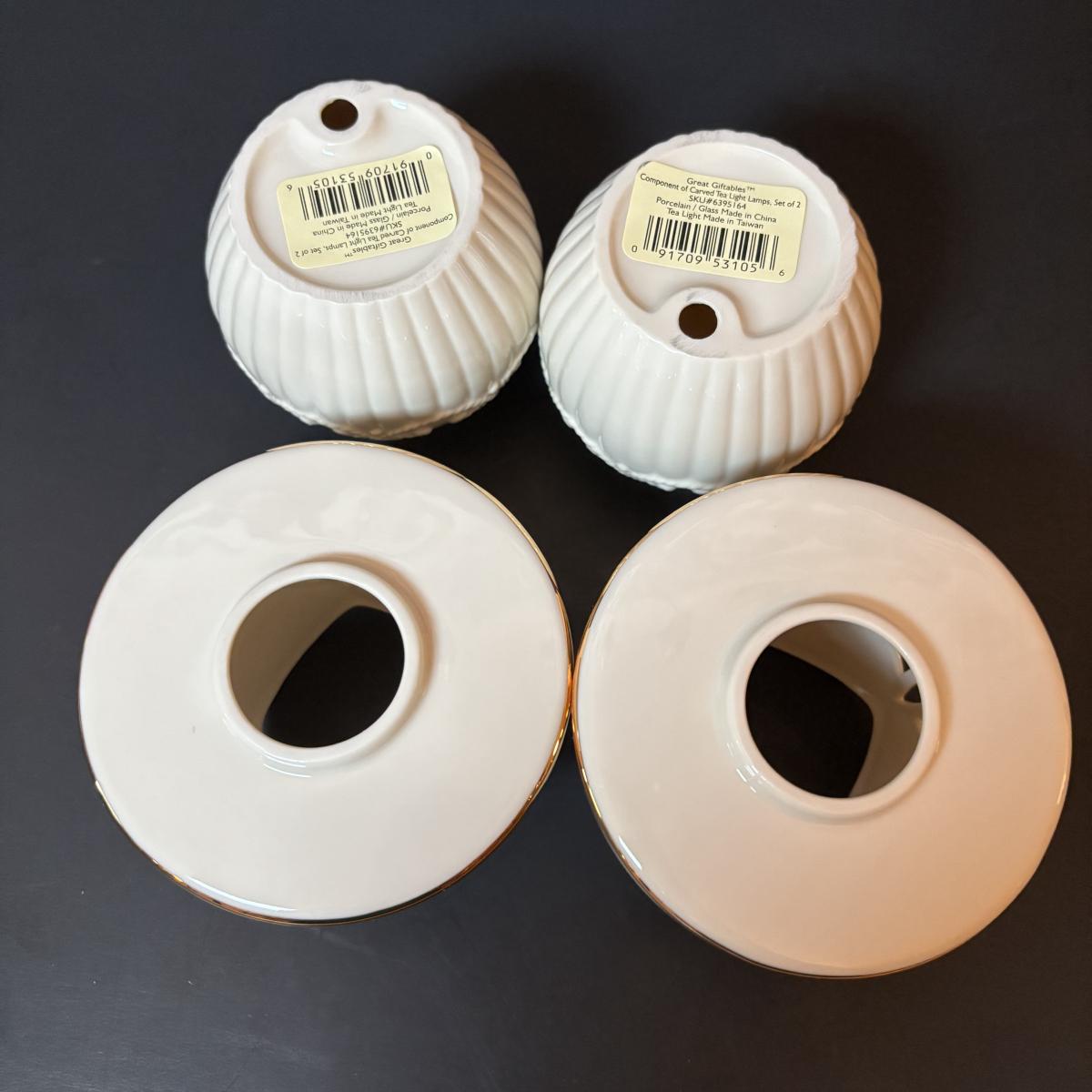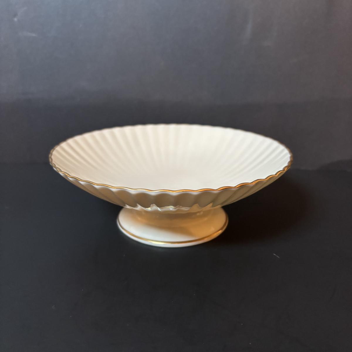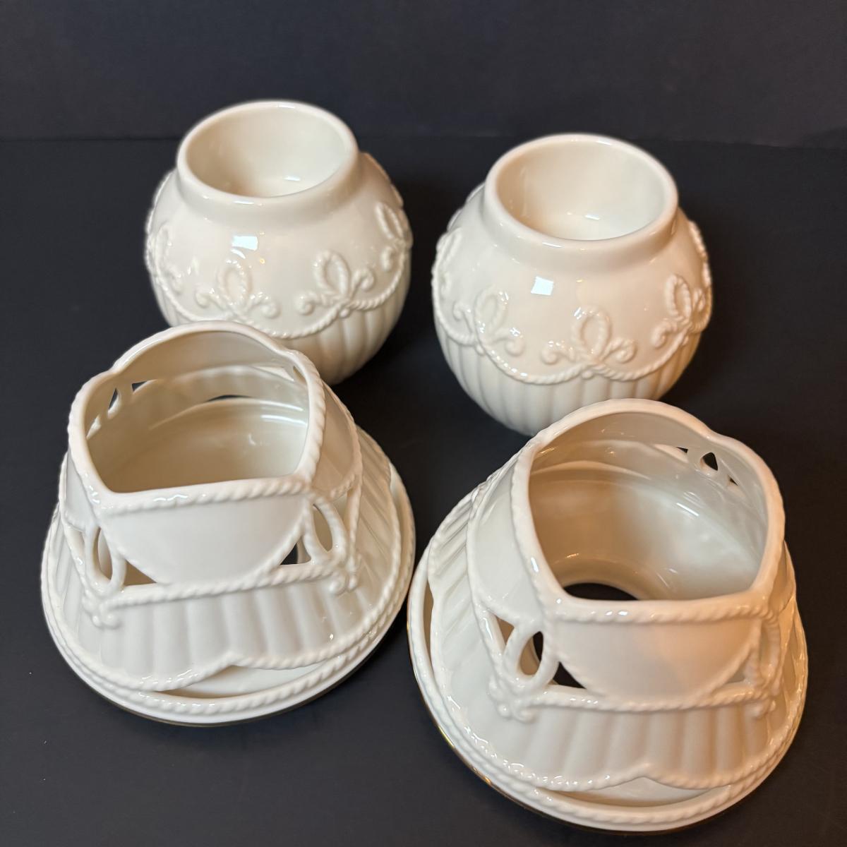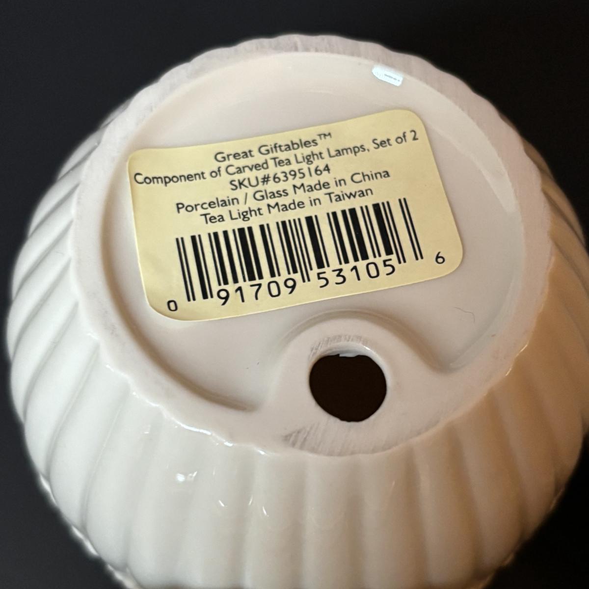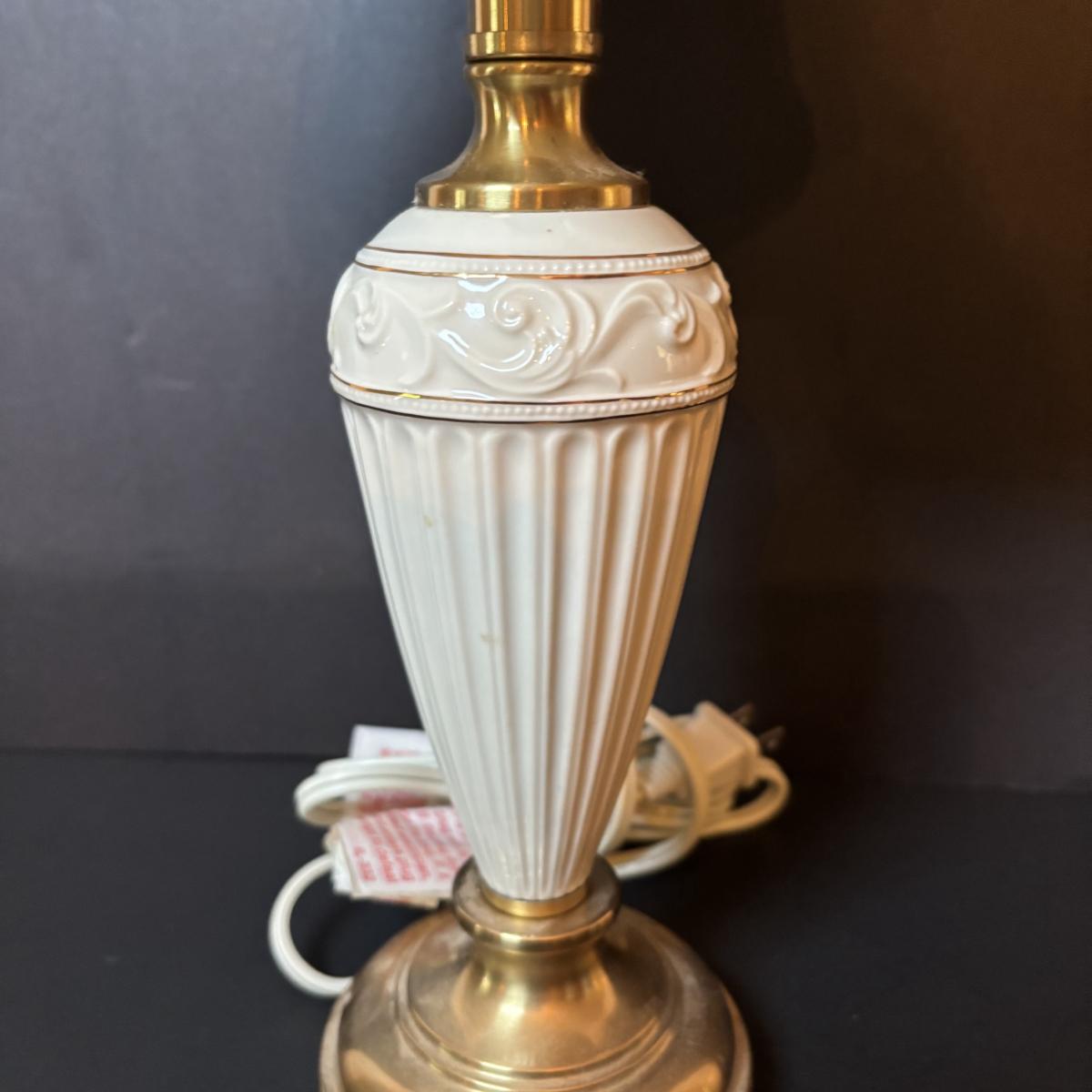LOT 223: Lenox Accent Lamp, Carved Tea Light Lamps/Set of 2 and Pedestal Candy Bowl