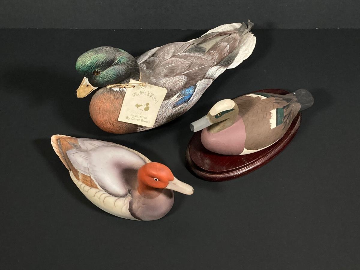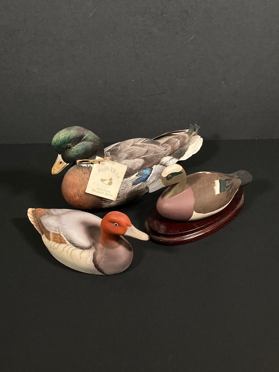 LOT 244: Collection of Signed Decorative Ducks - Canvasback by Andrea (Andrea by Sadek), Wildlife N' Wood By Carol Burns and More