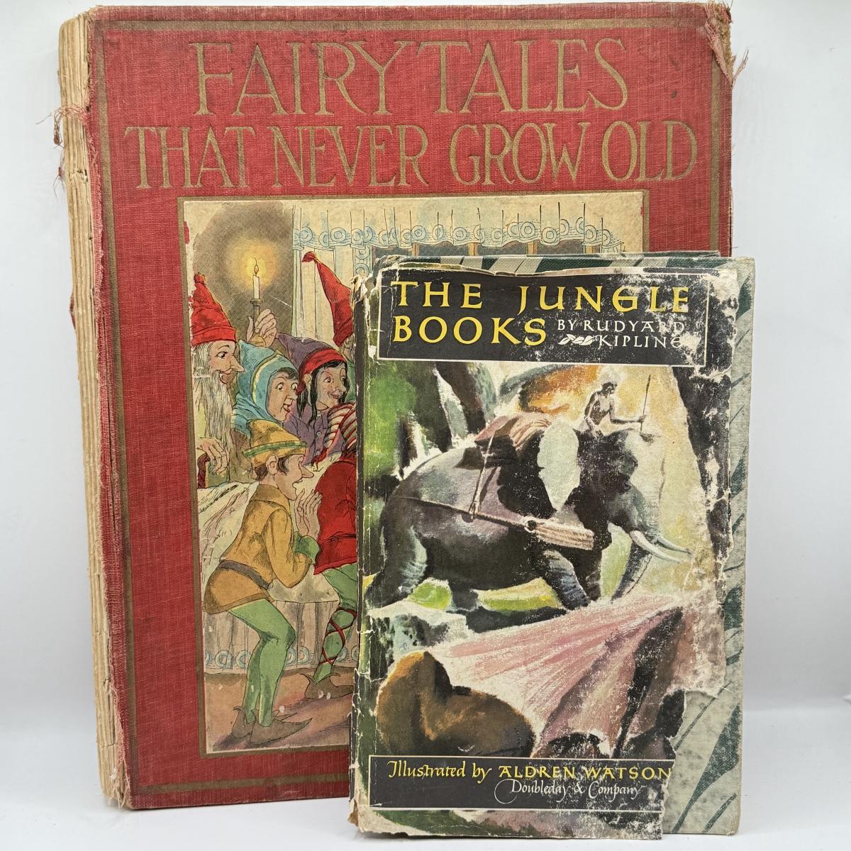 LOT 3L: 1923 Fairy Tales That Never Grow Old Bright Colorful Illustrations Watty Piper/The Jungle Books Volume I by Rudyard Kipling HC/DJ 1948
