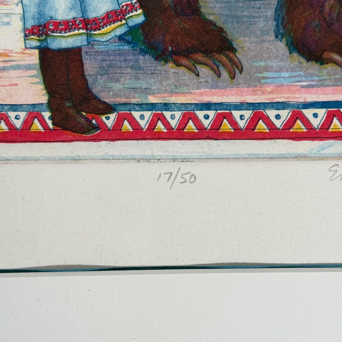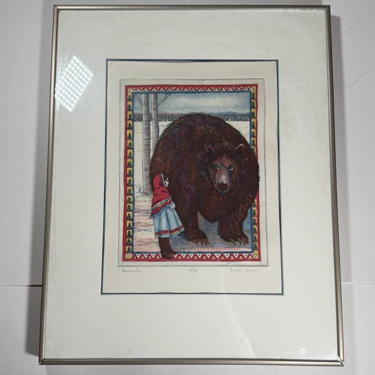 LOT 10L: Folk Art Print " Encounter" Framed, Matted Limited Edition 17/50