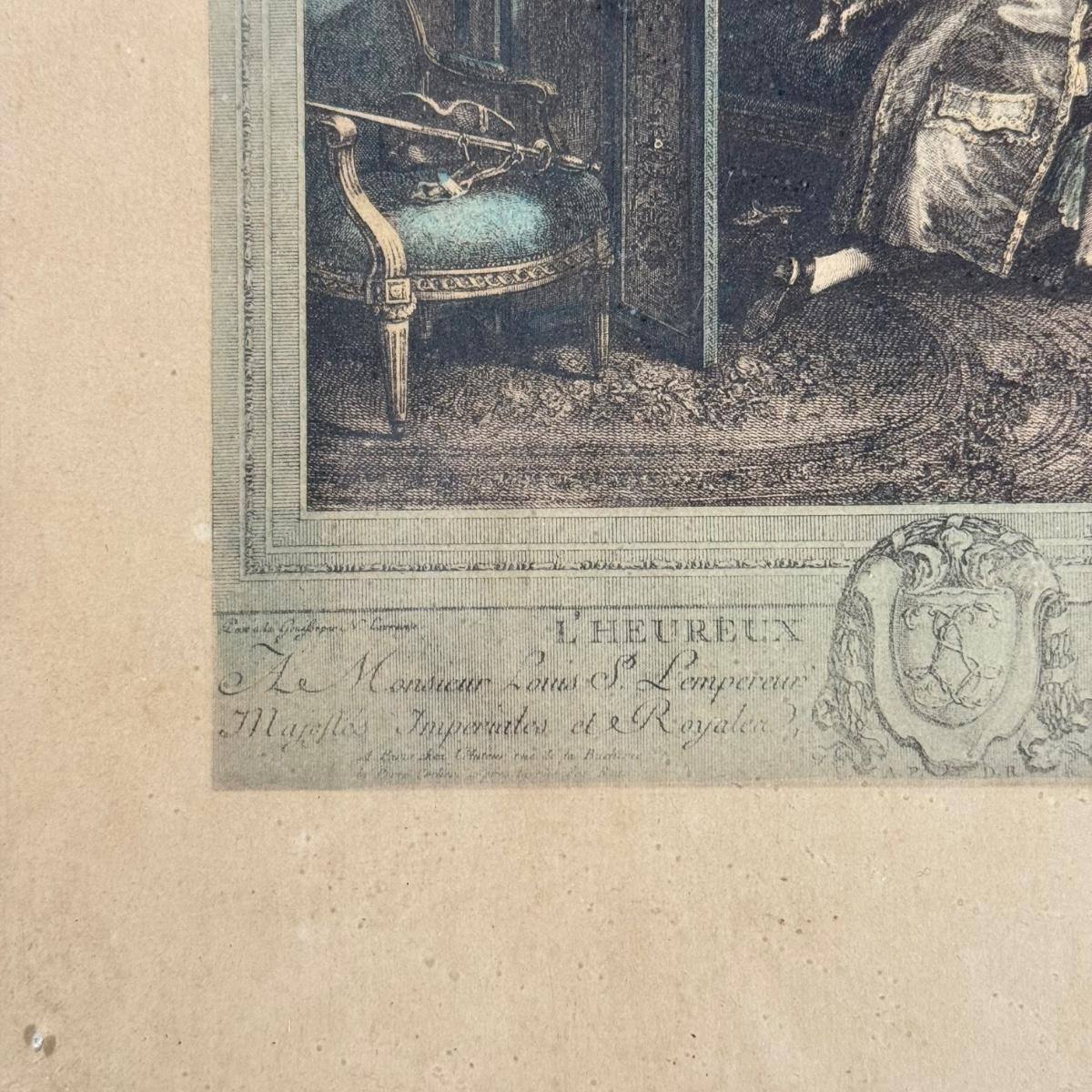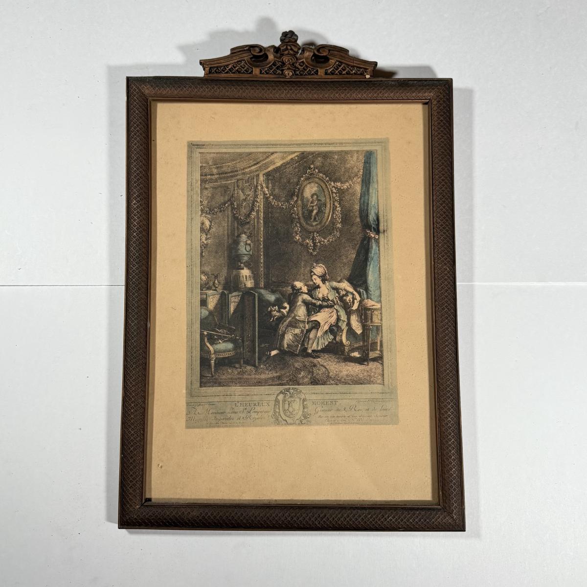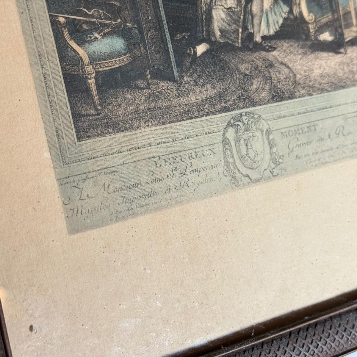 LOT 19L: Antique Framed Print "L'Heureux Moment" by Nicolas de Launay, after Pierre-Antoine Baudouin