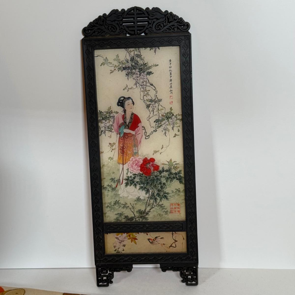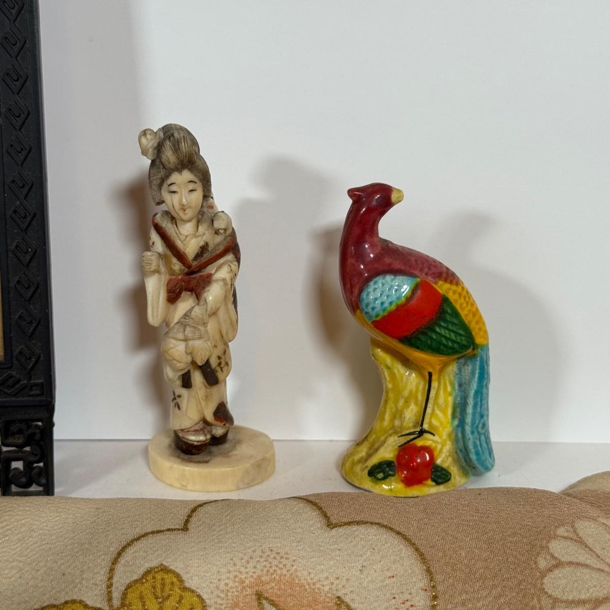 LOT 31Y: Japanese Carved Netsuke Geisha, Chinoiserie Porcelain Ginger Jar Lamp, Silk Obi, and More