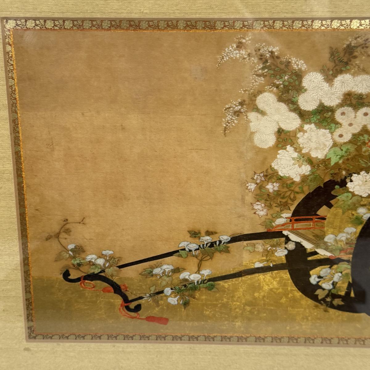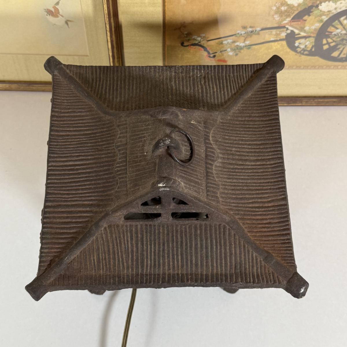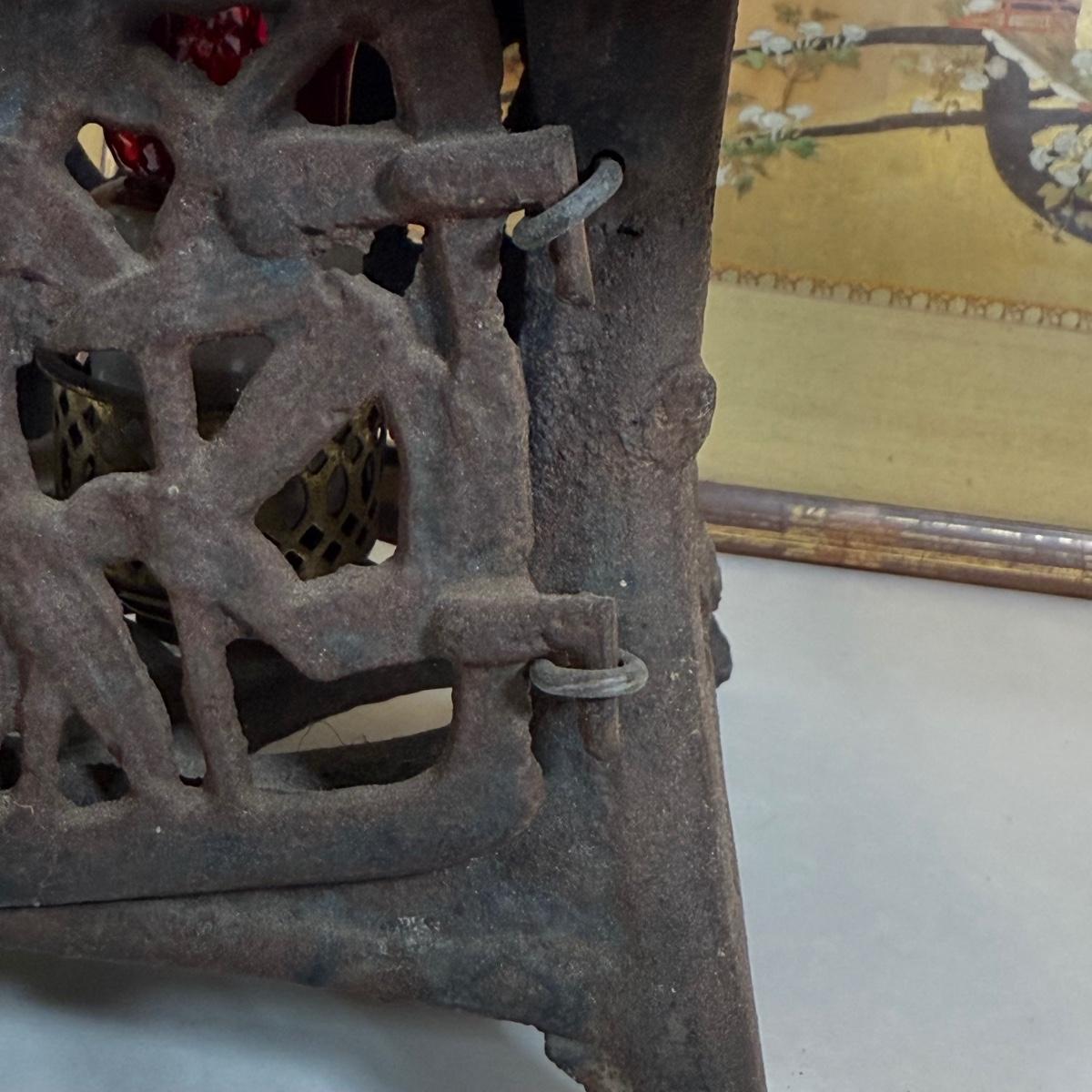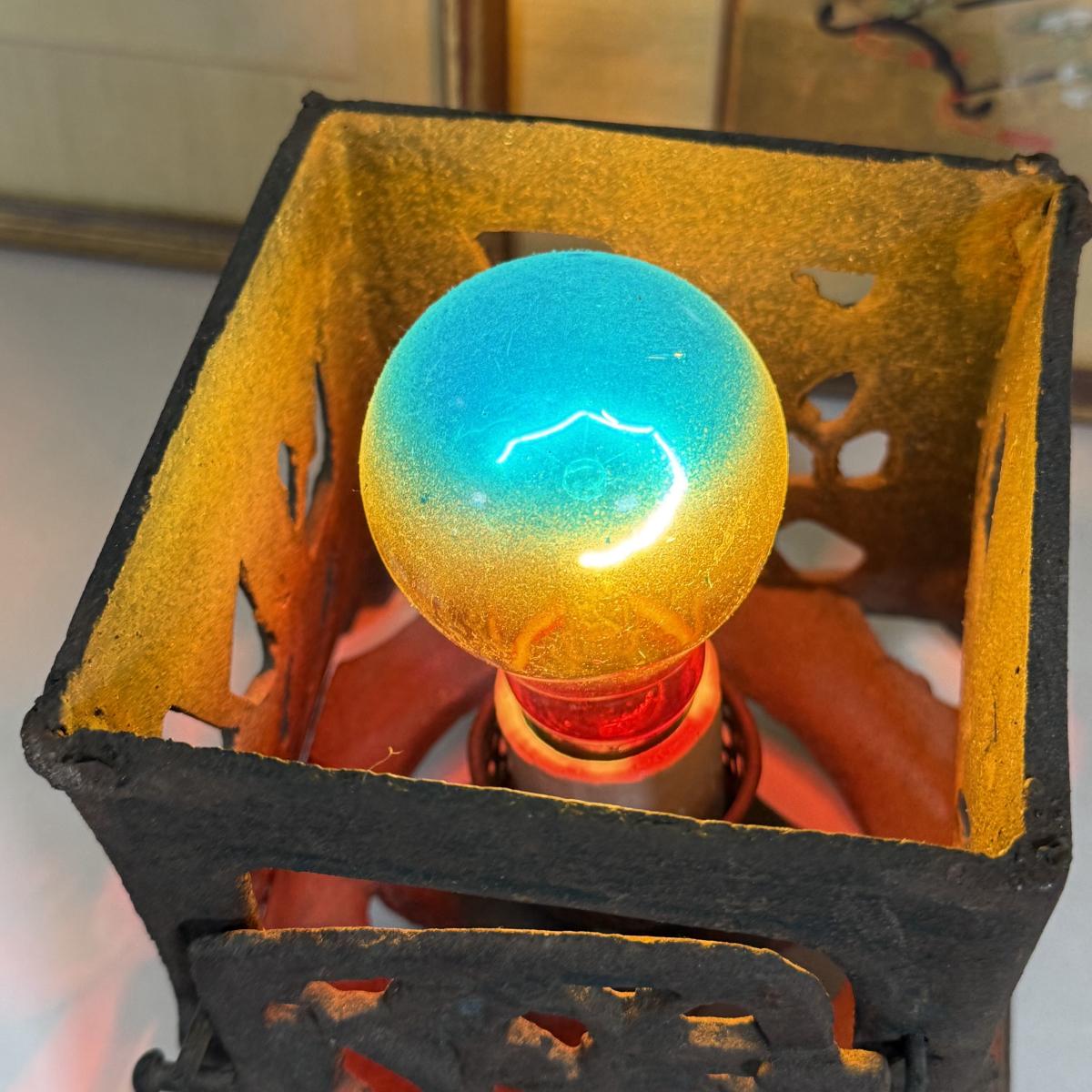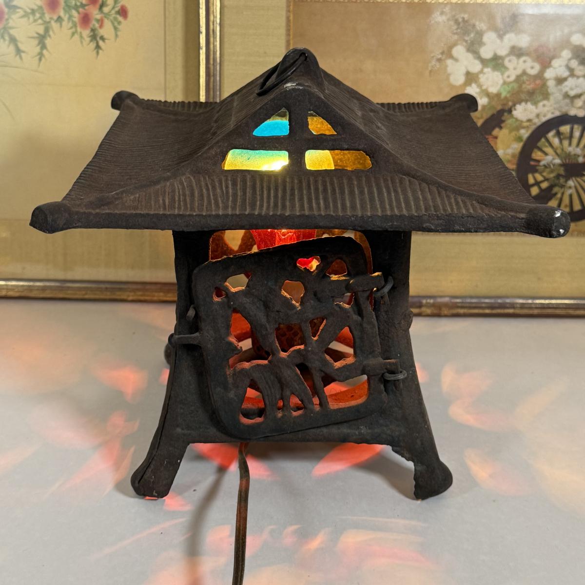 LOT 32Y: Japanese Cast Iron Lantern Table Lamp & Framed Paintings