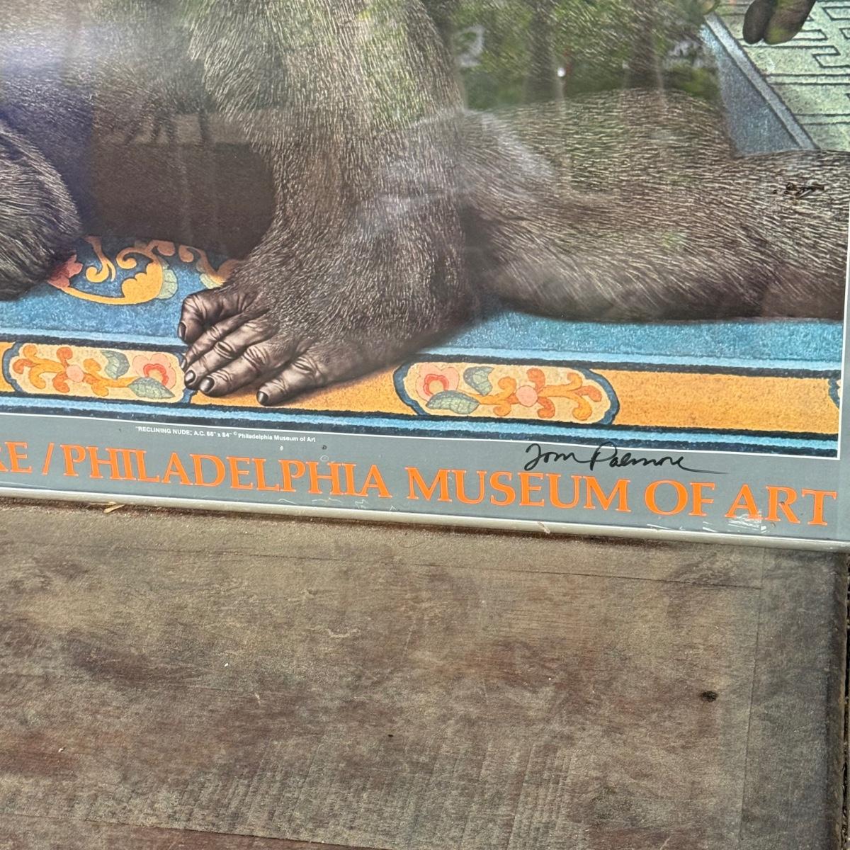 LOT 38L: Vintage Framed Tom Palmore Gorila Reclining Nude Philadelphia Museum of Art Poster