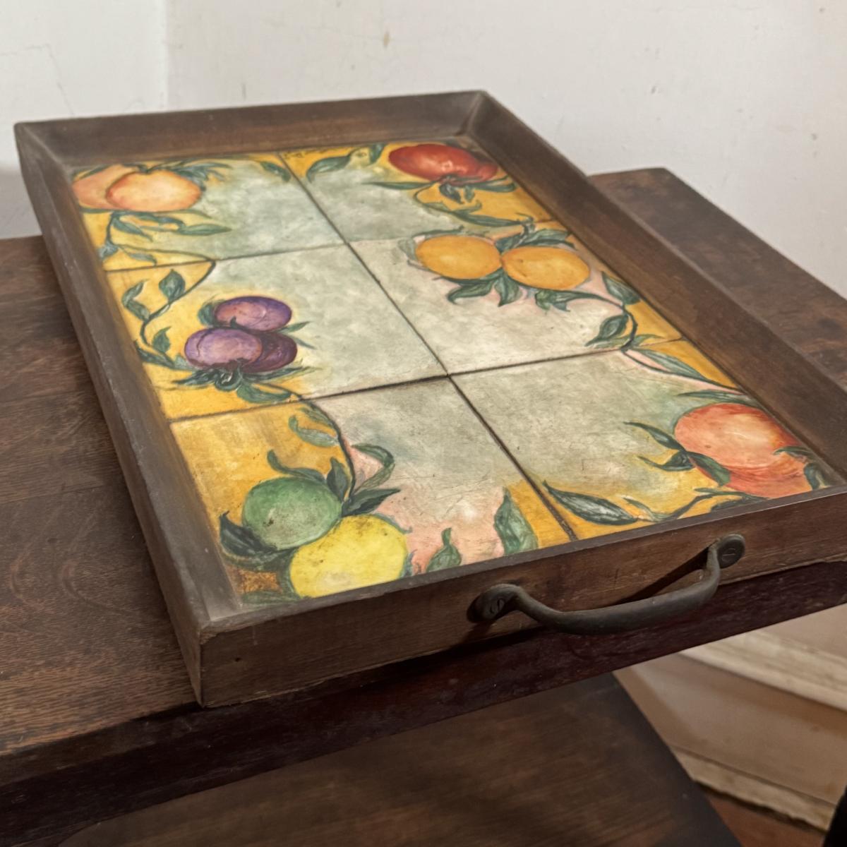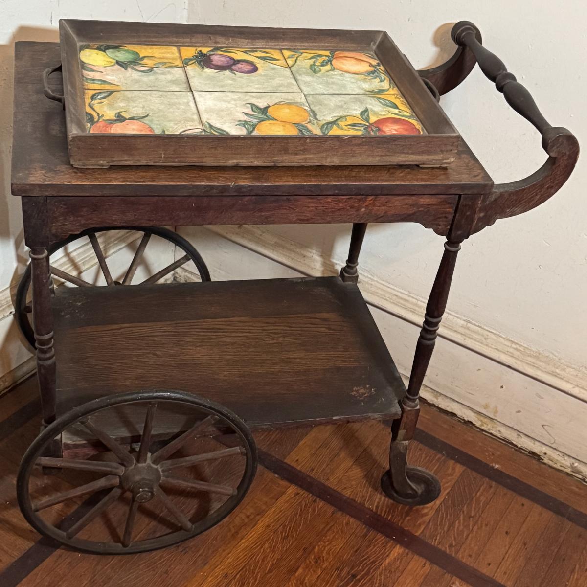LOT 51D: Antique Wooden Tea Cart with Tiled Tray
