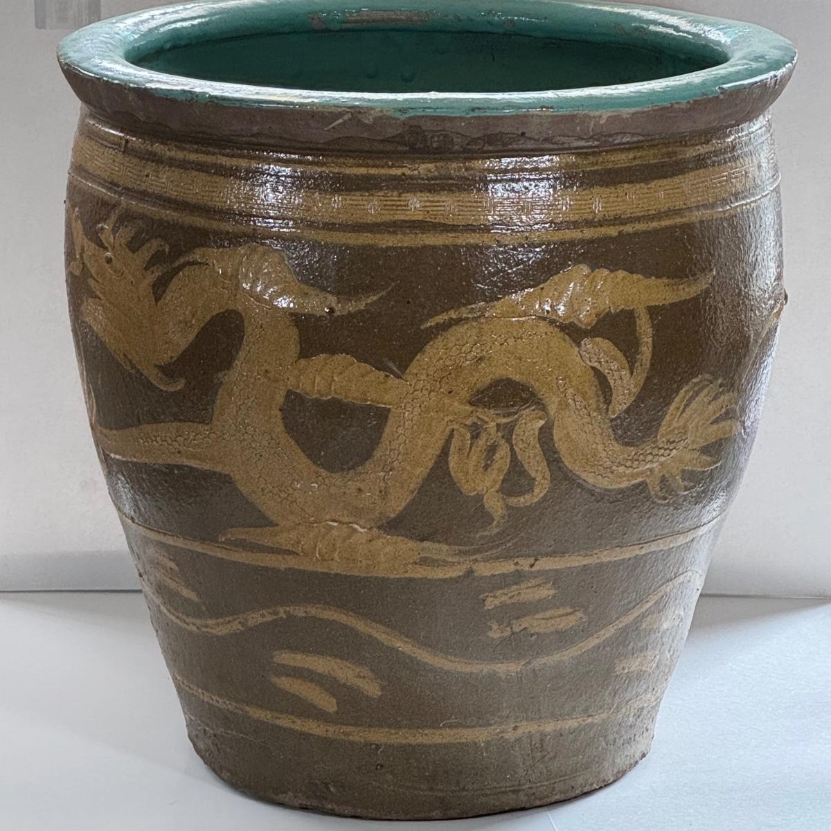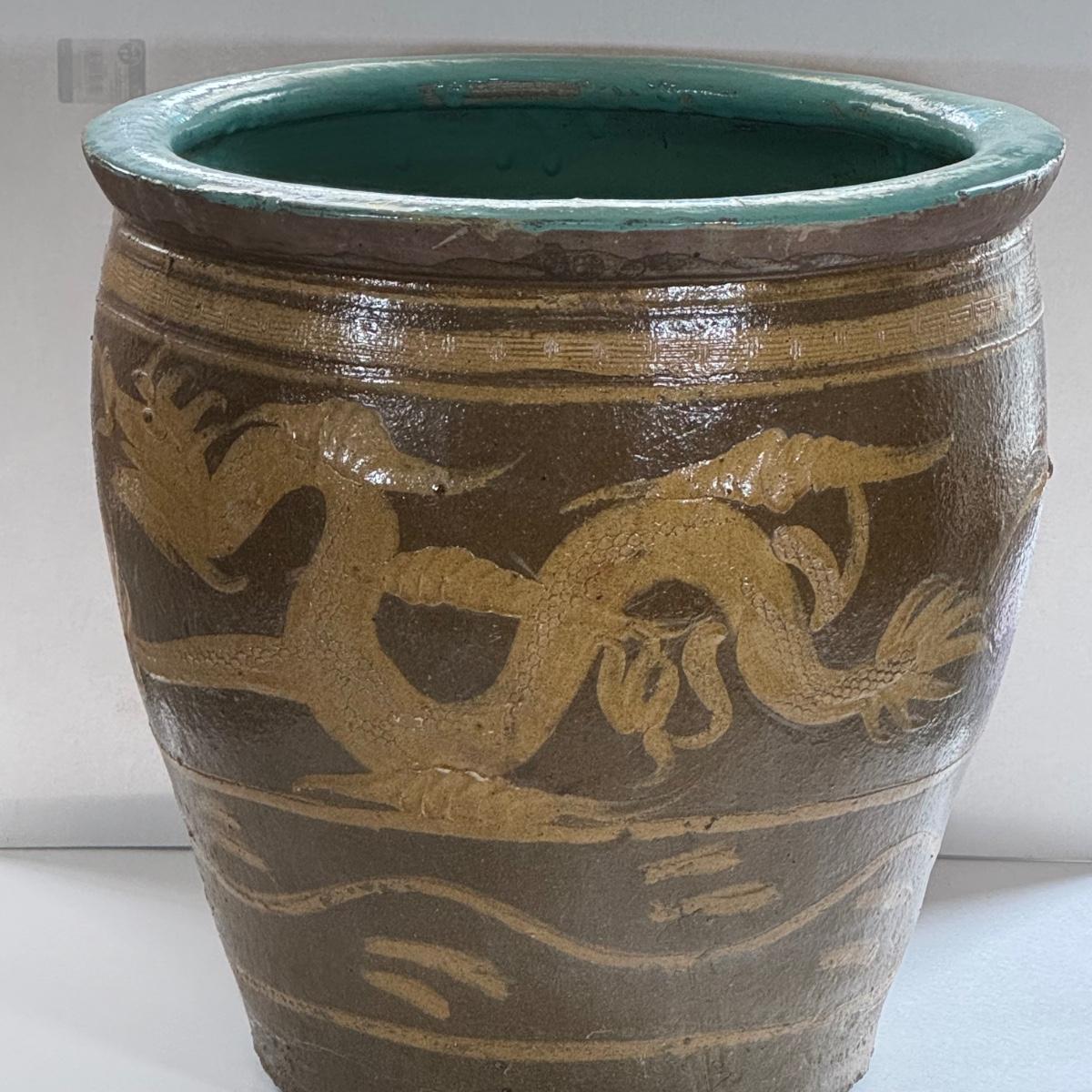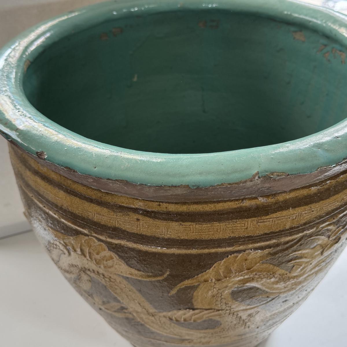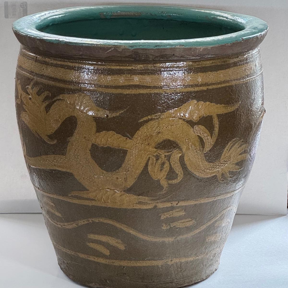 LOT 68X: Chinese Egg Pot Dragon Motif Large Jardiniere (19 Inches)