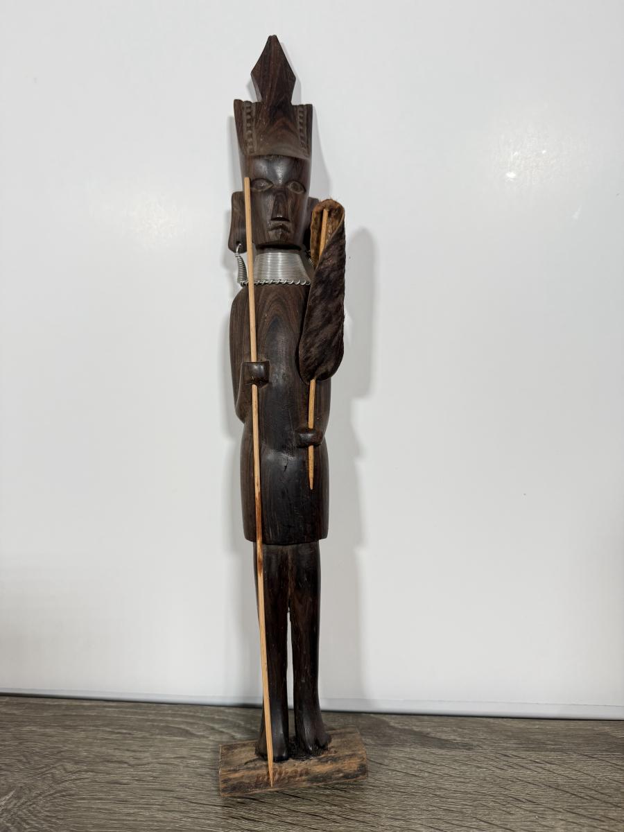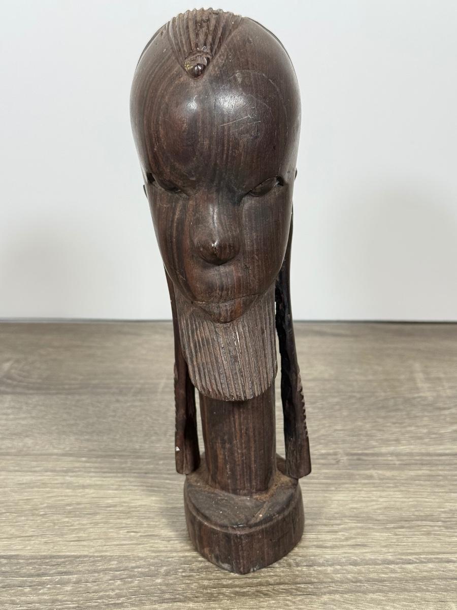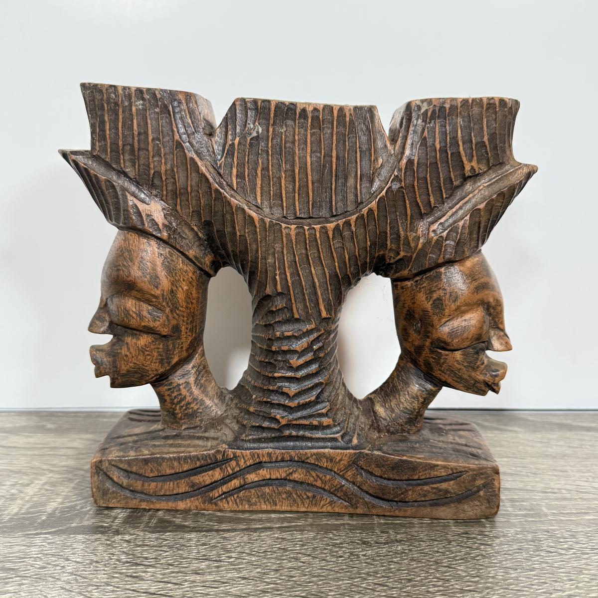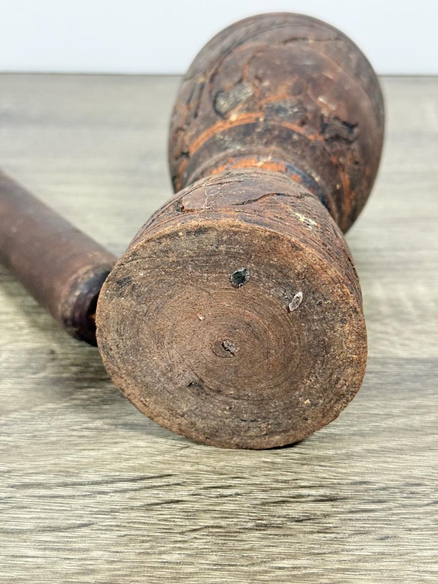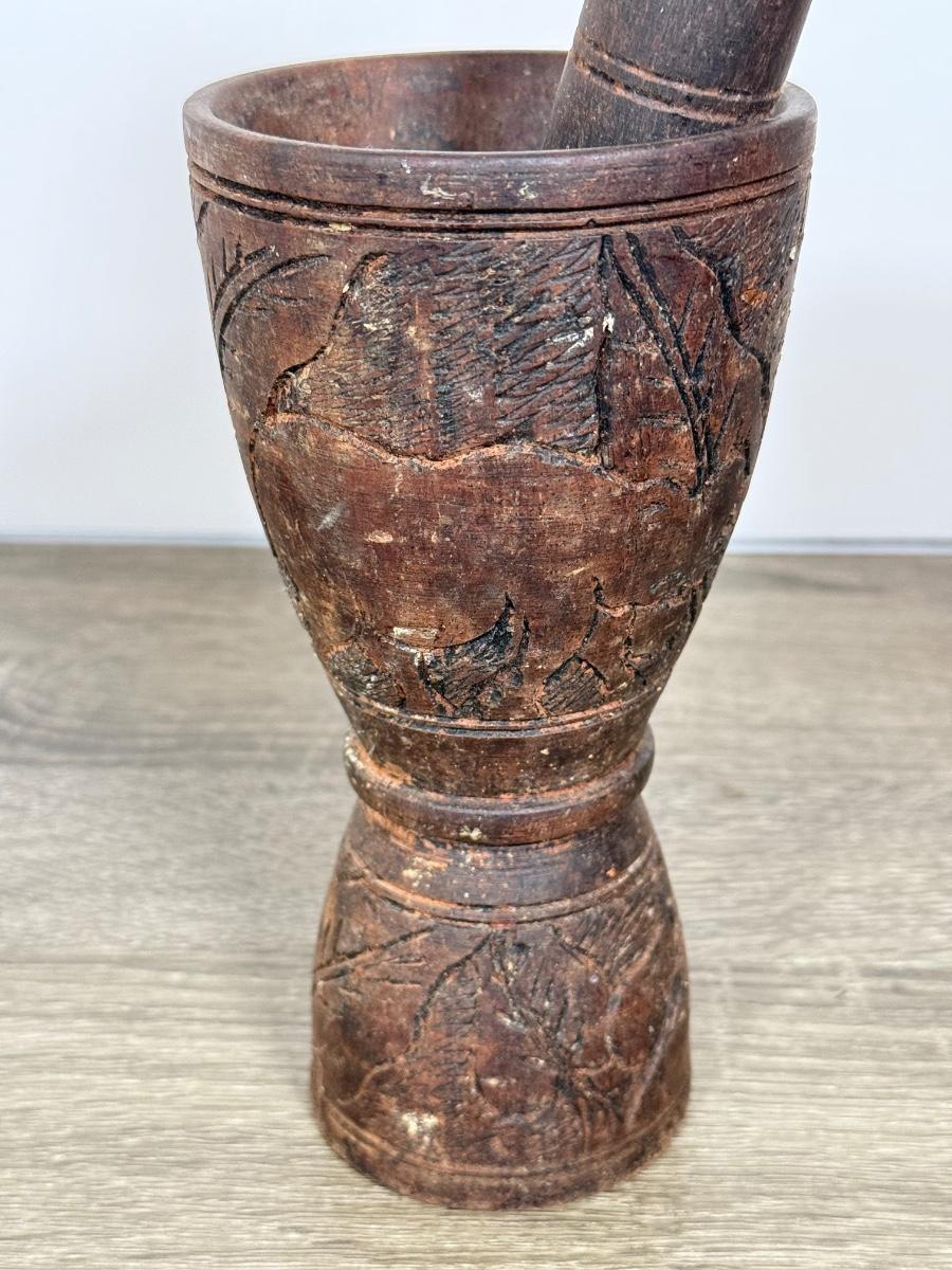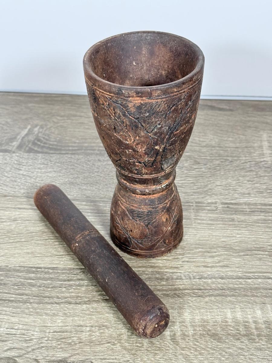 LOT 73L: Hand Carved Wood Collection: Mortar & Pestle, Candle Holder, Vintage Tribal Statues