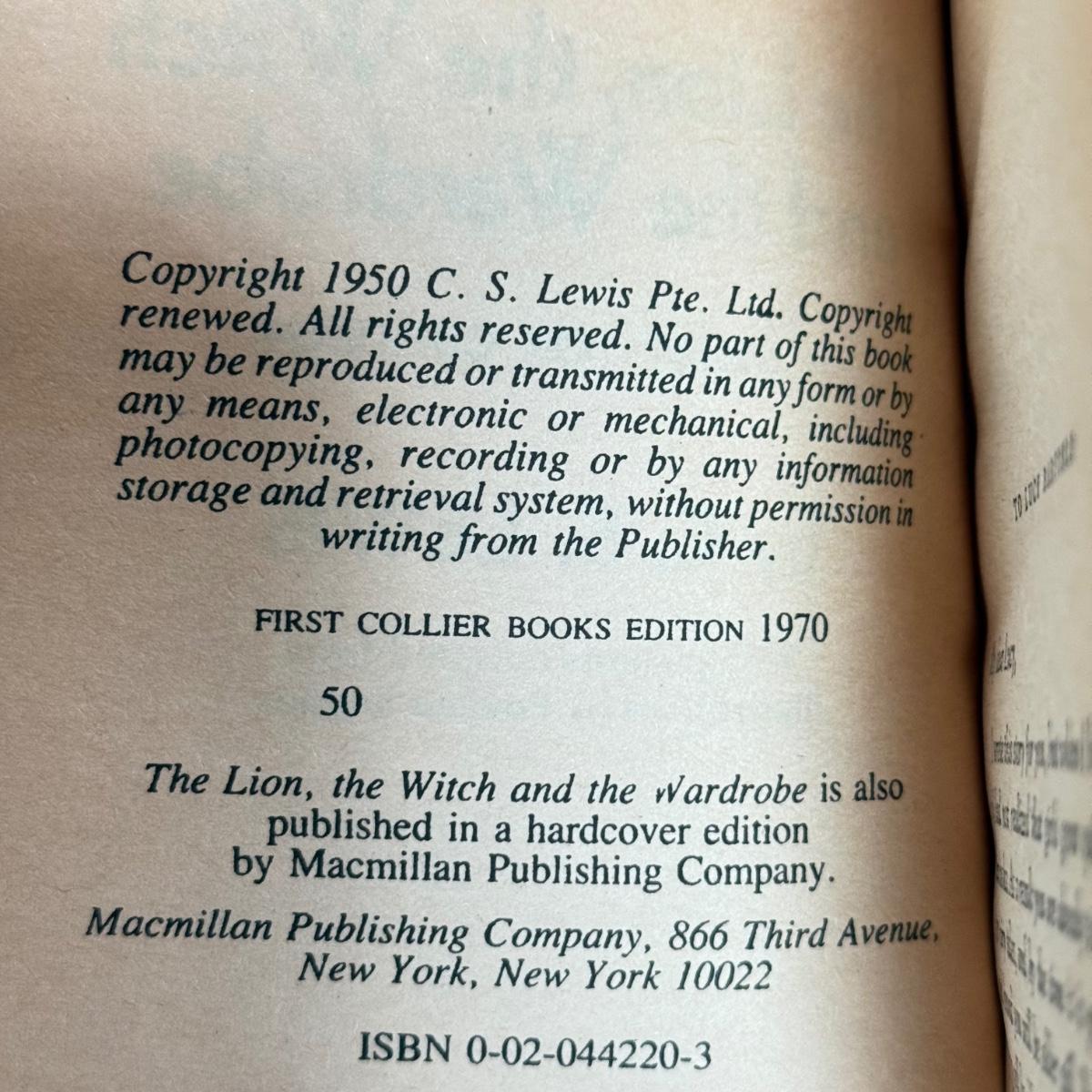 1970 "The Lion, The Witch and The Wardrobe" by C. S. Lewis