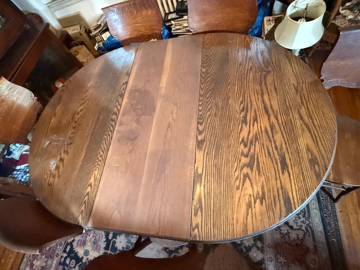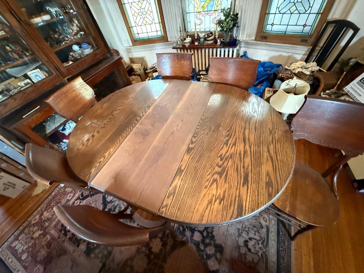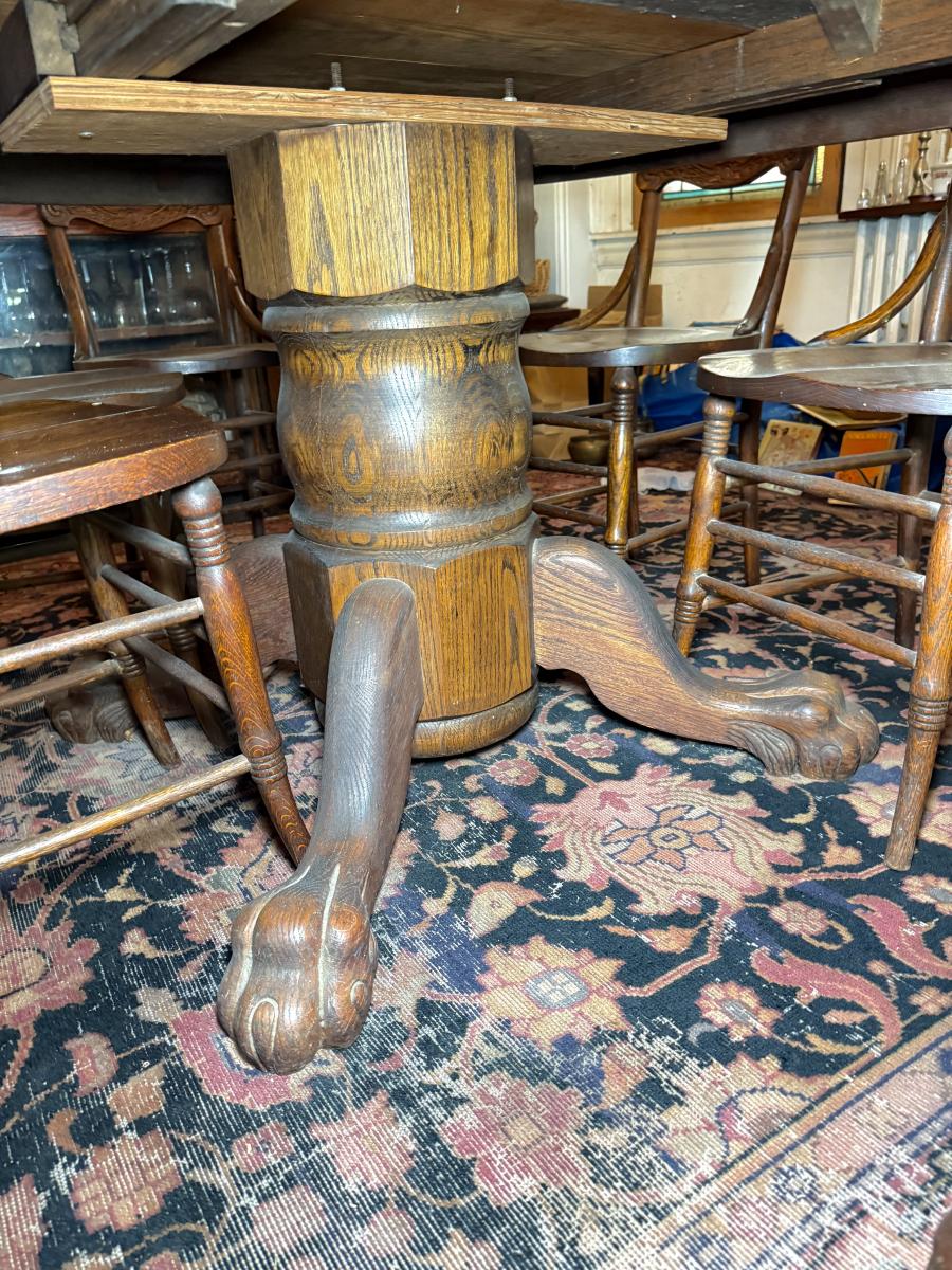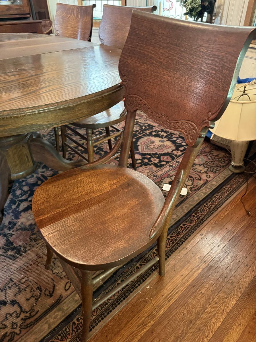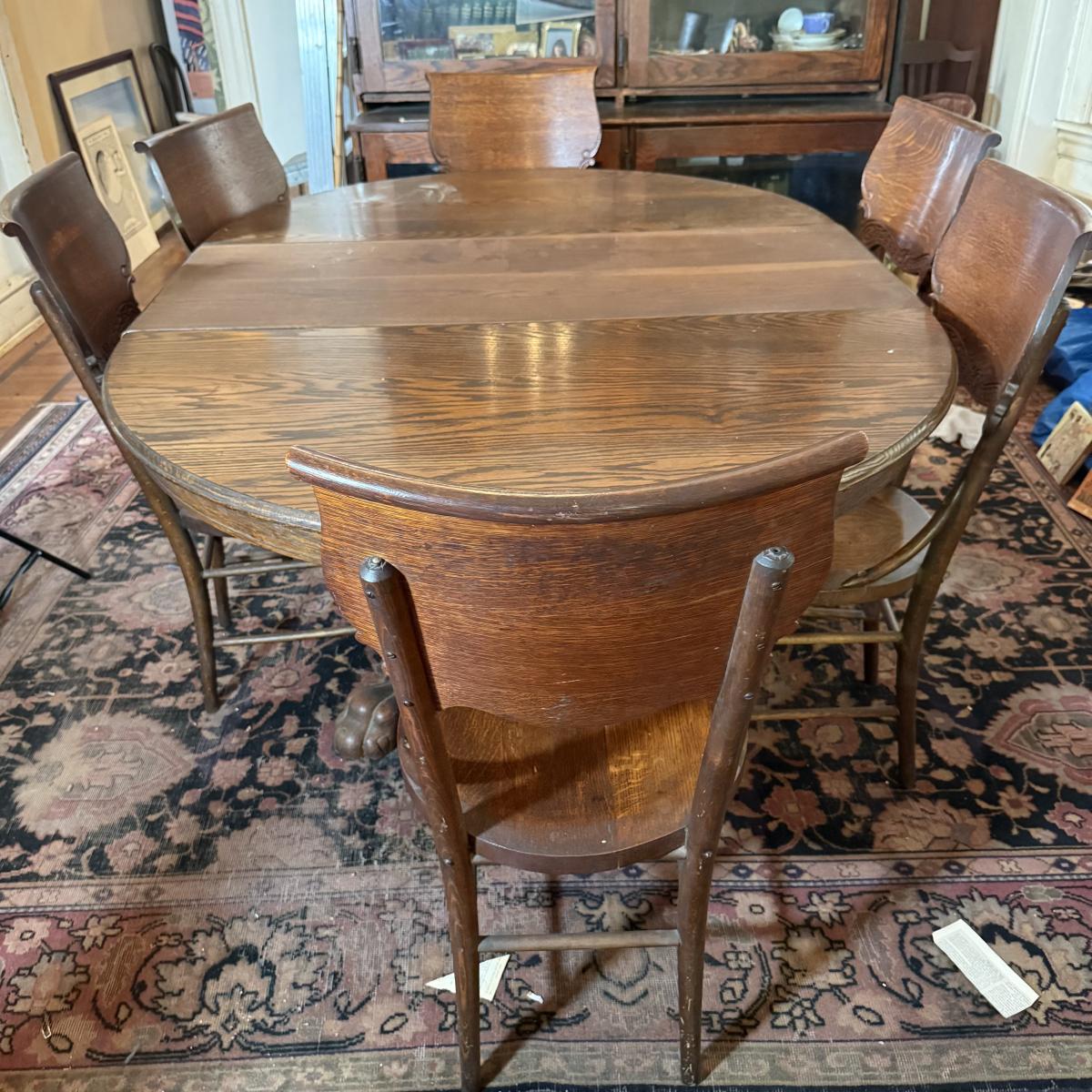 LOT 108D: Six Antique Bent Wood Oak Solid Back Chairs with Clawfoot Dining Table